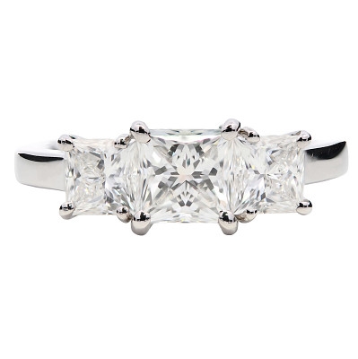 A brand-new, unused, GIA-certified natural diamond three-stone eternity ring, set with three princess-cut diamonds, set in platinum.
