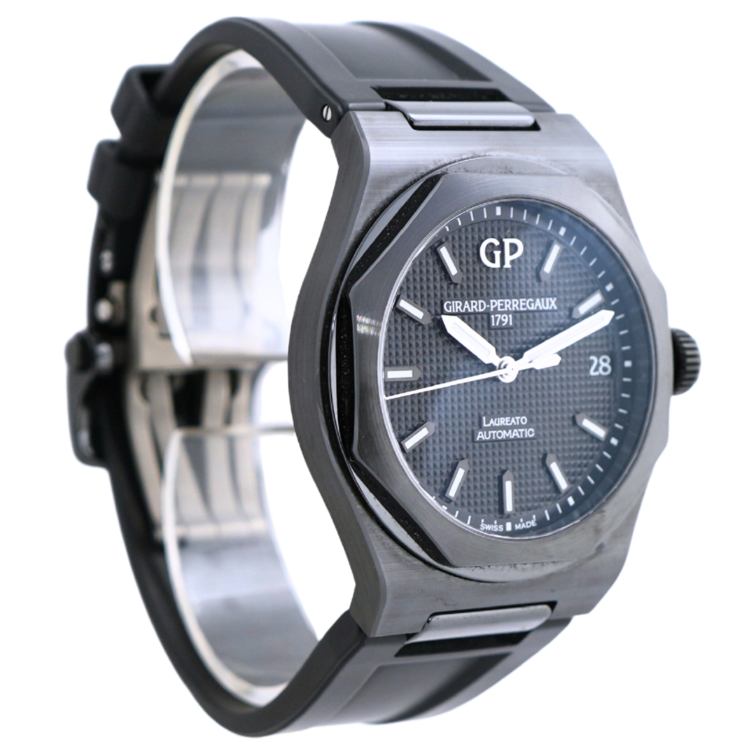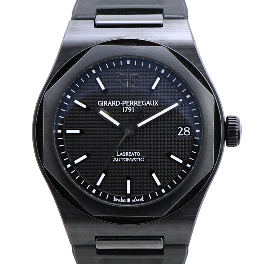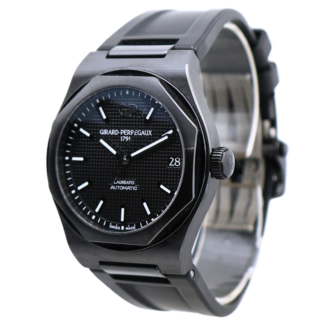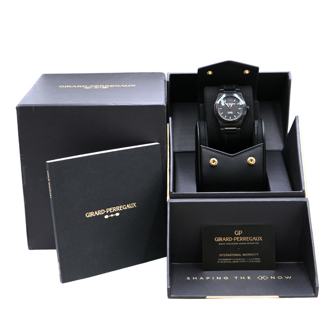 A Girard-Perregaux Laureato has become one of the most iconic names in luxury sports watches, standing proudly alongside other greats. This 2022 example, crafted in sleek black ceramic with a matching clasp and strap, embodies cutting-edge modern design and unbeatable durability. The ceramic material is highly sought after, being lightweight, scratch-resistant, and offering a bold, contemporary finish that sets this piece apart.