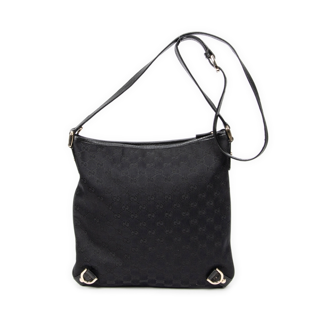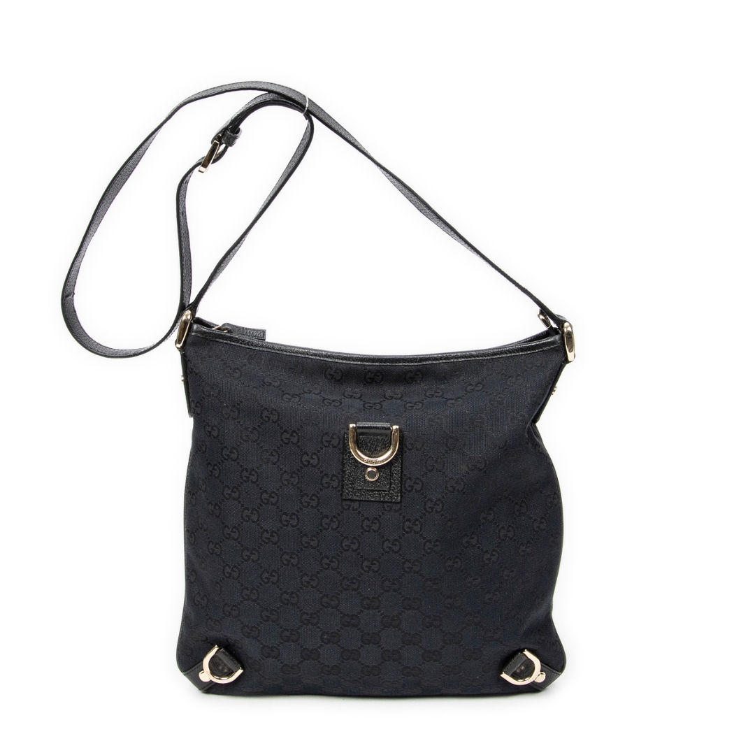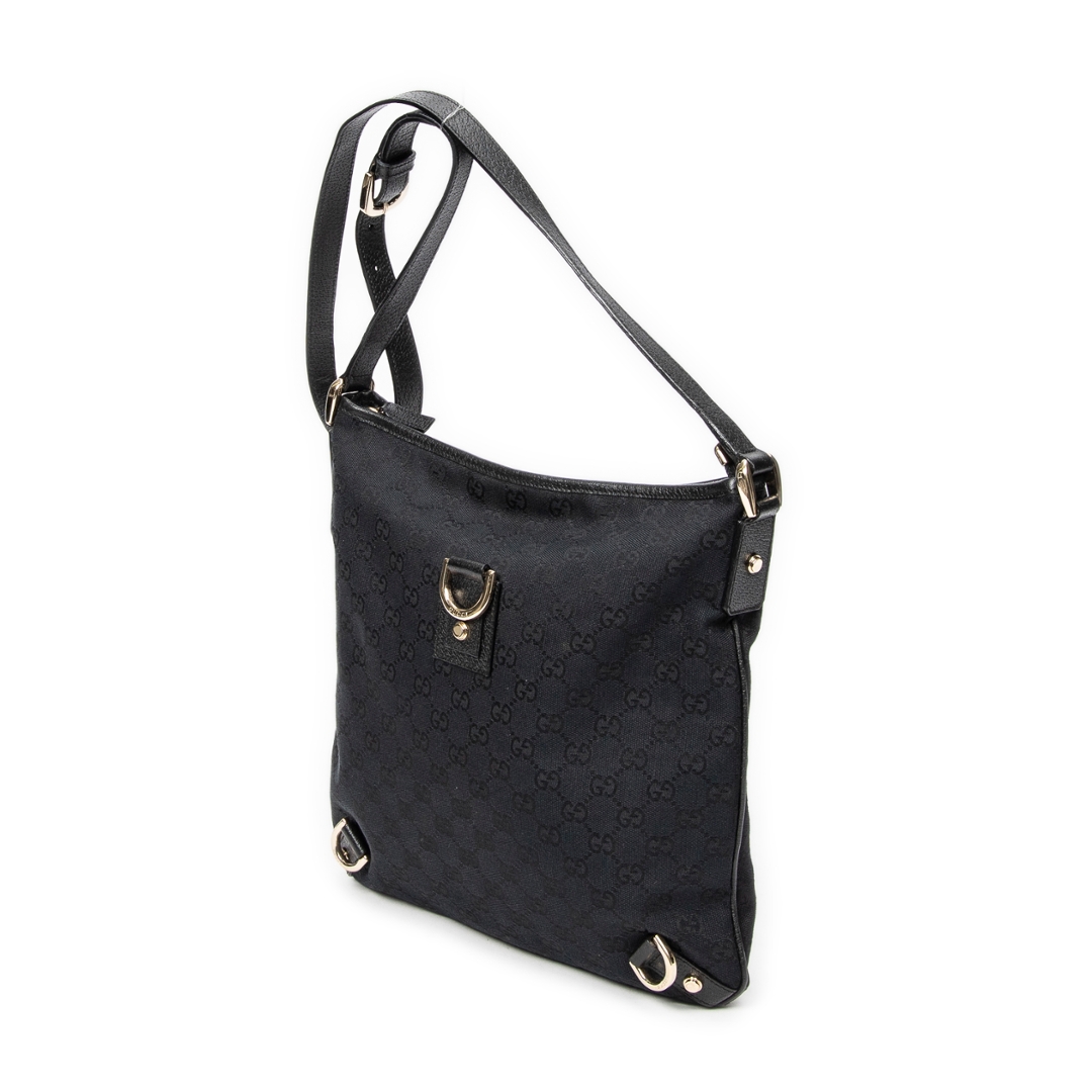 A vintage Gucci black canvas Abbey Crossbody bag with a certificate of authenticity, Approximately 30cm height, 30cm width.