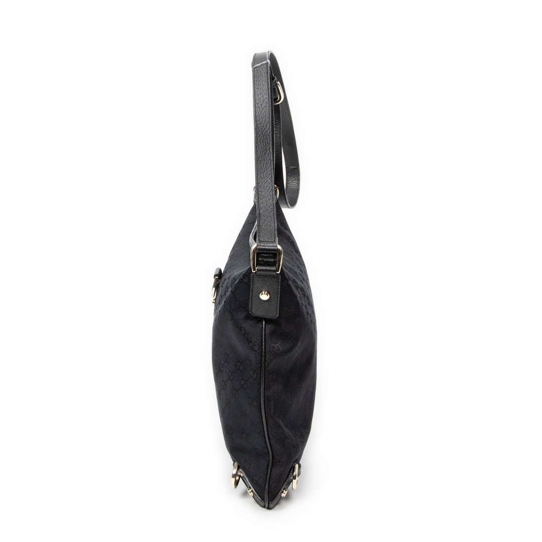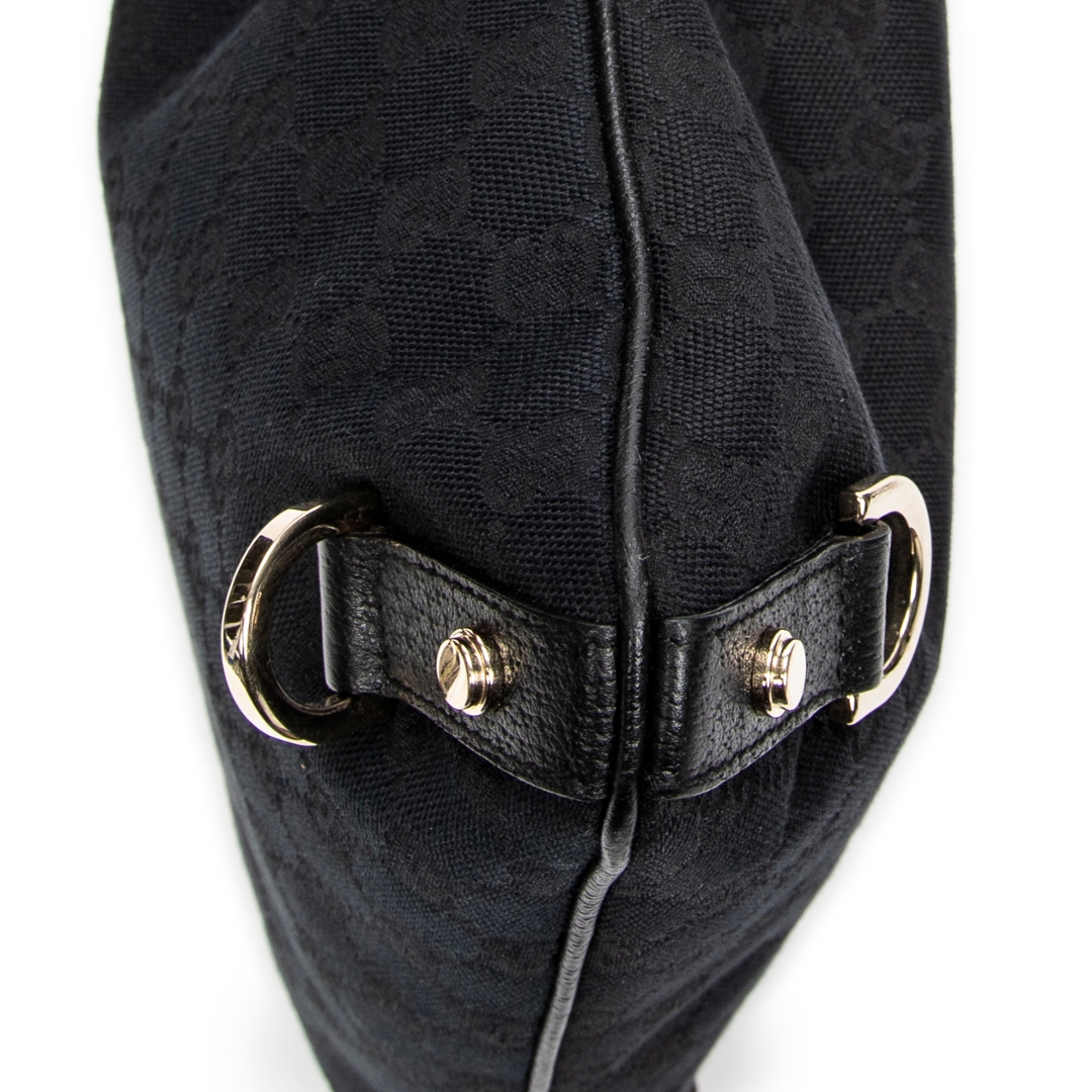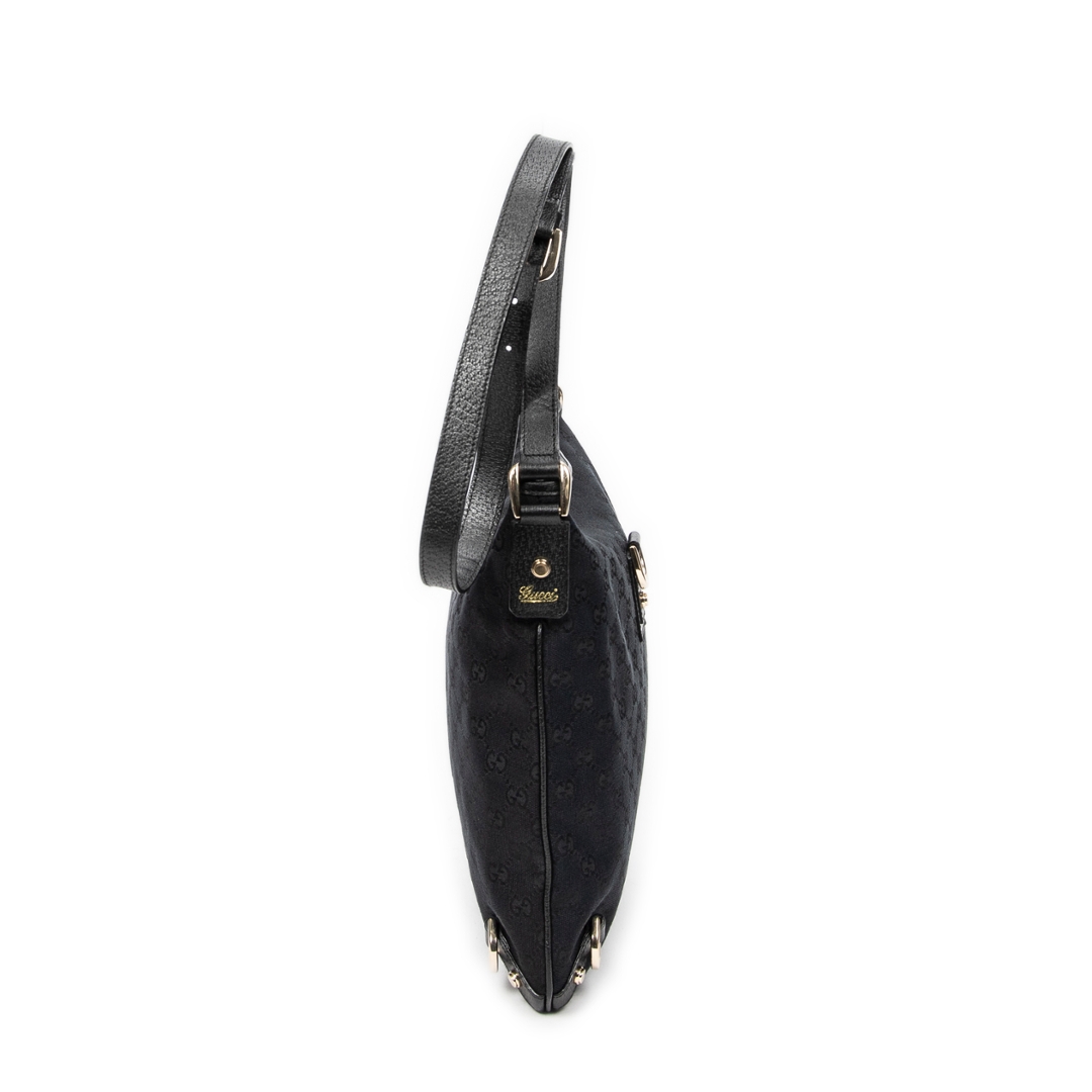 A vintage Gucci black canvas Abbey Crossbody bag with a certificate of authenticity, Approximately 30cm height, 30cm width.