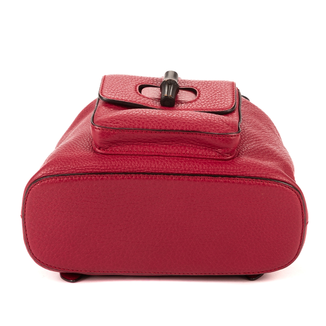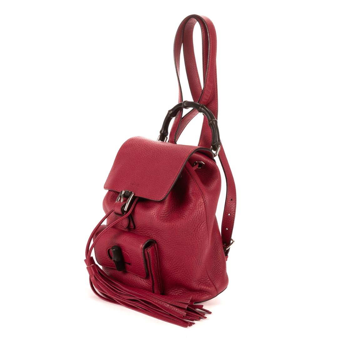 A vintage Gucci fuchsia calf leather Bamboo Tassel Backpack with a certificate of authenticity, Approximately 28m height, 24cm width.