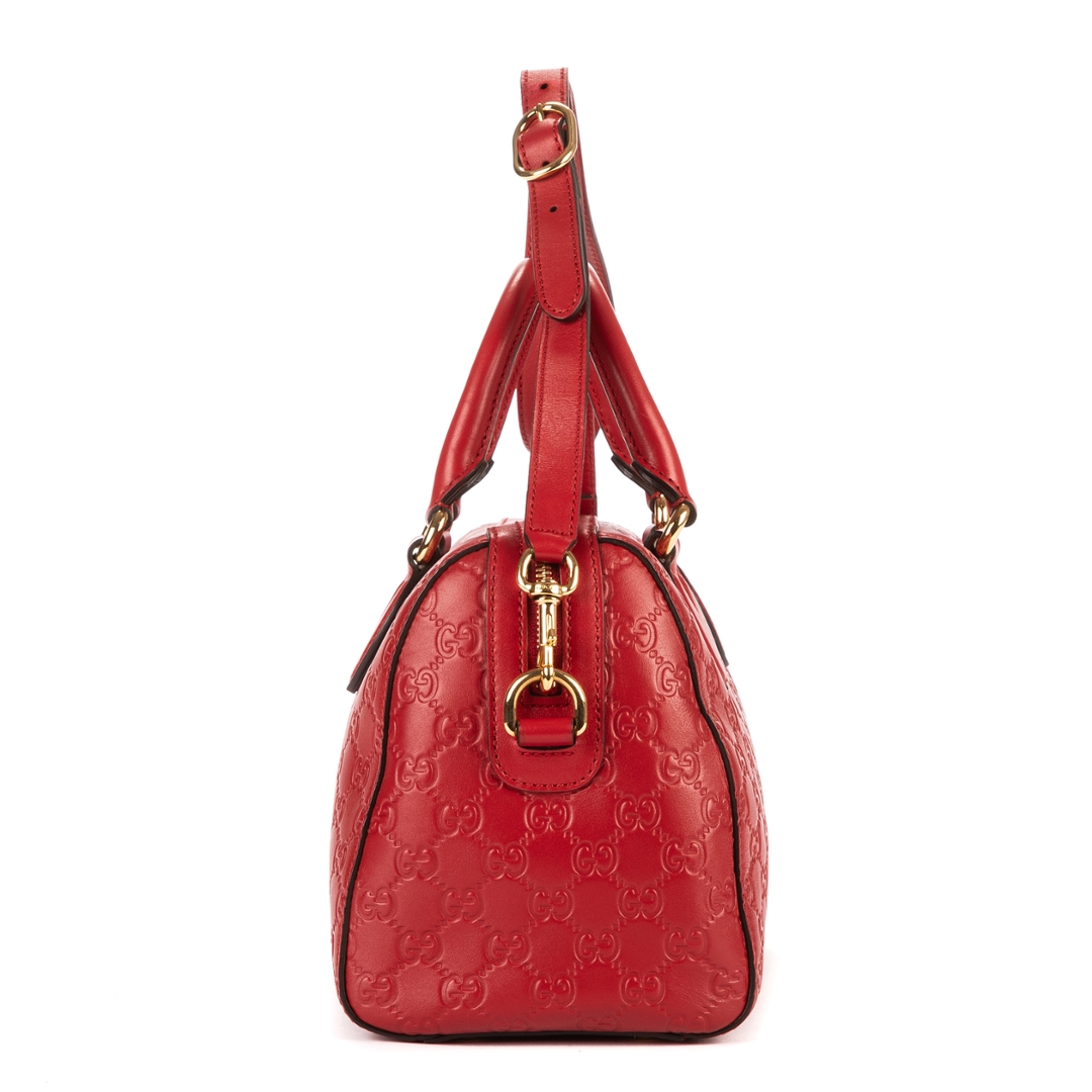 A vintage Gucci red calf leather Boston Bandouliere bag with a certificate of authenticity, Approximately 19cm height, 29cm width.