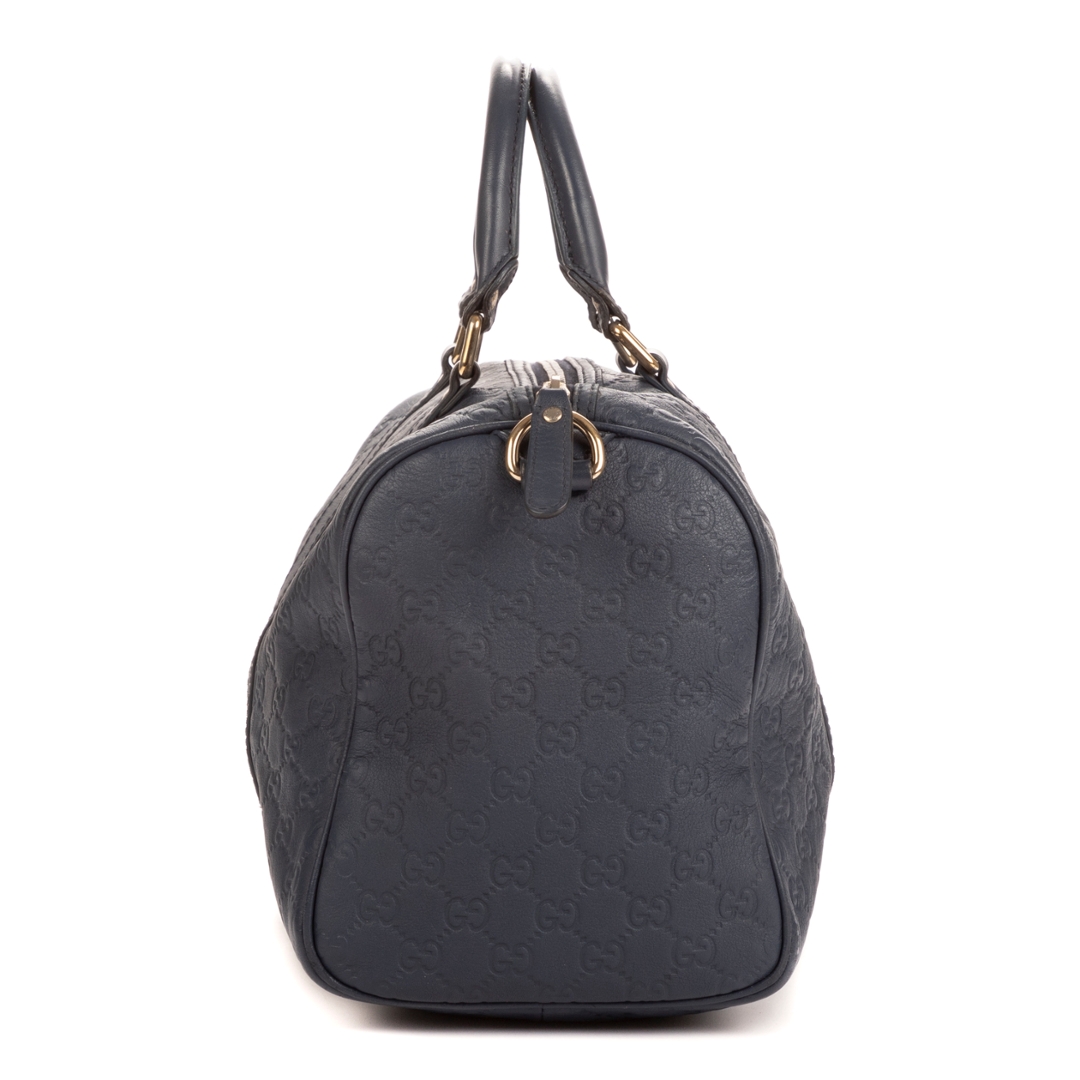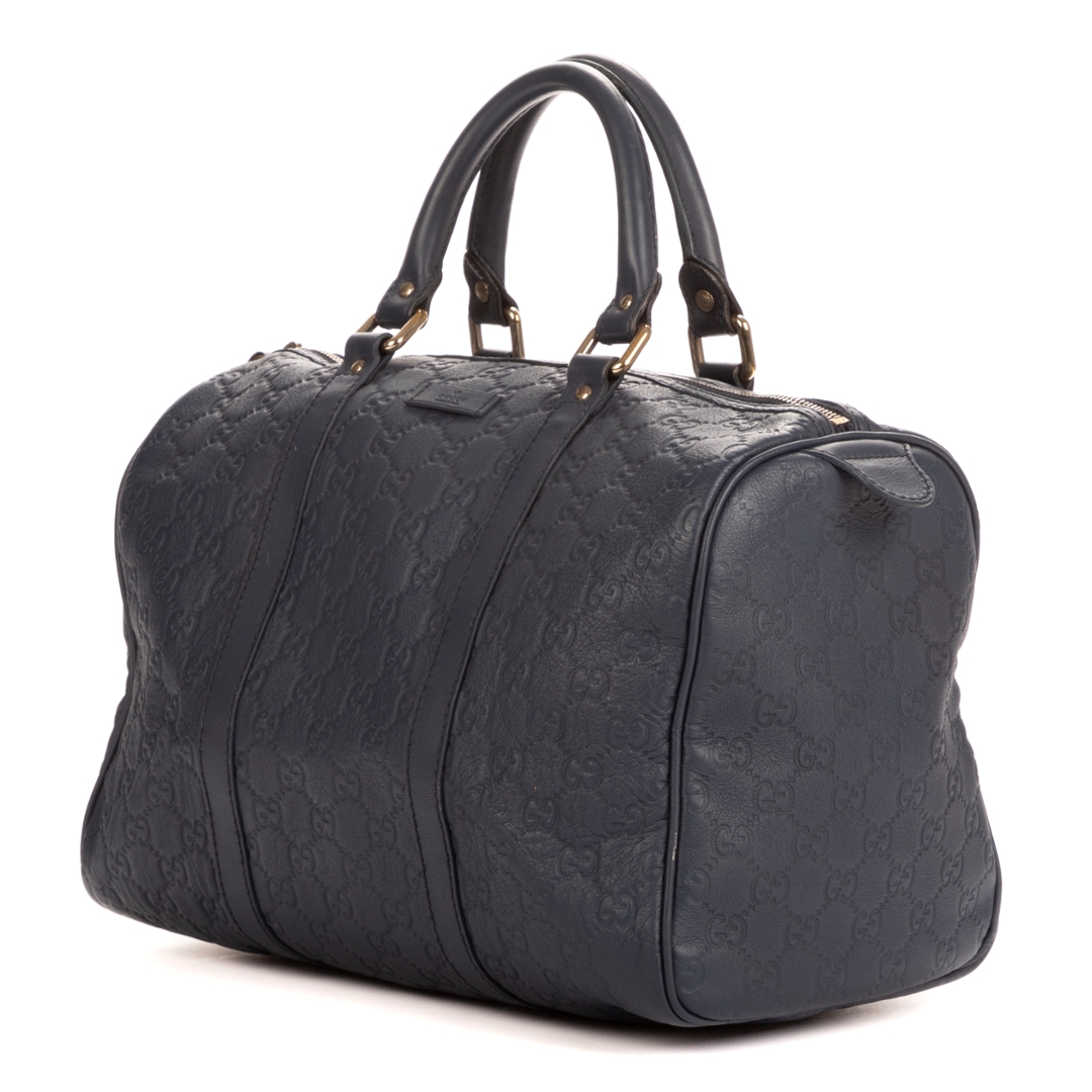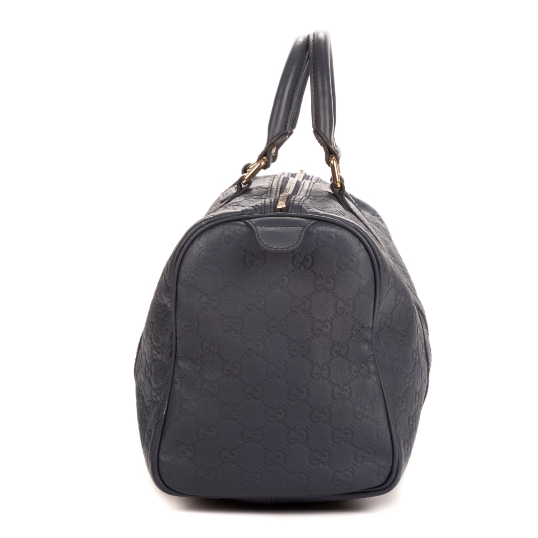 A vintage Gucci cobalt calf leather Boston bag with a certificate of authenticity, Approximately 21cm height, 32cm width.