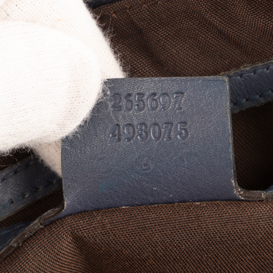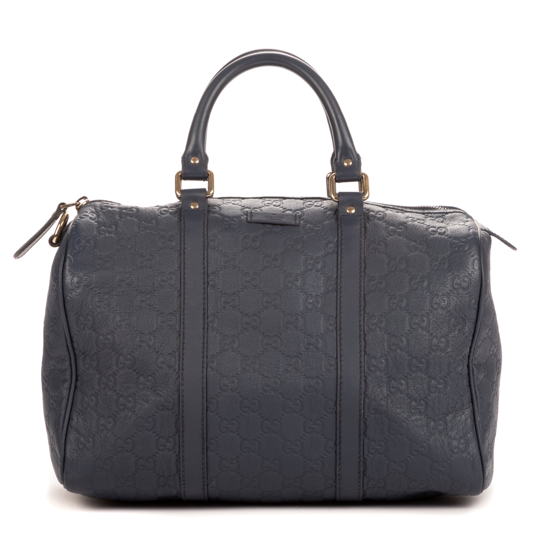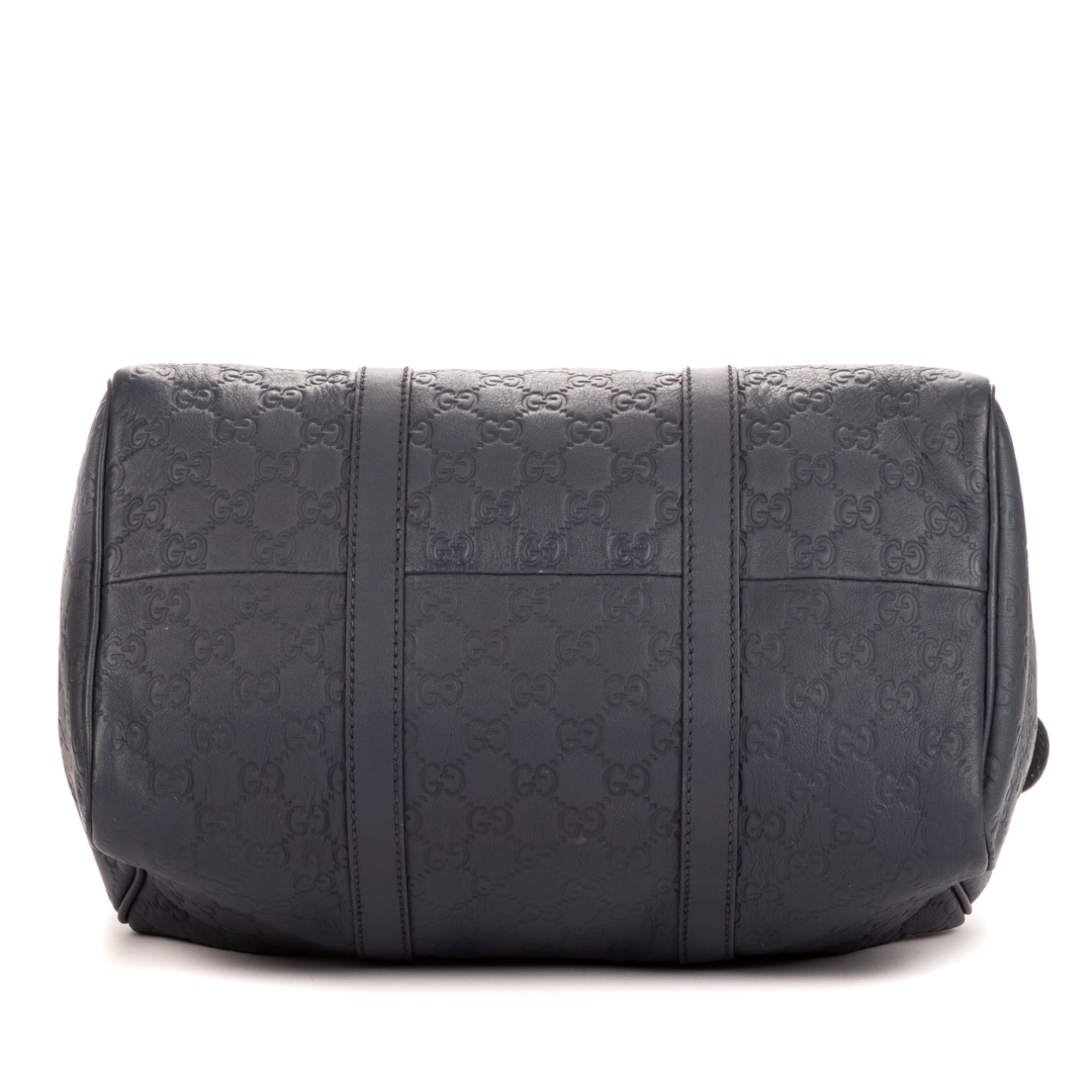 A vintage Gucci cobalt calf leather Boston bag with a certificate of authenticity, Approximately 21cm height, 32cm width.