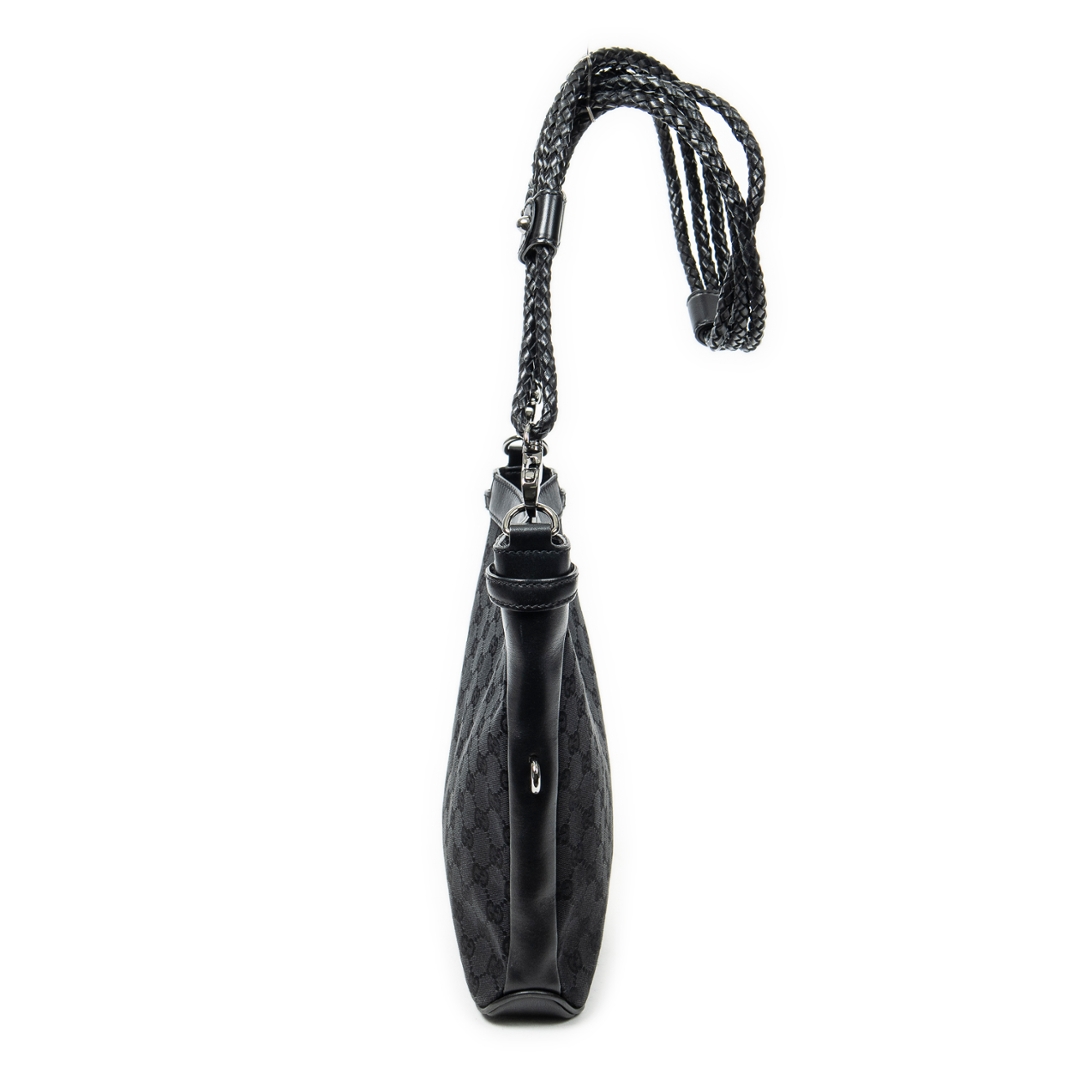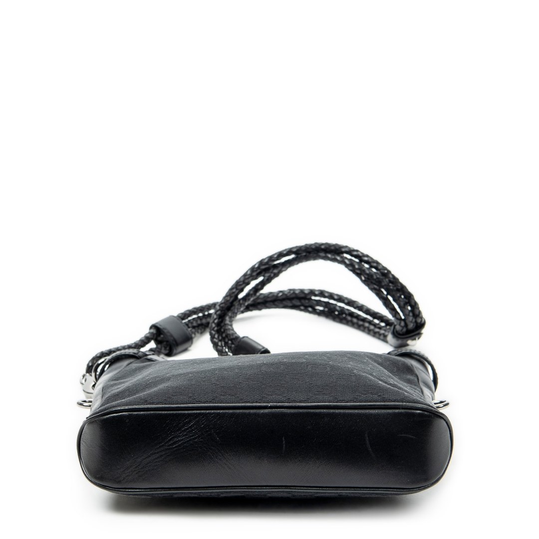 A vintage Gucci black canvas Braided Crossbody bag with a certificate of authenticity, Approximately 25cm height, 26cm width.