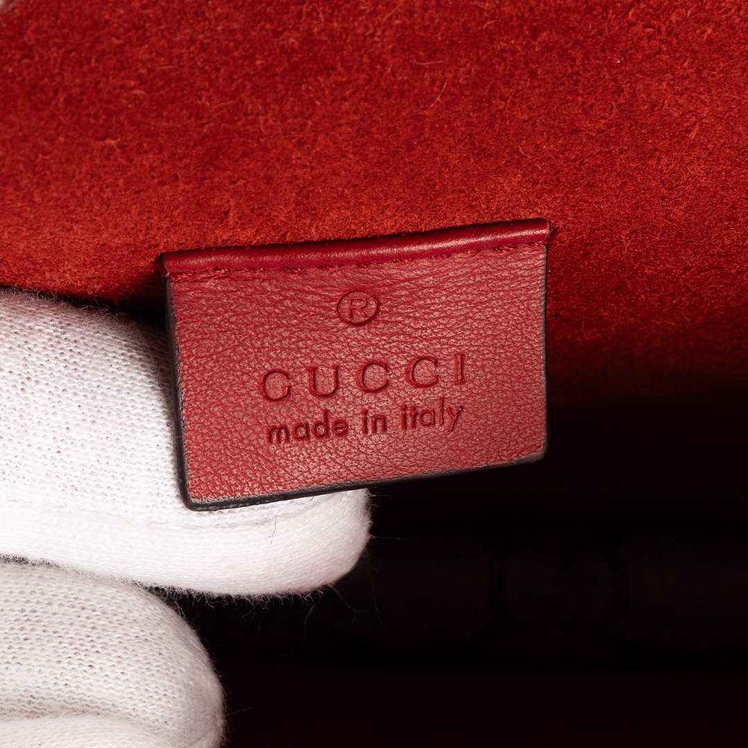 A vintage Gucci beige/red coated canvas Dionysus bag with a certificate of authenticity, Approximately 16cm height, 27cm width.
