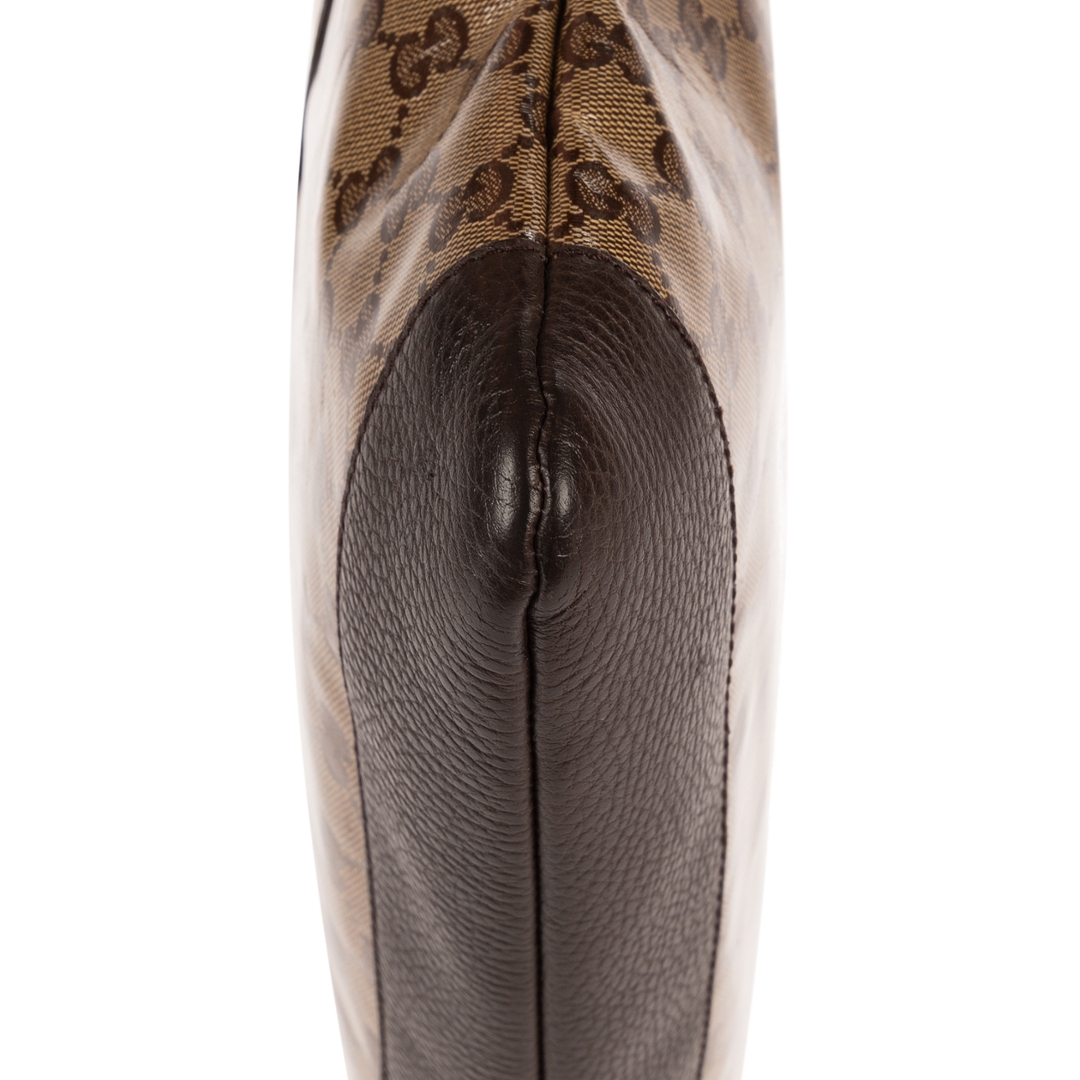 A vintage Gucci beige and dark brown calf leather Flat Messenger bag, featuring the house’s iconic GG monogram set against a classic neutral canvas. The sleek, flat silhouette is complemented by rich dark brown leather trim, creating a refined contrast that enhances its timeless appeal. Finished with subtle hardware detailing, the design reflects Gucci’s understated and recognisable aesthetic.