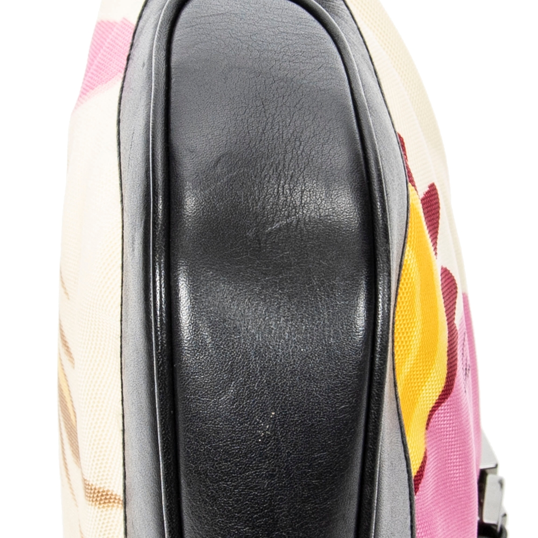 A vintage Gucci pink/black canvas Floral Jackie bag with a certificate of authenticity, Approximately 16cm height, 26cm width.