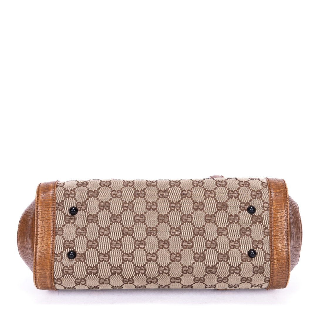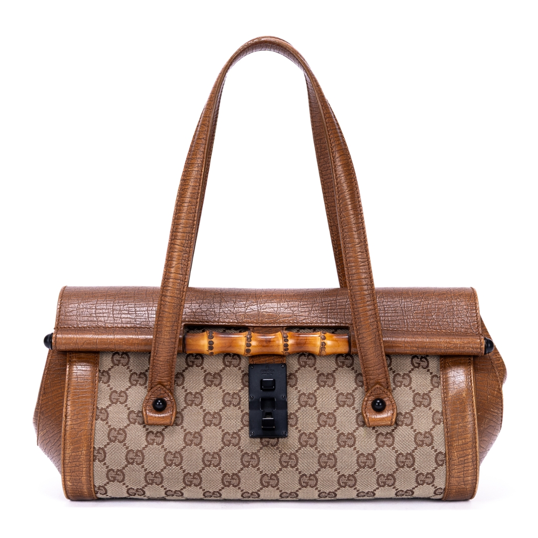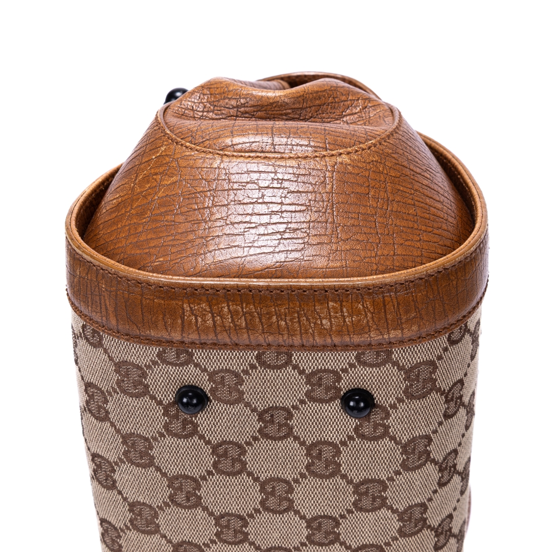 A vintage Gucci brown/beige calf leather GG Bamboo Bullet bag with a certificate of authenticity. Approximately 18cm height, 32cm width.