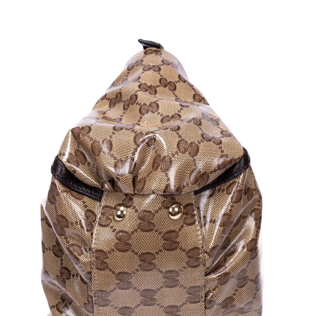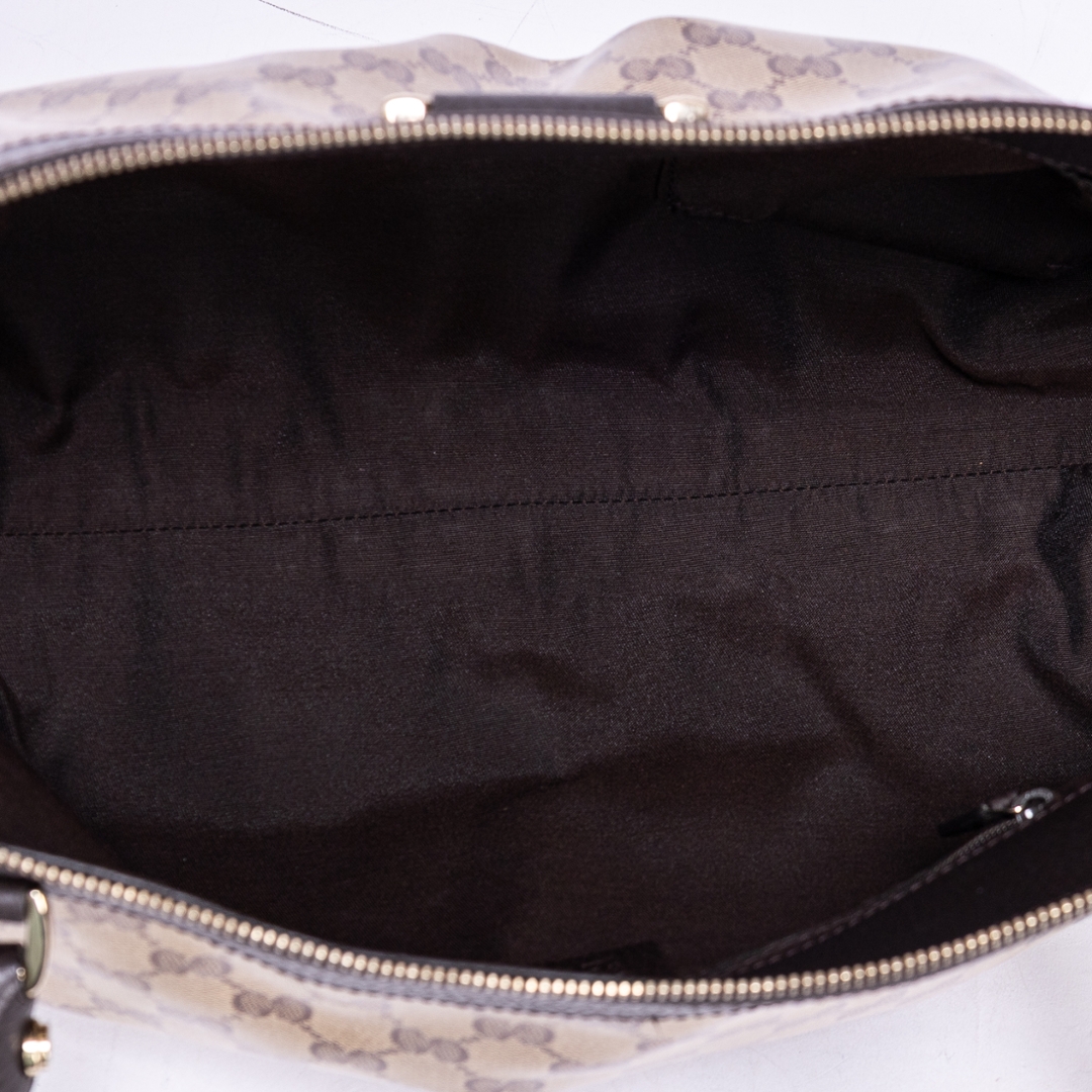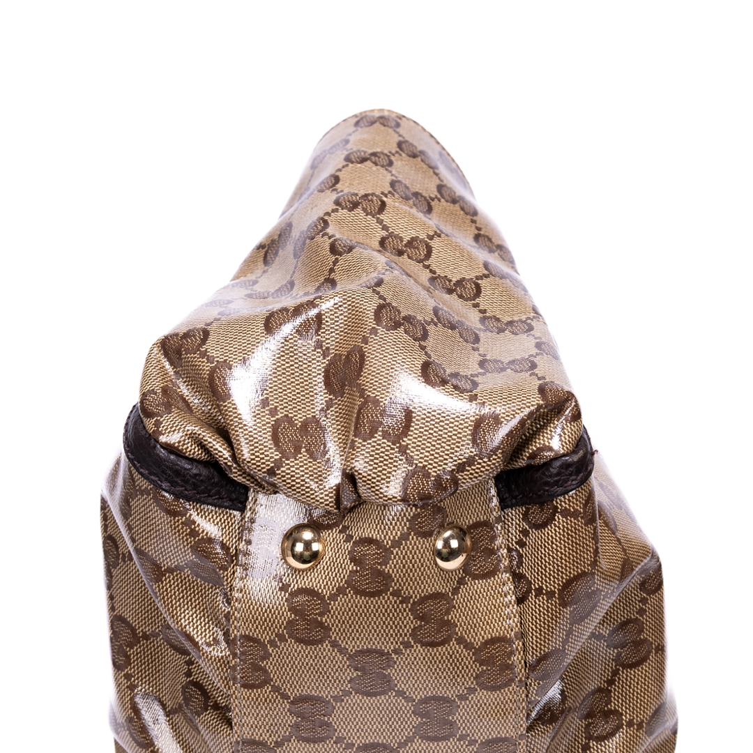 A vintage Gucci dark brown/beige calf leather GG Crystal Abbey D-Ring Tote bag with a certificate of authenticity, Approximately 23cm height, 37cm width.
