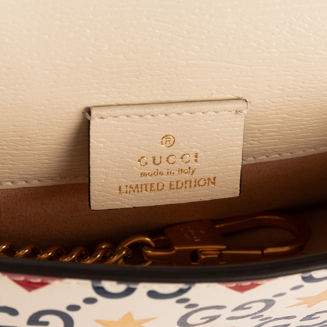 A vintage Gucci white/red coated canvas Limited Edition GG Heart Stars Sylvie Super Mini bag with a certificate of authenticity, Approximately 10cm height, 16cm width.