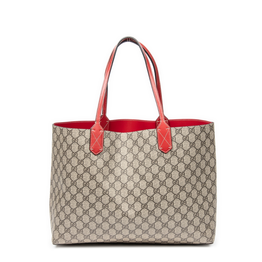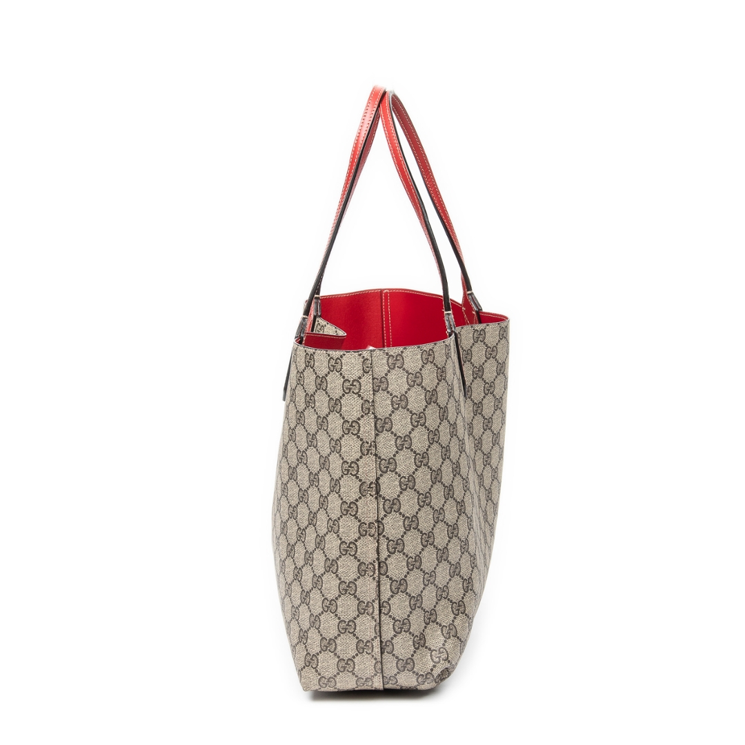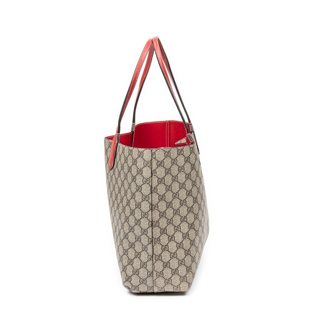 A vintage Gucci beige/red coated canvas GG Reversible Tote bag with a certificate of authenticity. Approximately 29cm height, 35cm width.