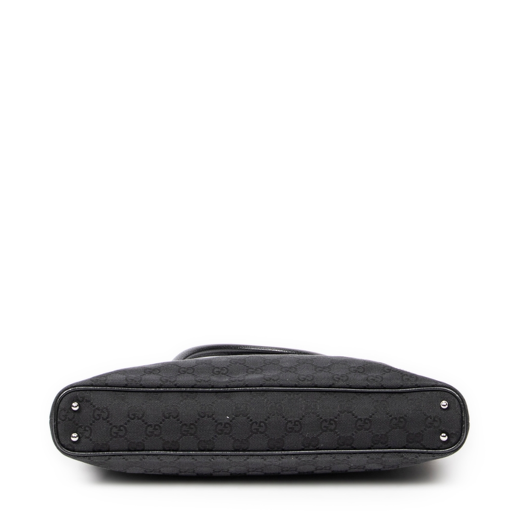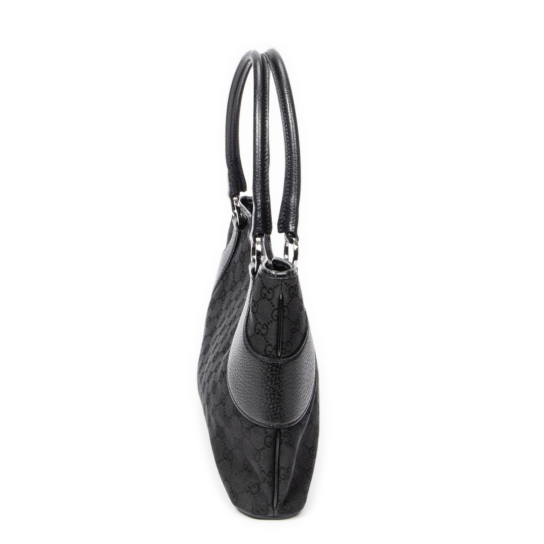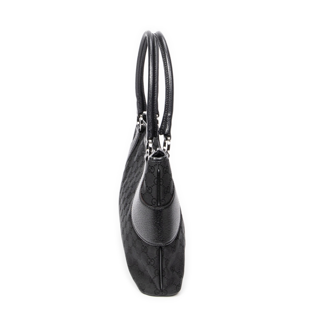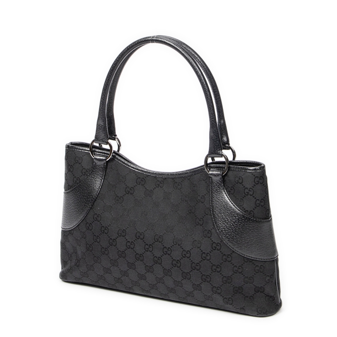 A vintage Gucci black canvas Horizontal Jacquard Tote bag with a certificate of authenticity. Approximately 21cm height, 36cm width.