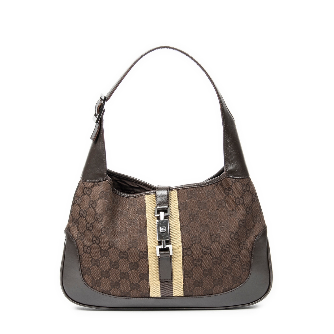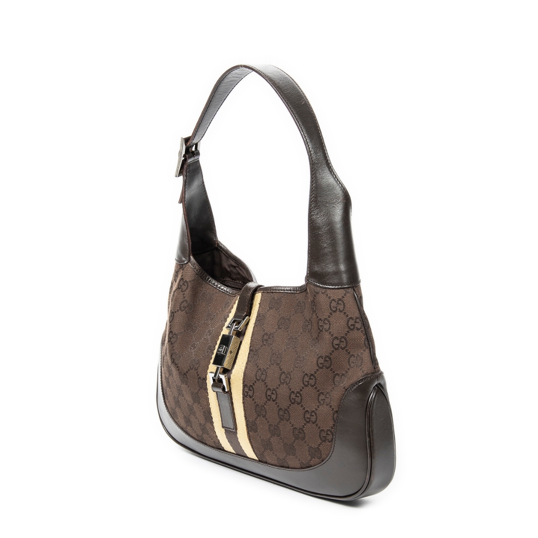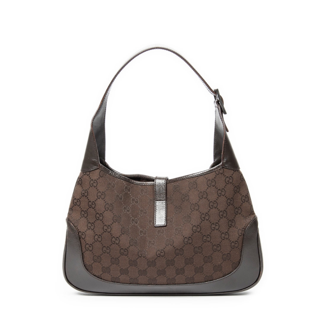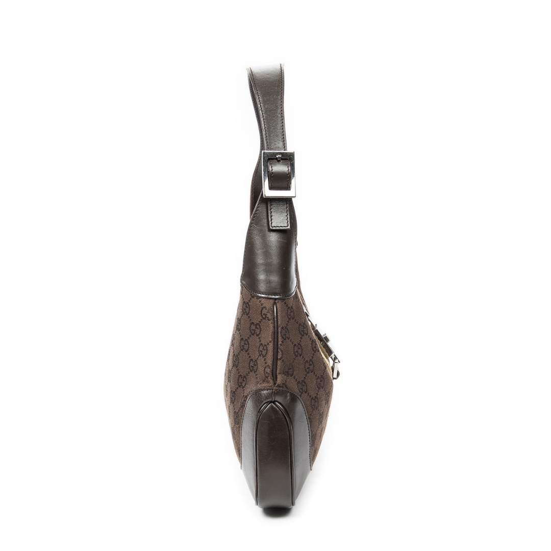 A vintage Gucci brown canvas Jackie O Hobo bag with a certificate of authenticity, Approximately cm height, cm width.