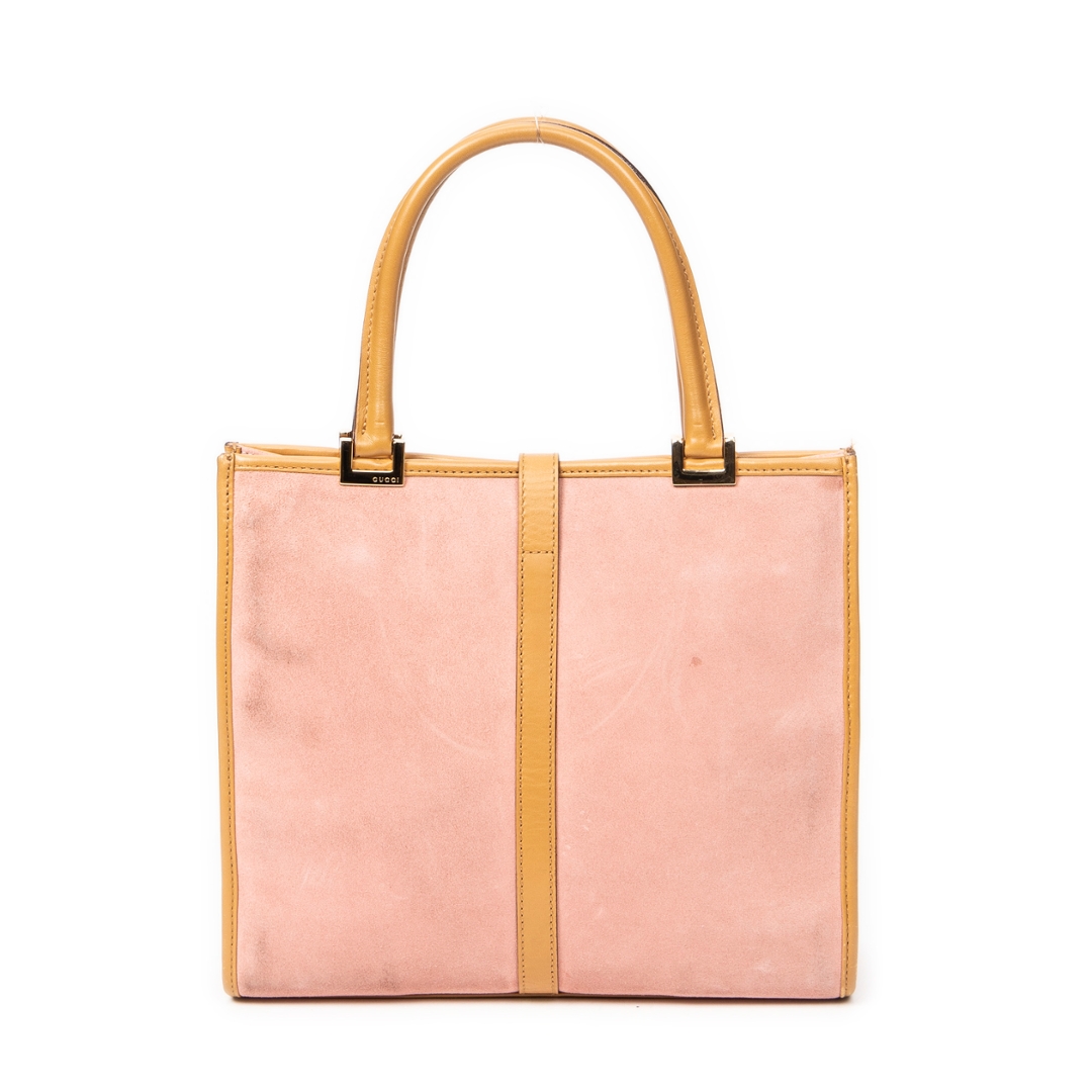 A vintage Gucci pink/brown calf leather Jackie Tote bag with a certificate of authenticity, Approximately 23cm height, 25cm width.