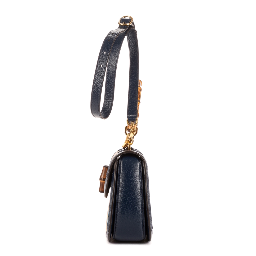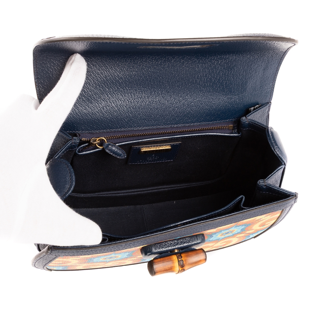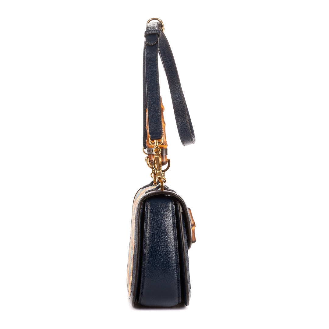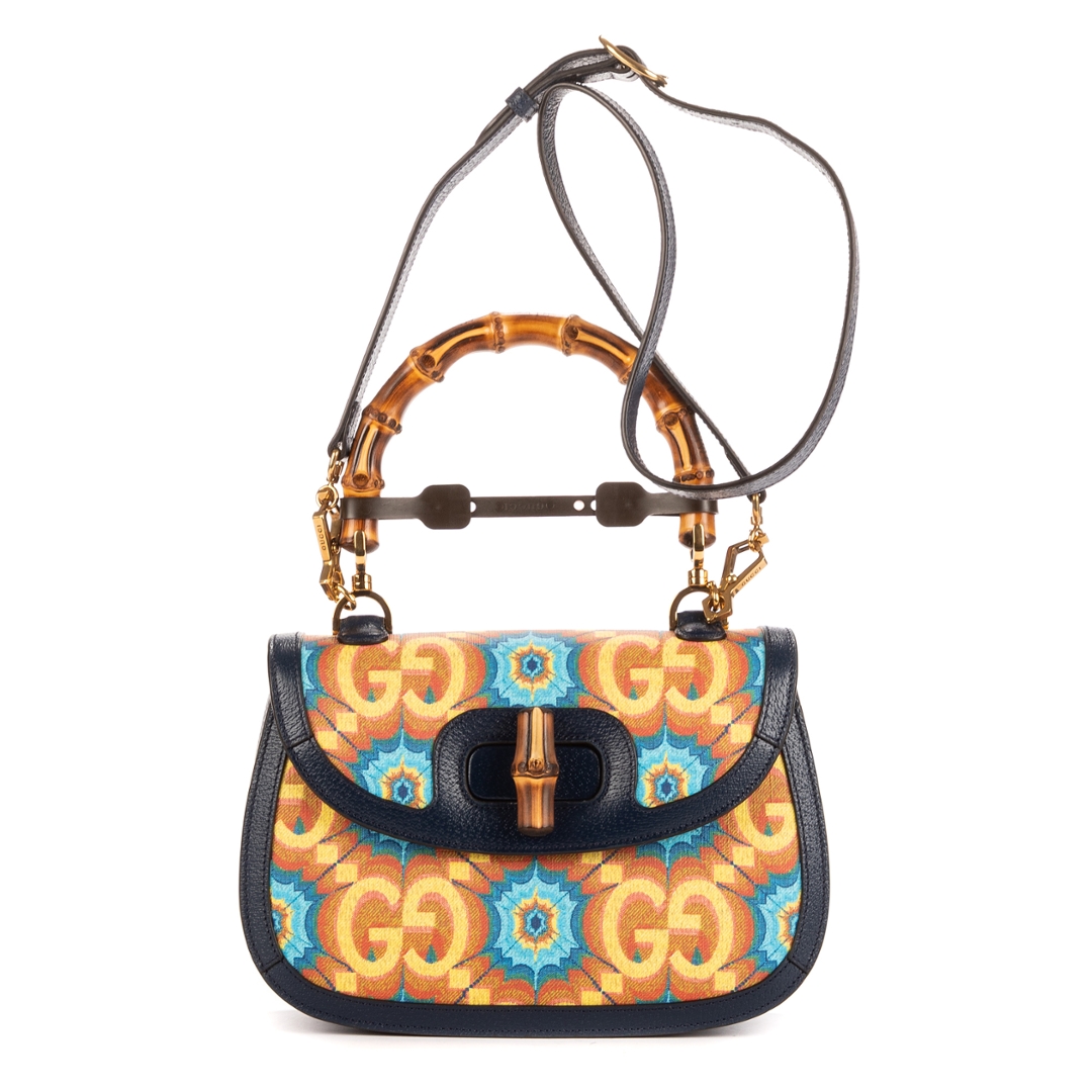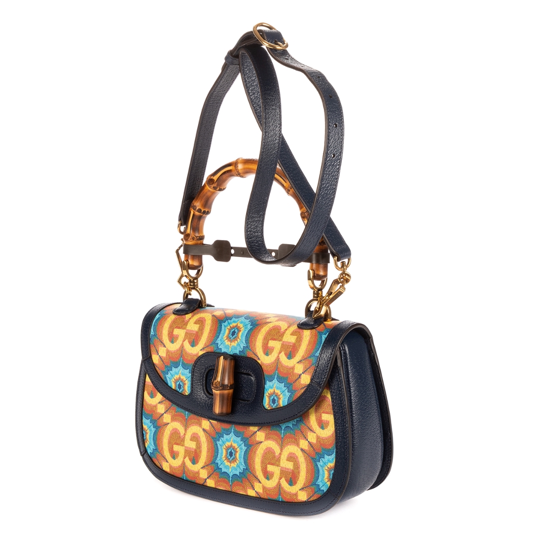 Measuring approximately 16cm in height and 25cm in width, this Kaleidoscope Bamboo bag offers the perfect balance of elegance and practicality. The structured silhouette and detachable shoulder strap allow for versatile styling, while the refined craftsmanship ensures durability and sophistication. Each detail, from the antique gold-tone hardware to the rich colour palette, reflects Gucci’s mastery of artistic design and timeless appeal.