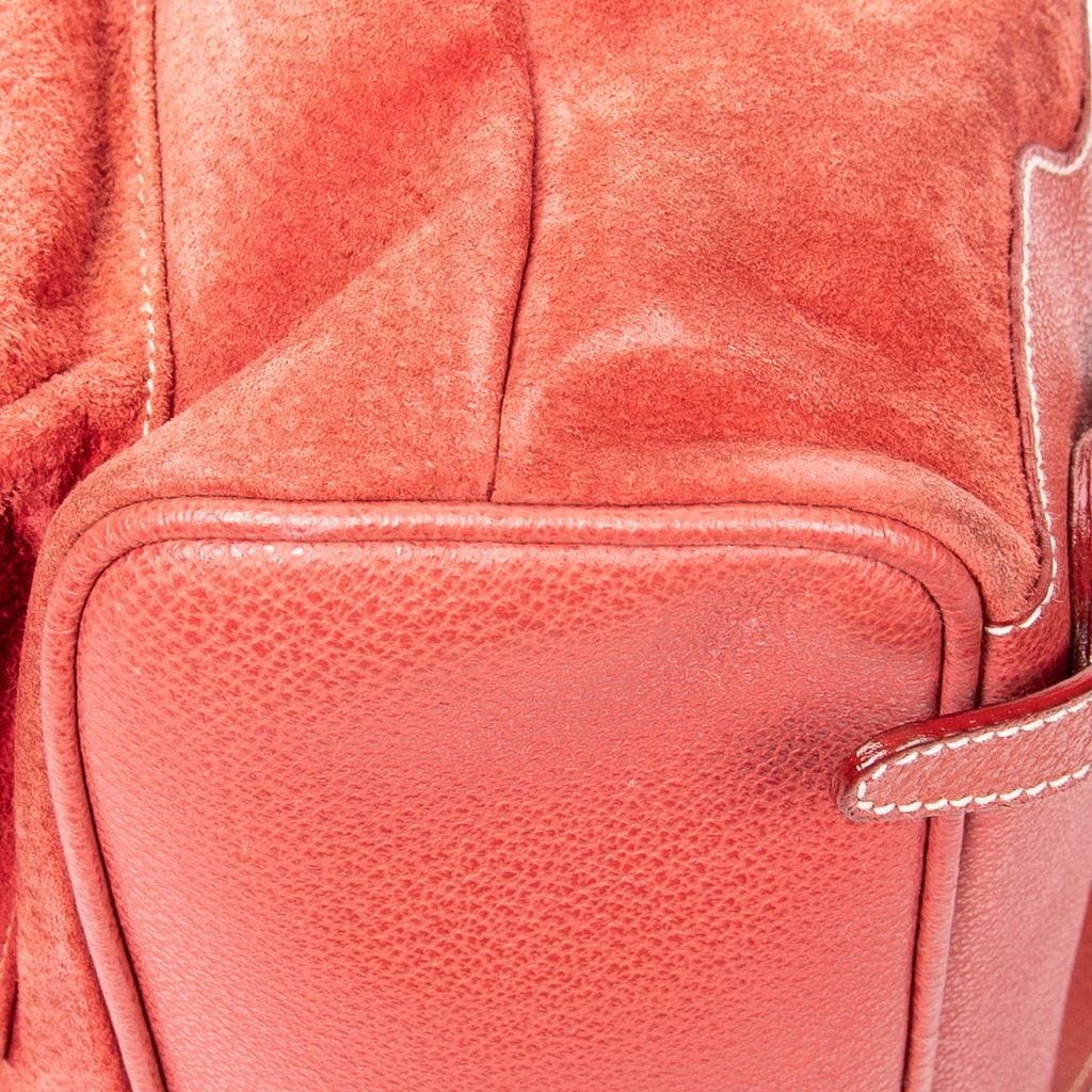 A vintage Gucci red calf leather Large Bamboo Backpack bag with a certificate of authenticity, Approximately 30cm height, 30cm width.