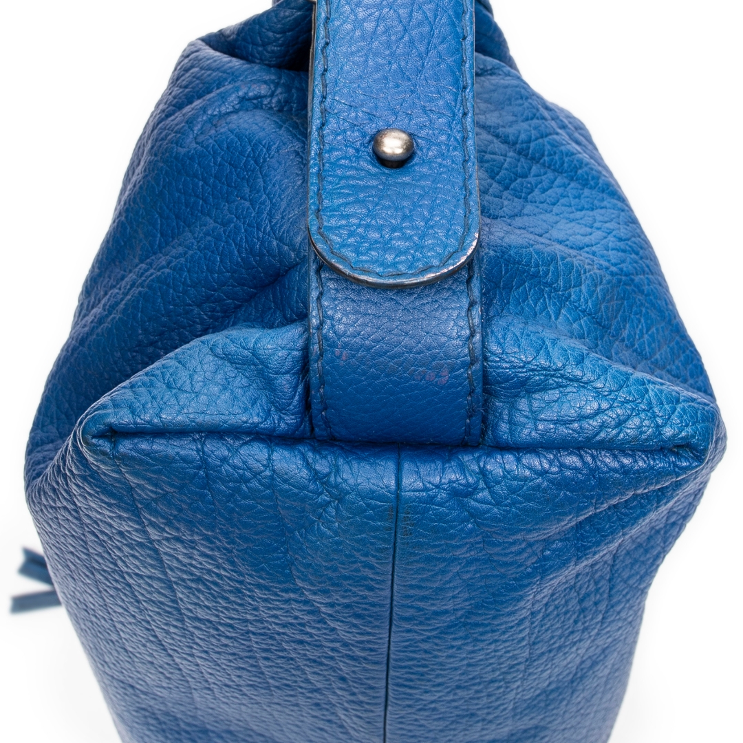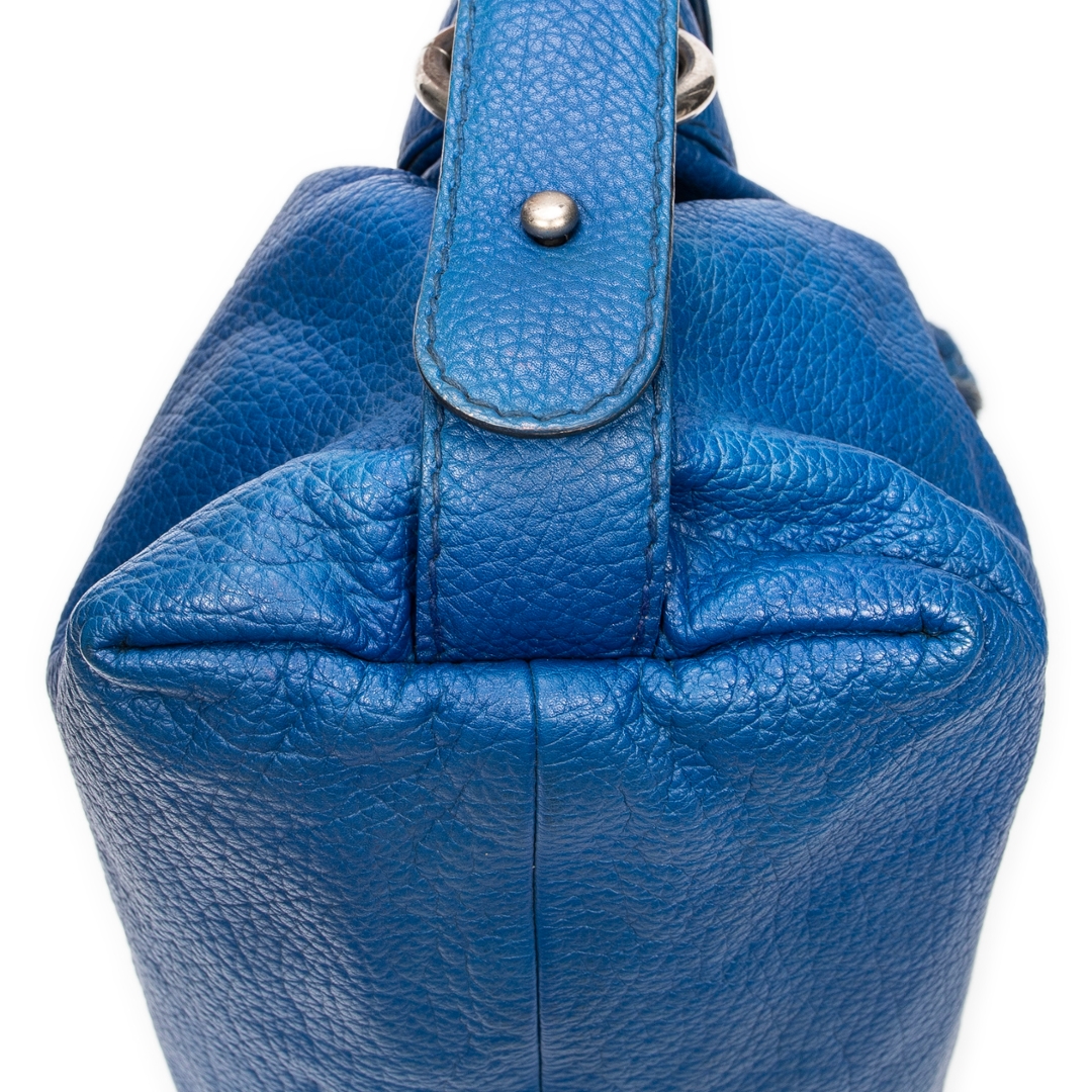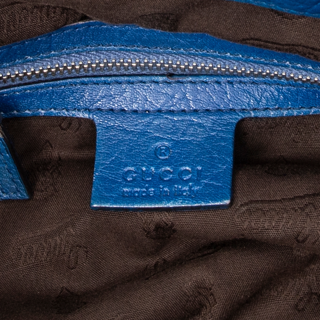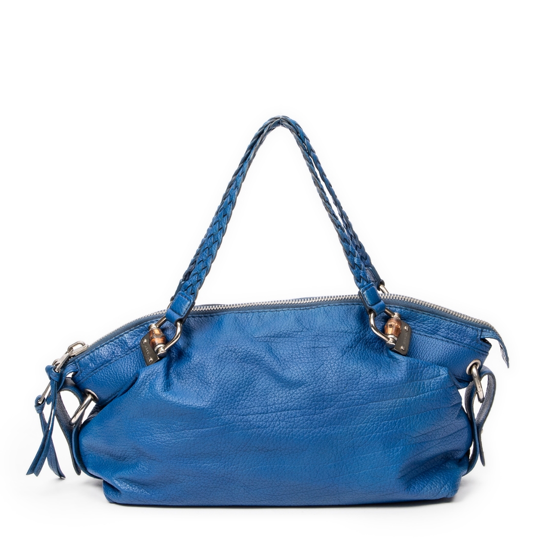 A vintage Gucci royal blue calf leather Large Bamboo Bar Boston bag with a certificate of authenticity, this striking piece showcases the bold colour, refined texture and signature detailing that define Gucci’s more distinctive archival designs. Crafted in richly saturated royal blue calf leather, the bag features a soft, naturally grained surface complemented by braided leather handles that echo the house’s iconic bamboo-inspired craftsmanship. The elongated Boston silhouette offers a relaxed yet structured profile, enhanced by silver-tone hardware that adds a subtle contemporary edge.