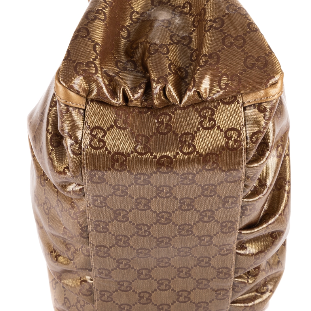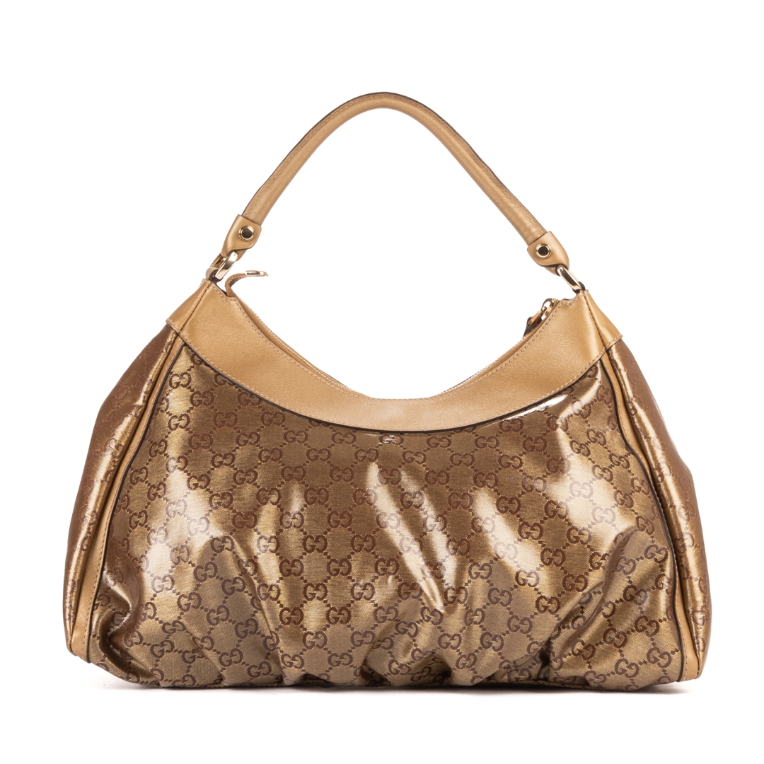 A vintage Gucci beige/brown coated canvas Large D-Ring Hobo bag with a certificate of authenticity, Approximately 26cm height, 37cm width.