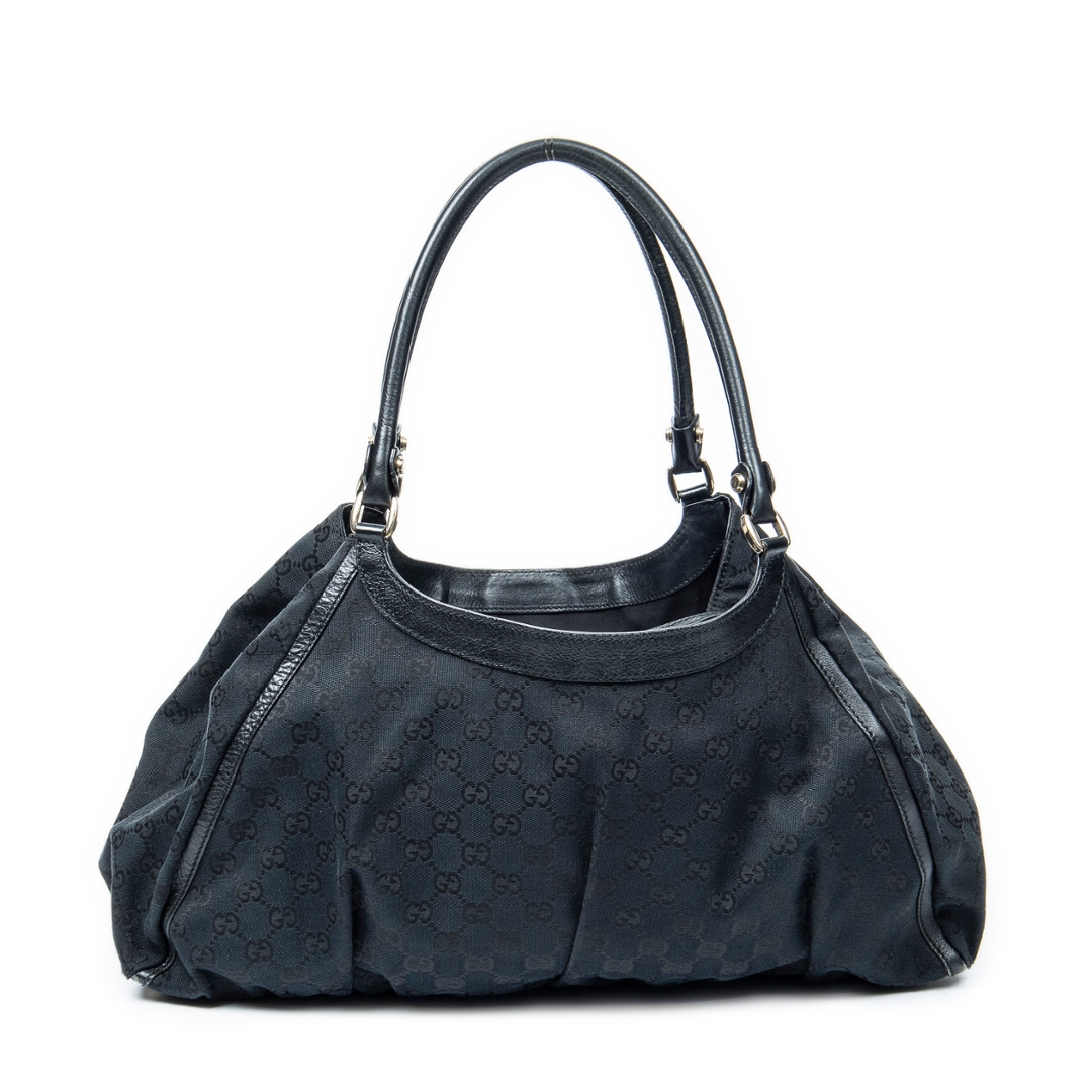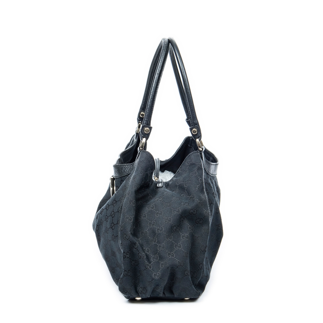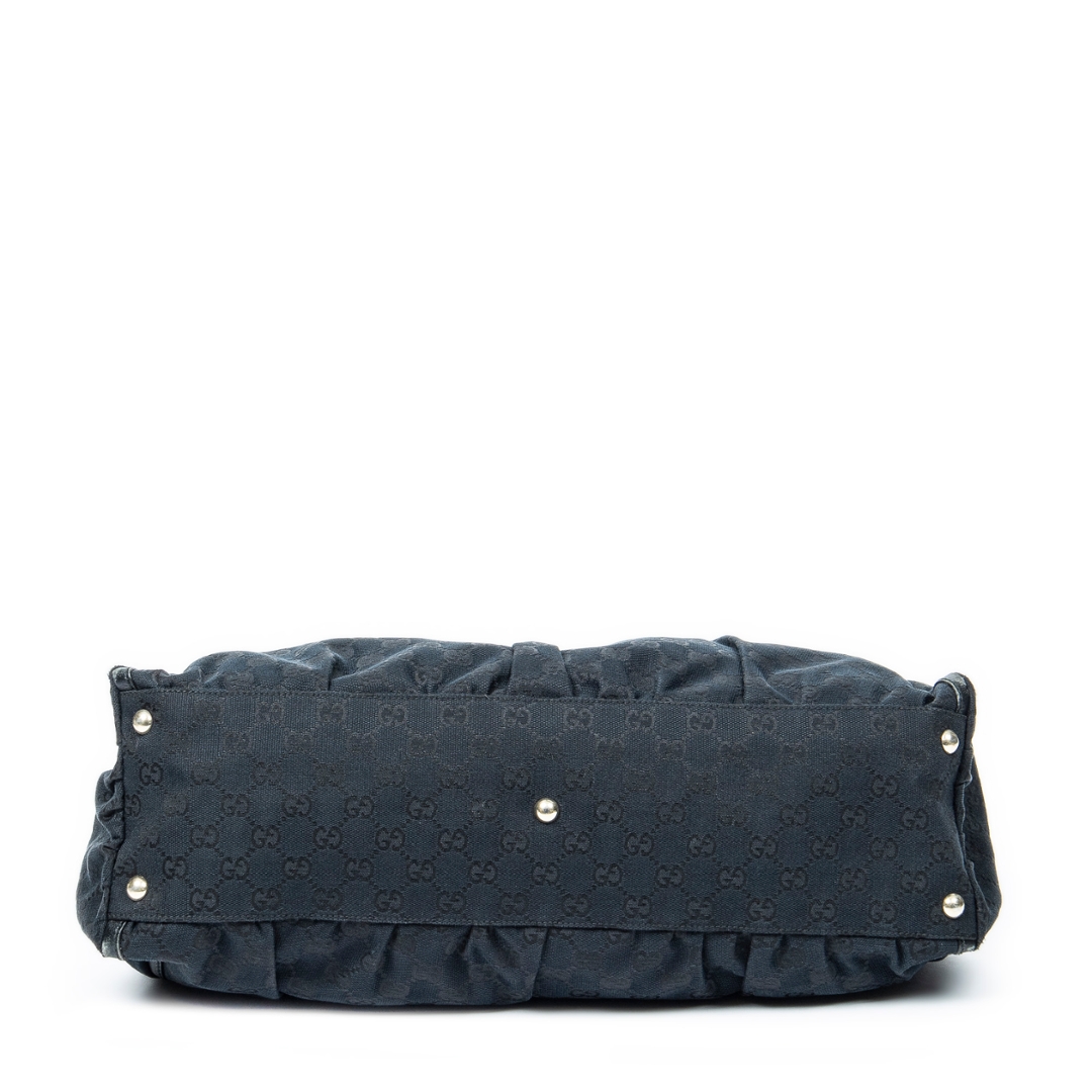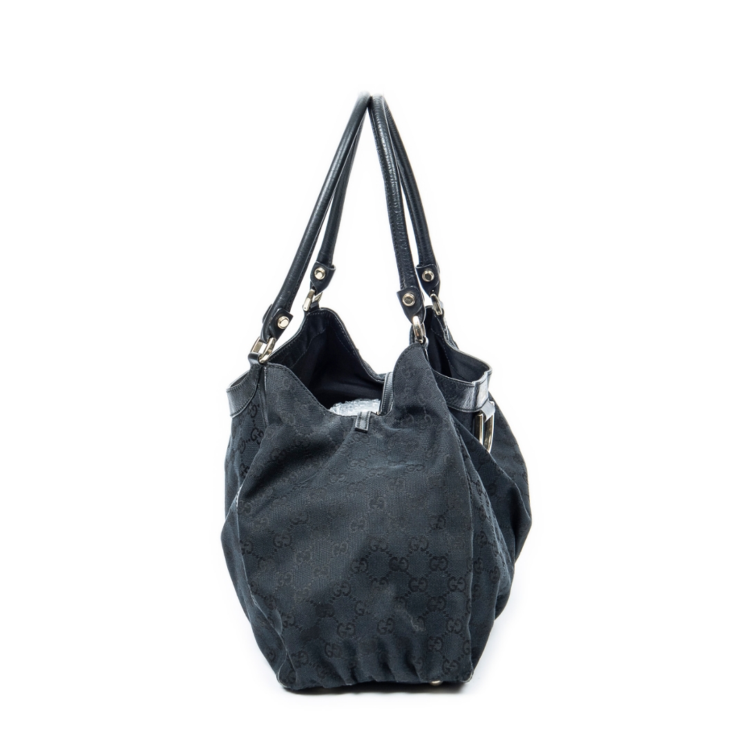 A vintage Gucci black canvas Large D-Ring Tote bag with a certificate of authenticity, Approximately 24cm height, 43cm width.