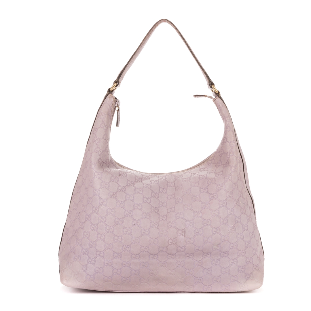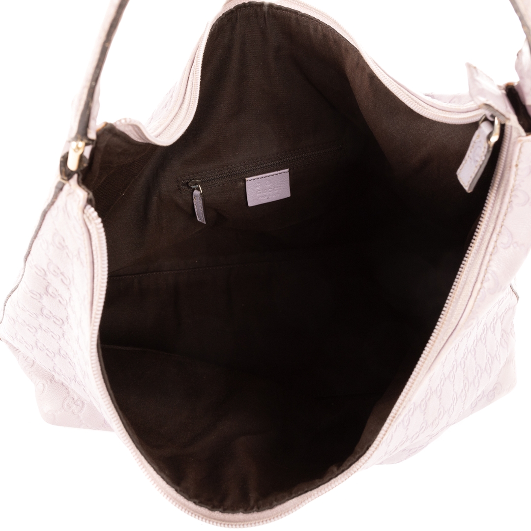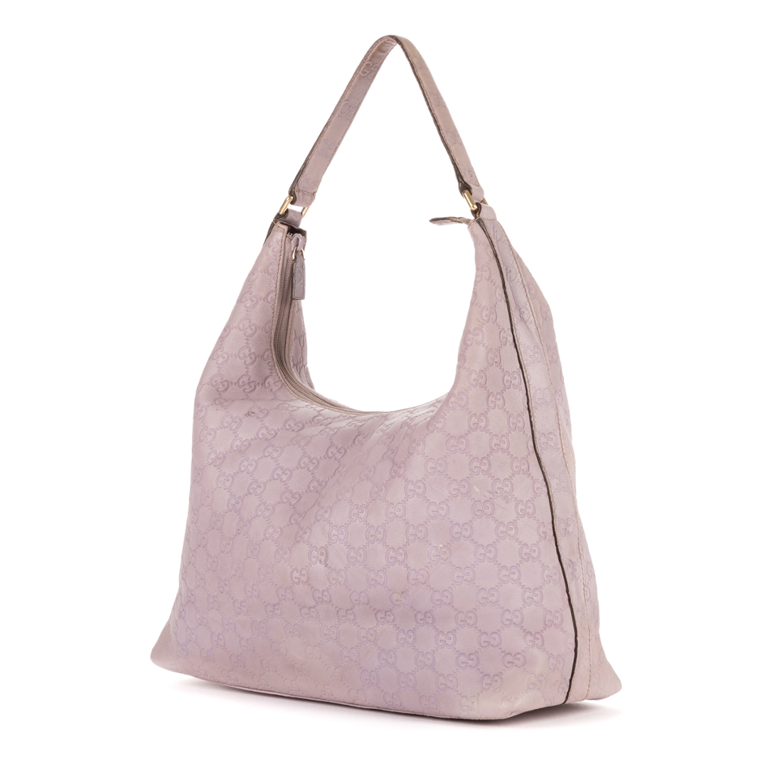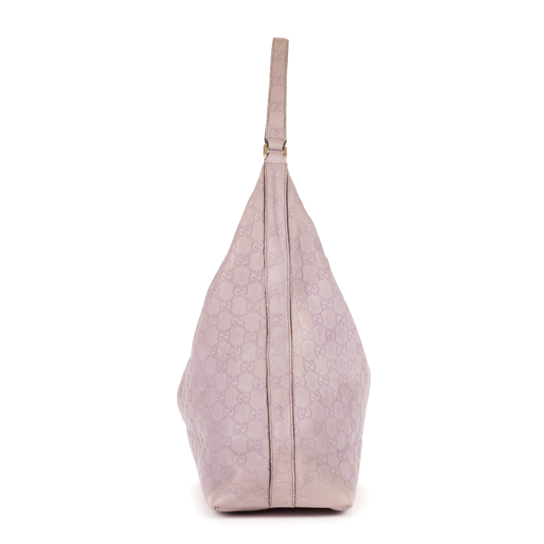 A vintage Gucci lilac calf leather Large Hobo bag with a certificate of authenticity, Approximately 26cm height, 35cm width.