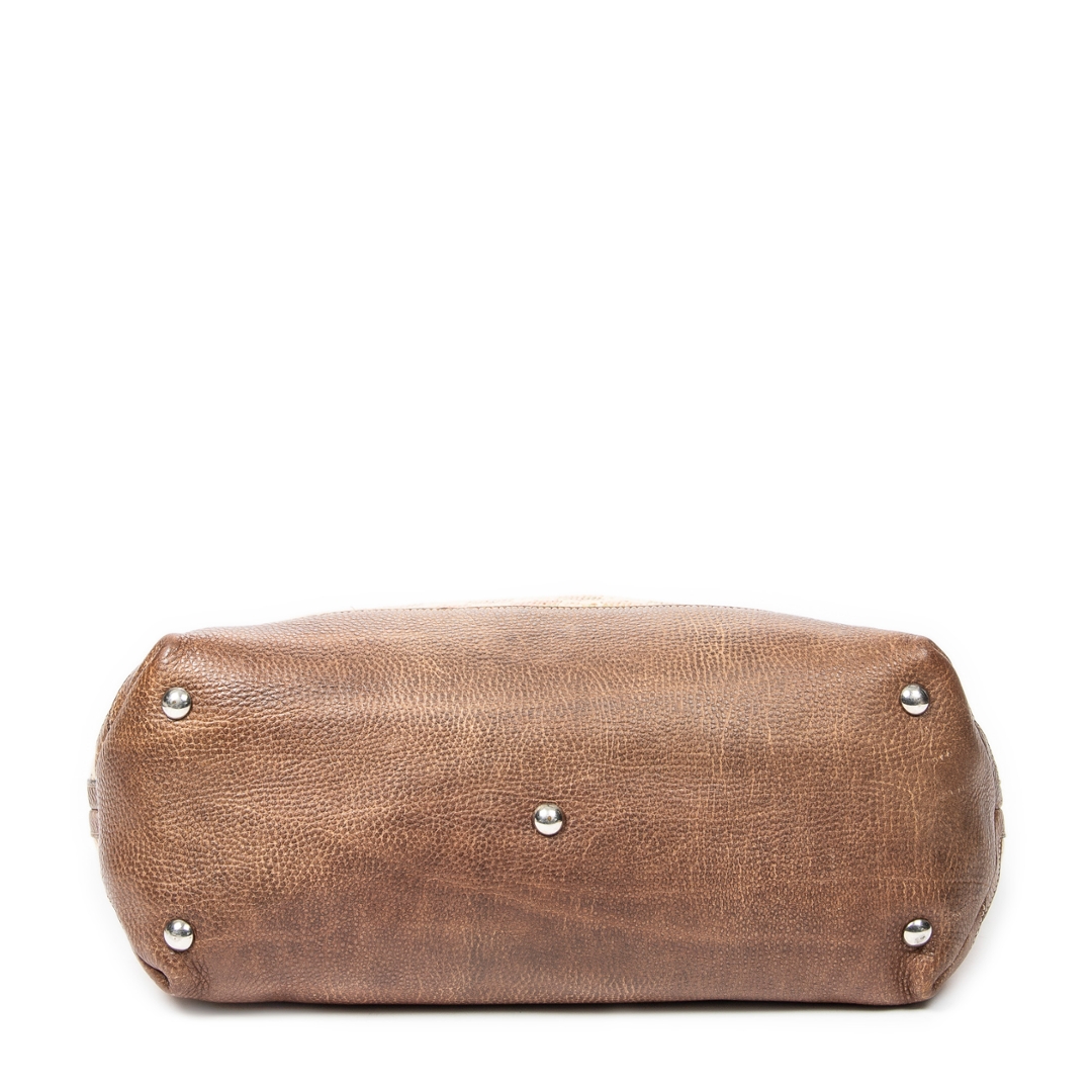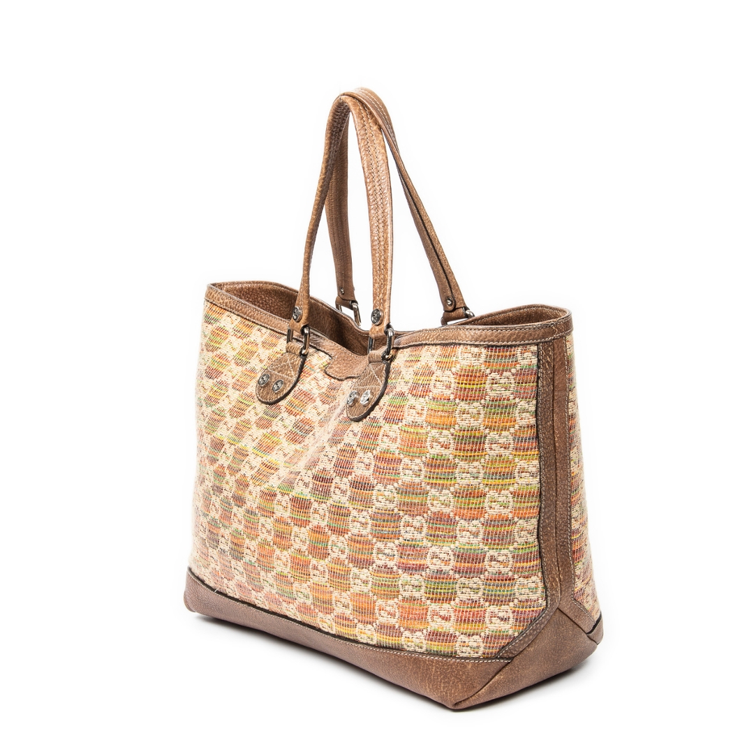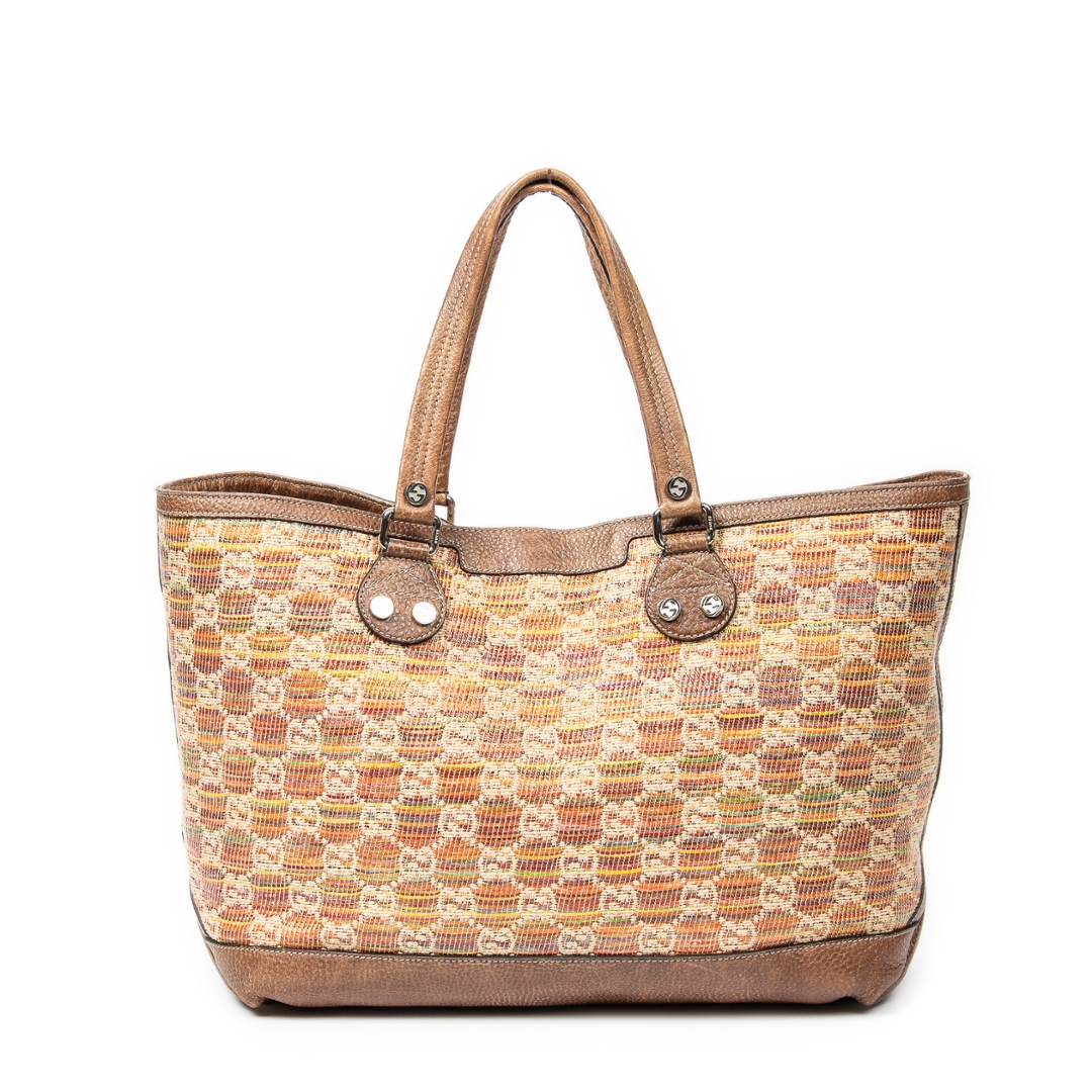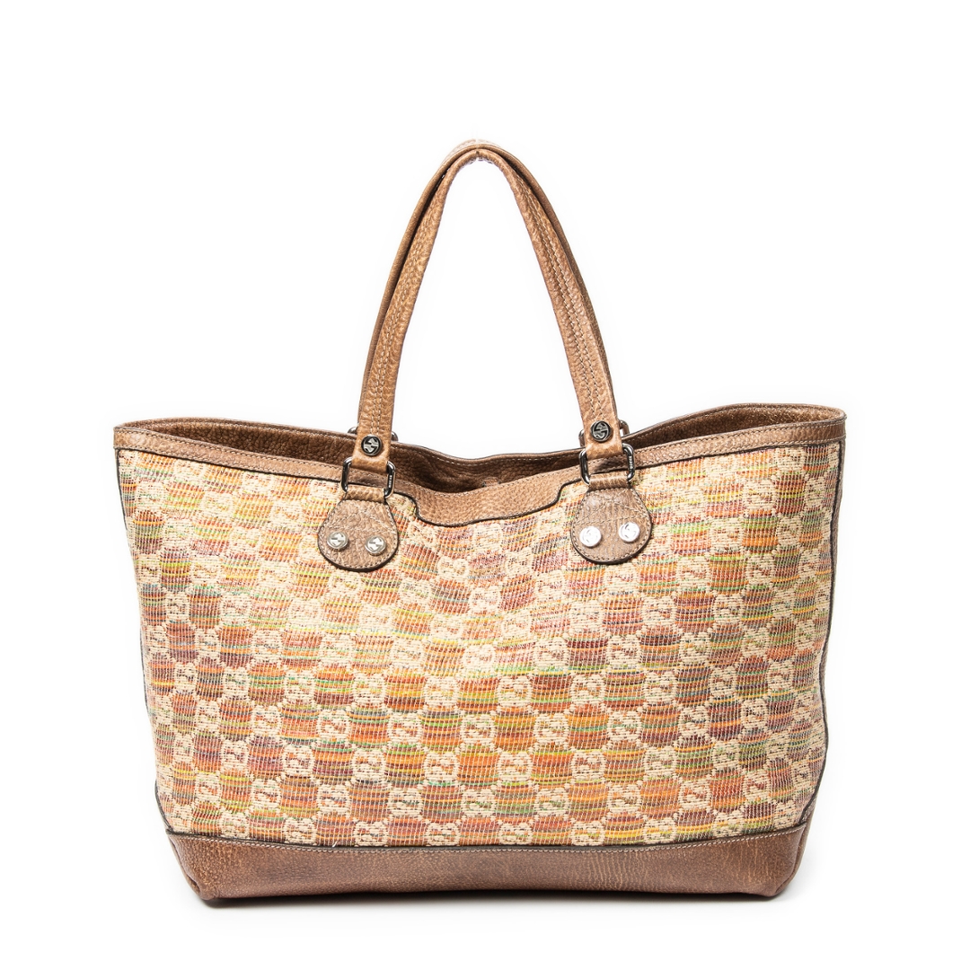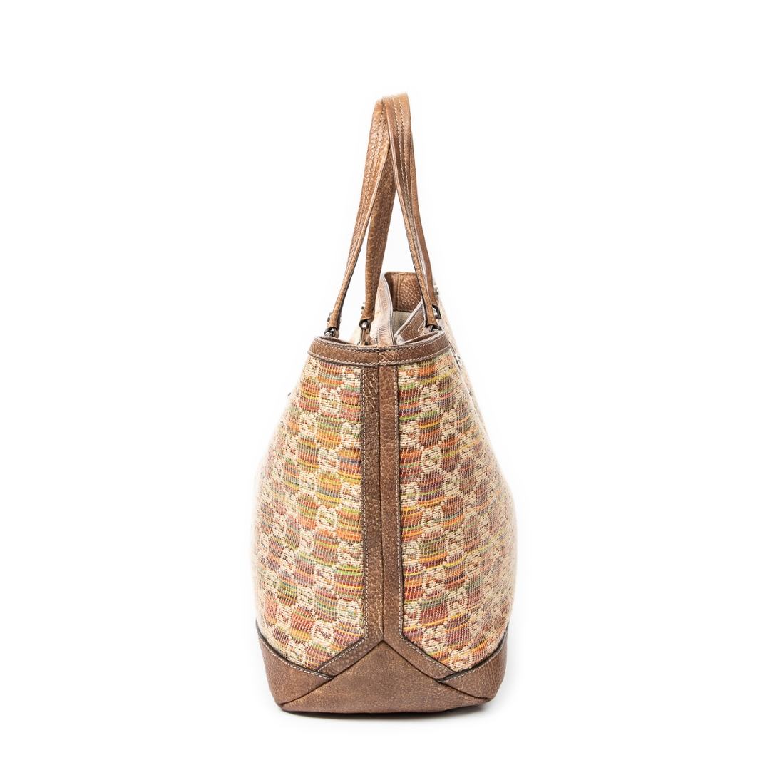 A vintage Gucci brown/orange canvas Large Libeccio Sunset Tote bag with a certificate of authenticity, Approximately 32cm height, 37cm width.