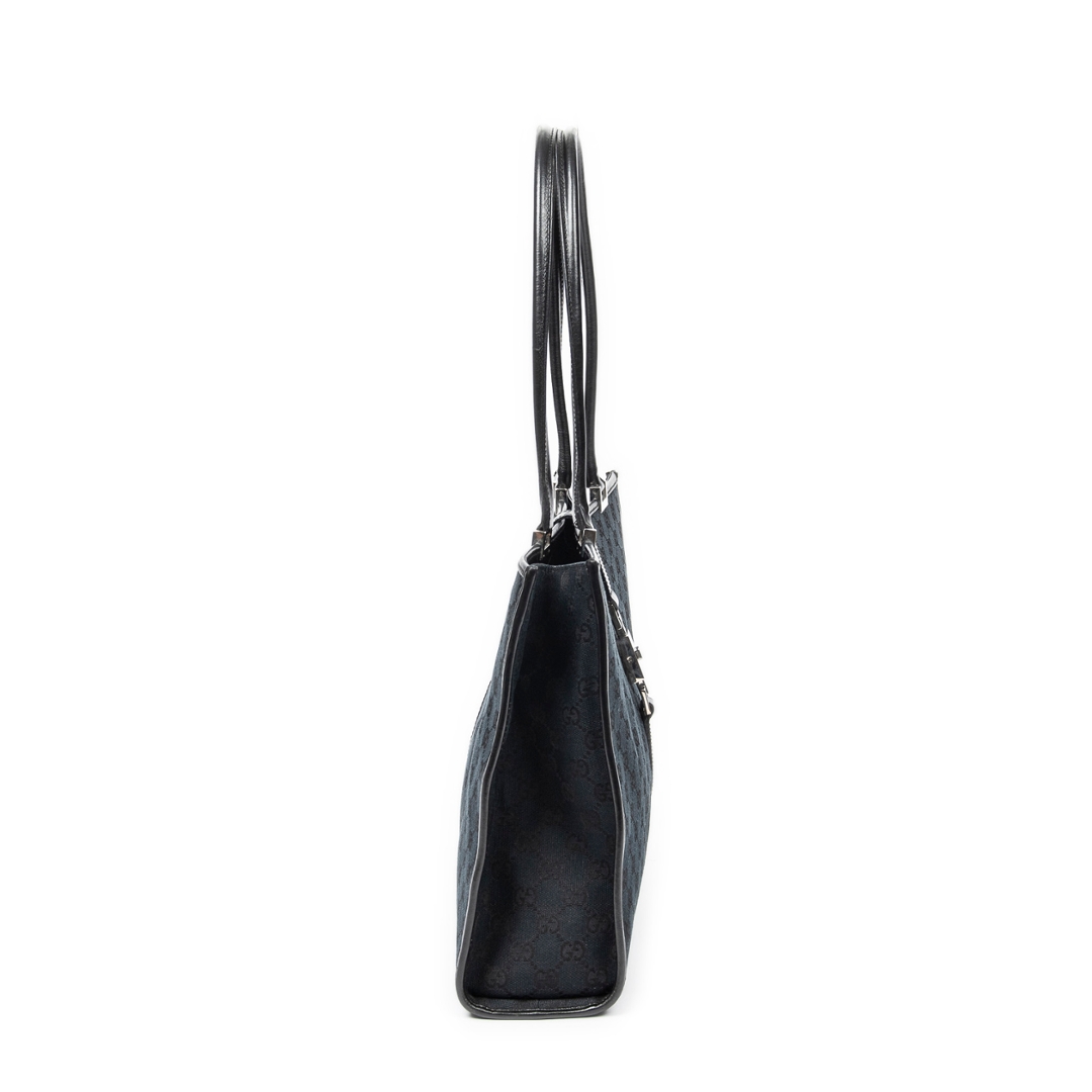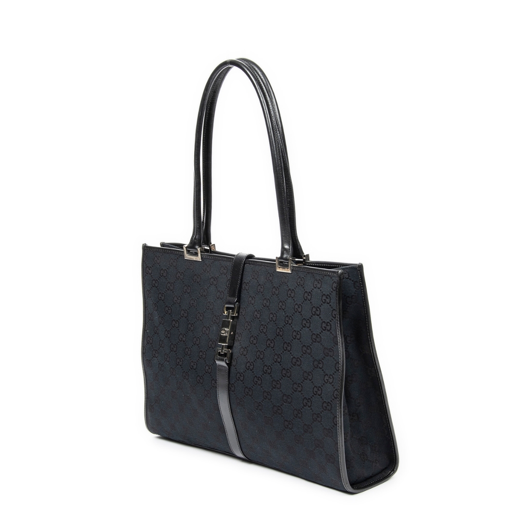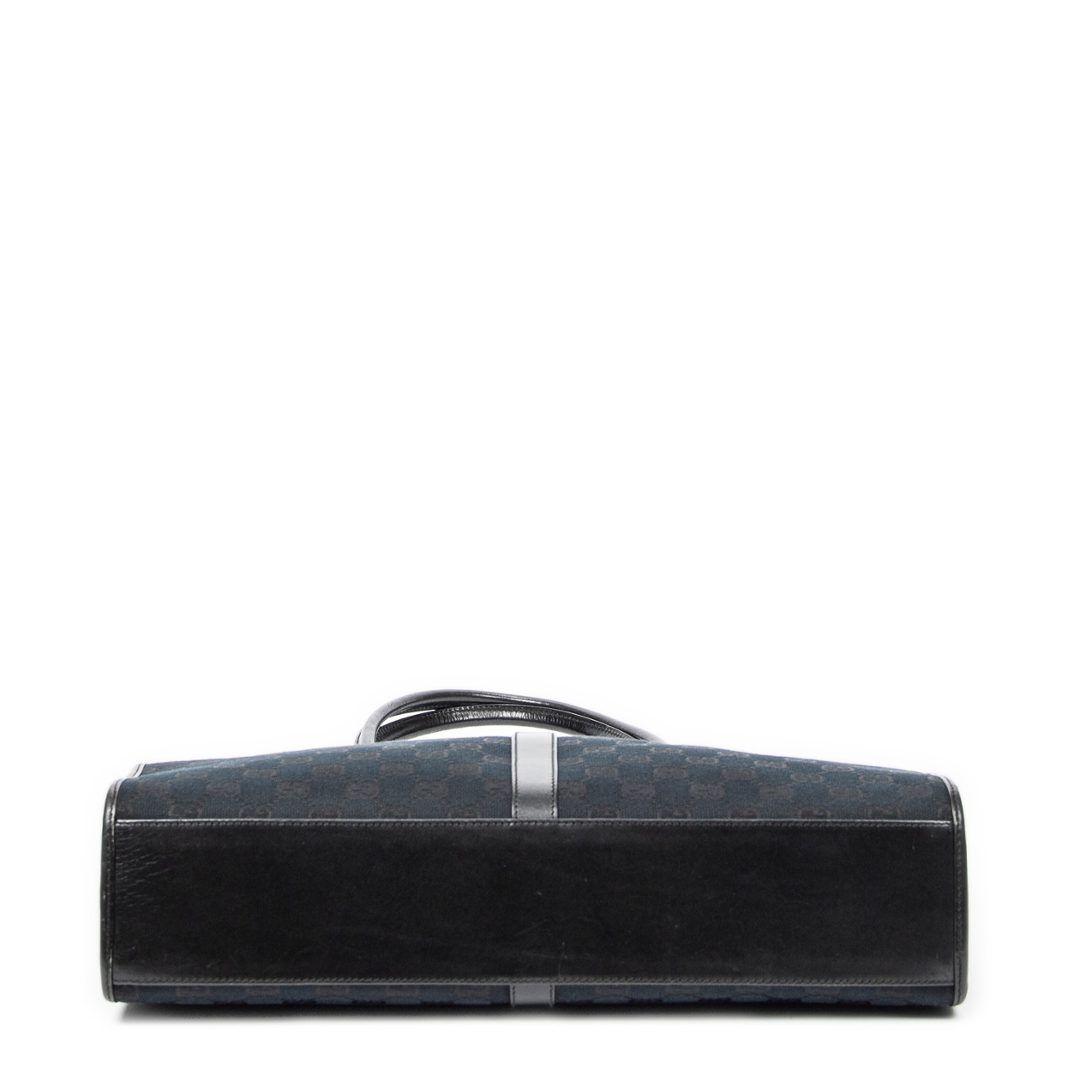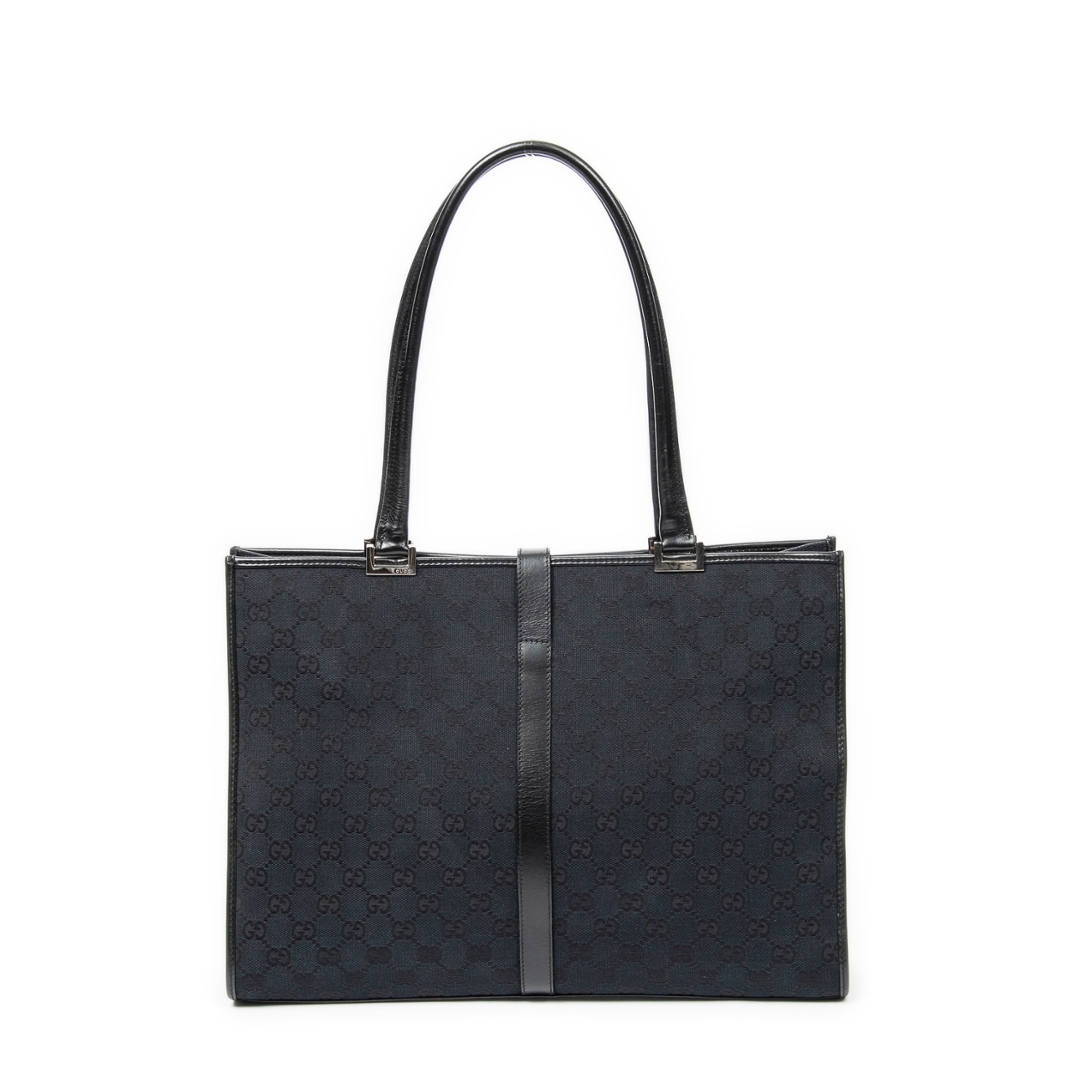 A vintage Gucci black canvas Large Square Tote bag with a certificate of authenticity. Approximately 27cm height, 38cm width.