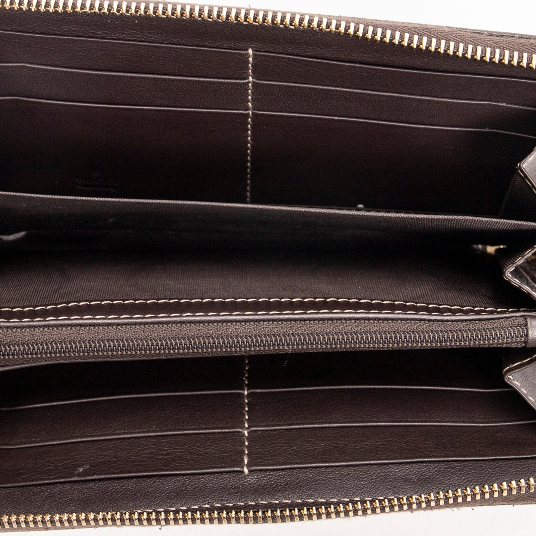 A vintage Gucci beige canvas Lovely Heart Zip Around Wallet with a certificate of authenticity, Approximately 10cm height, 20cm width.