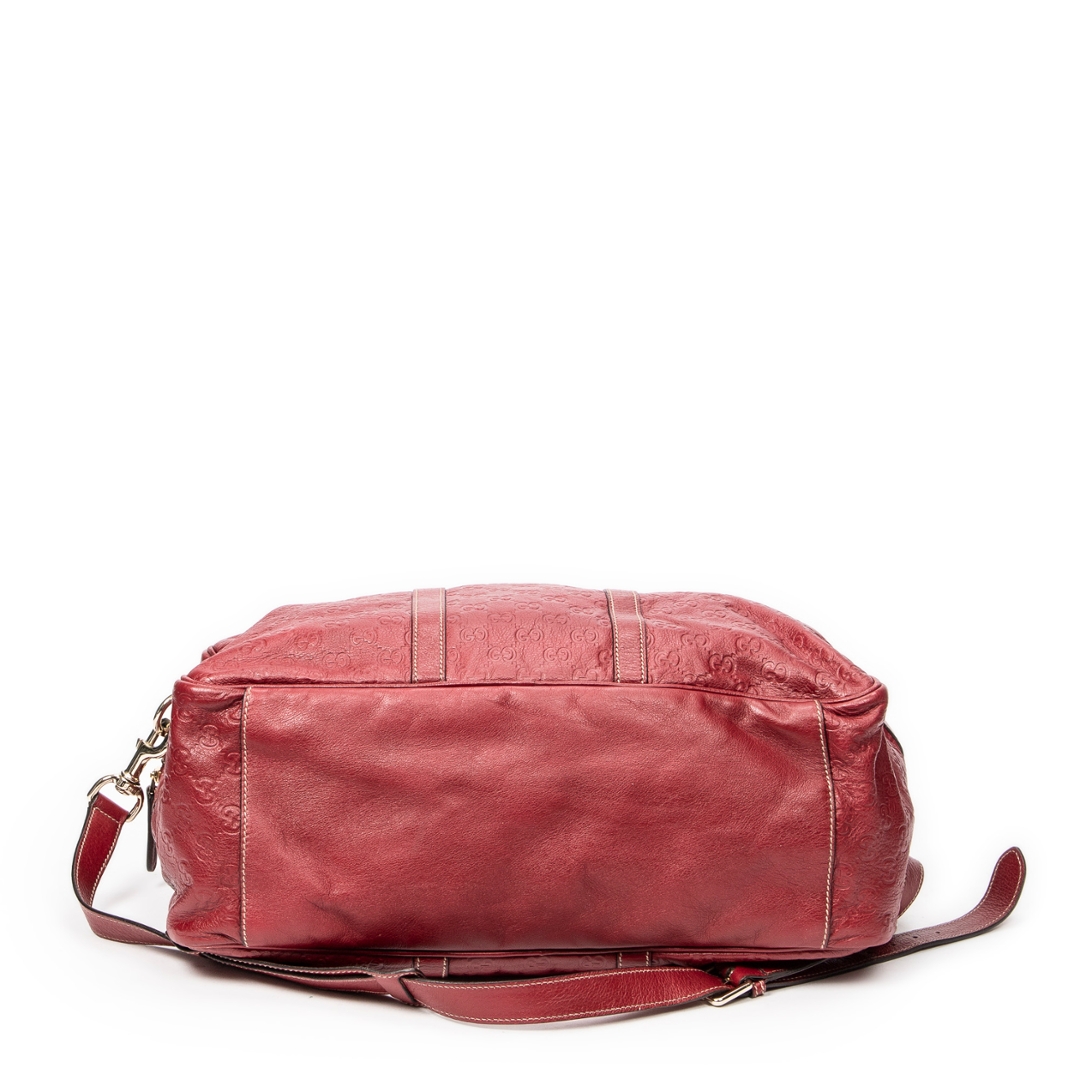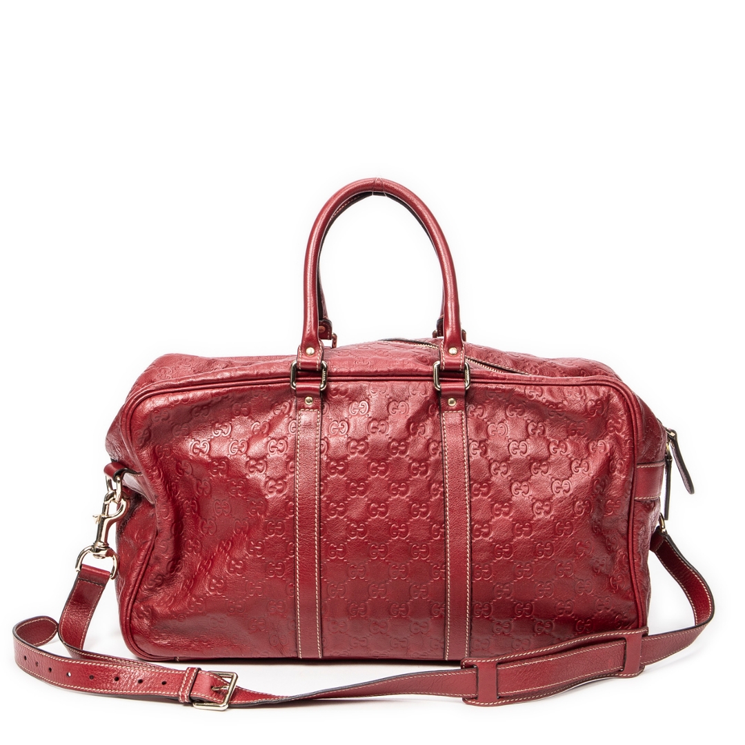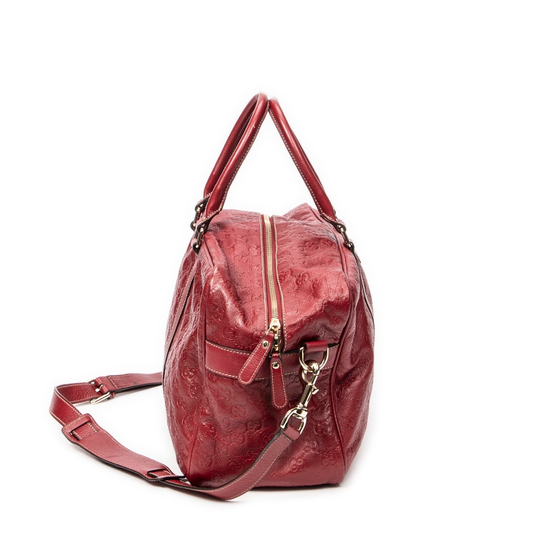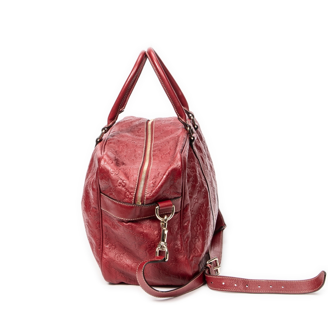 A vintage Gucci red calf leather Medium 2-Way Boston bag with a certificate of authenticity, Approximately 22cm height, 41cm width.