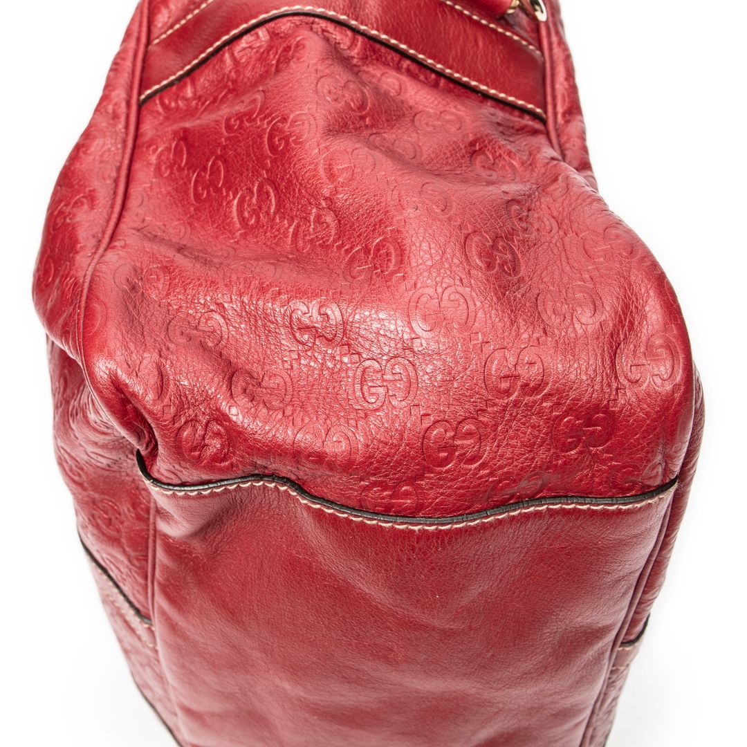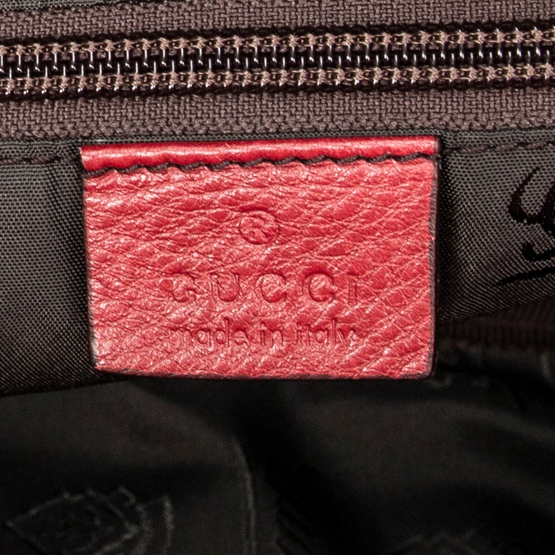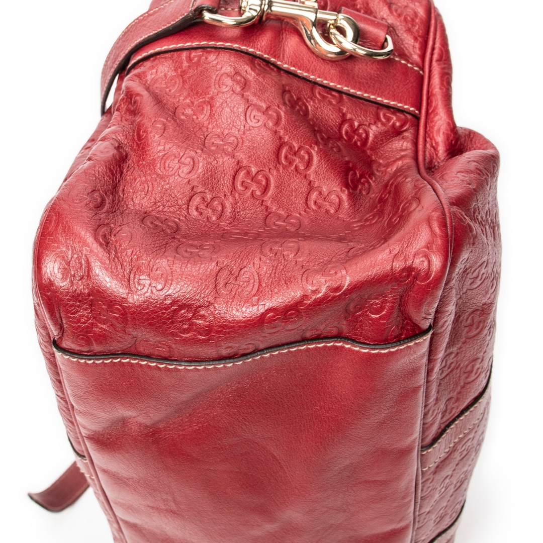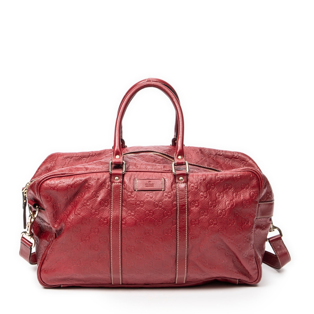 A vintage Gucci red calf leather Medium 2-Way Boston bag with a certificate of authenticity, Approximately 22cm height, 41cm width.