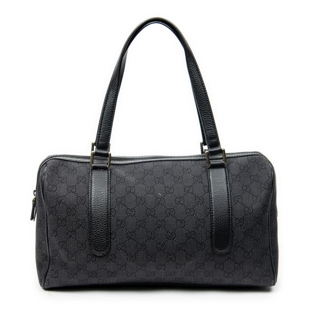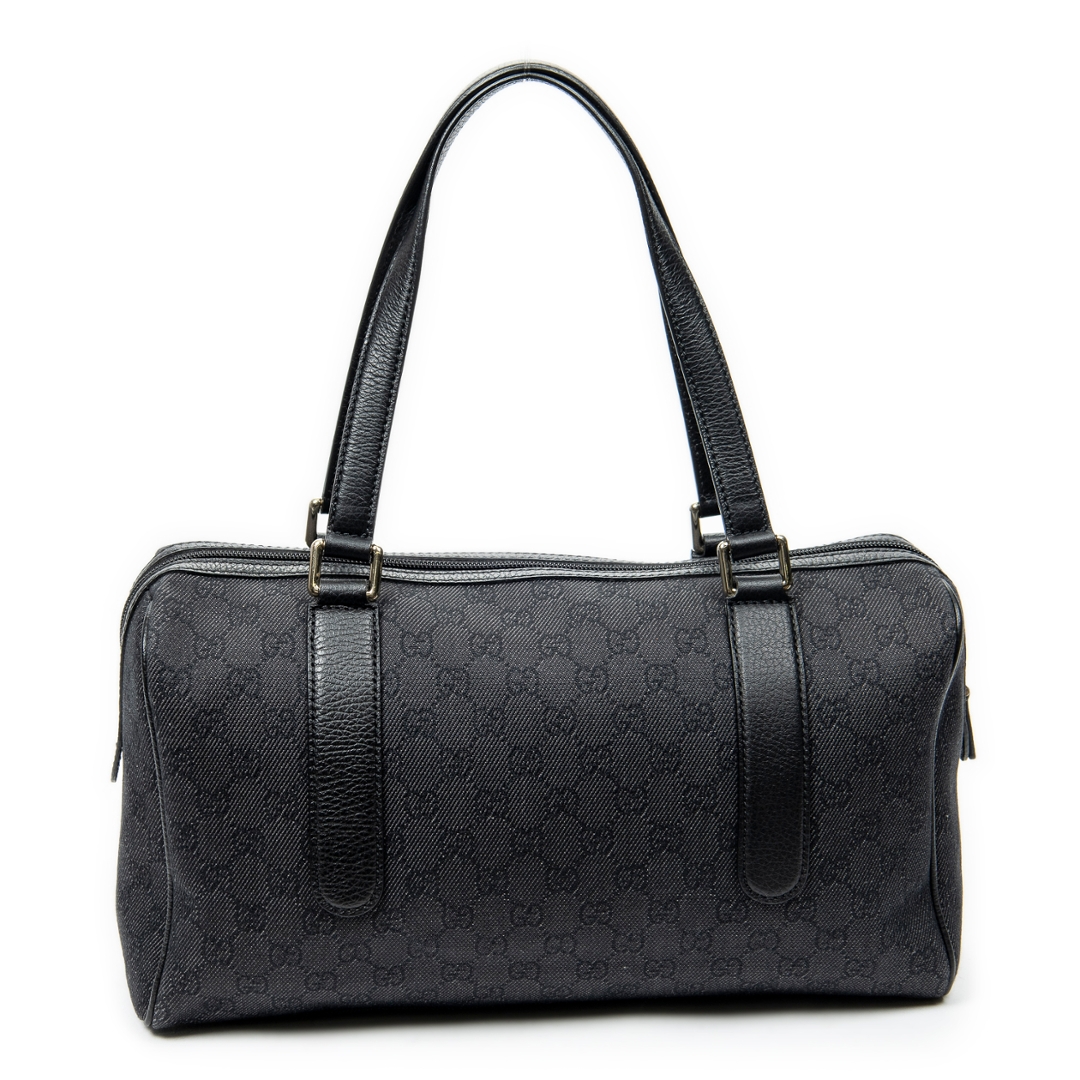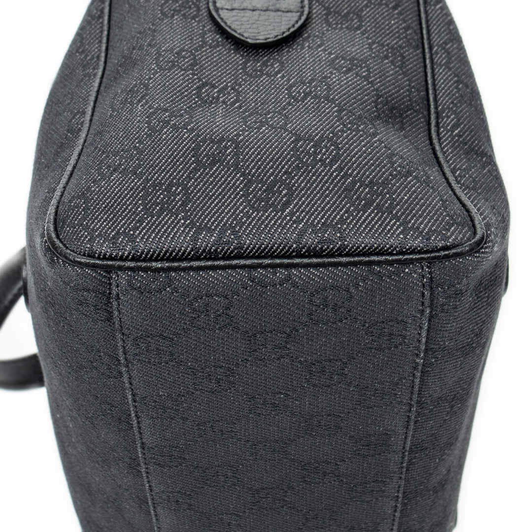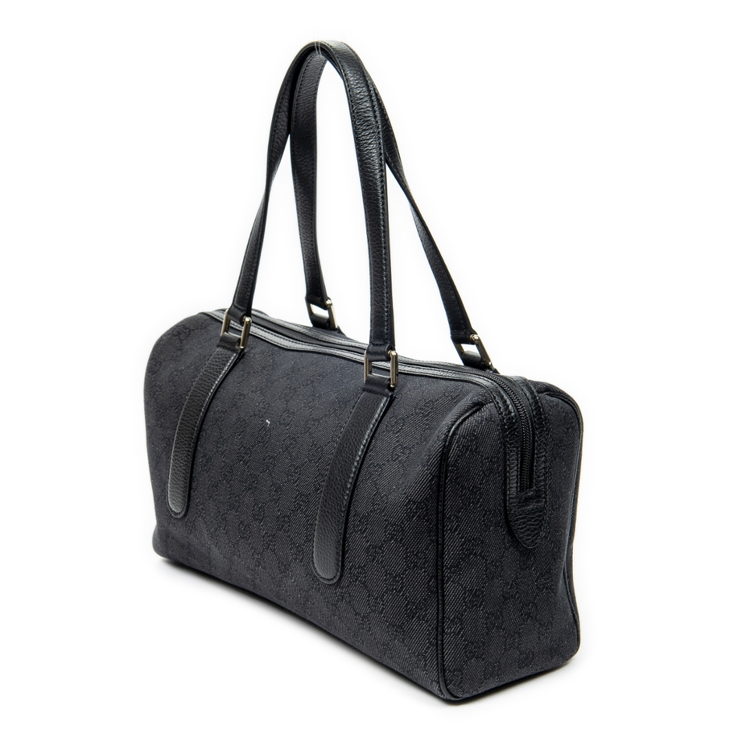 A vintage Gucci black canvas Medium Boston bag with a certificate of authenticity. Approximately 20cm height, 35cm width.
