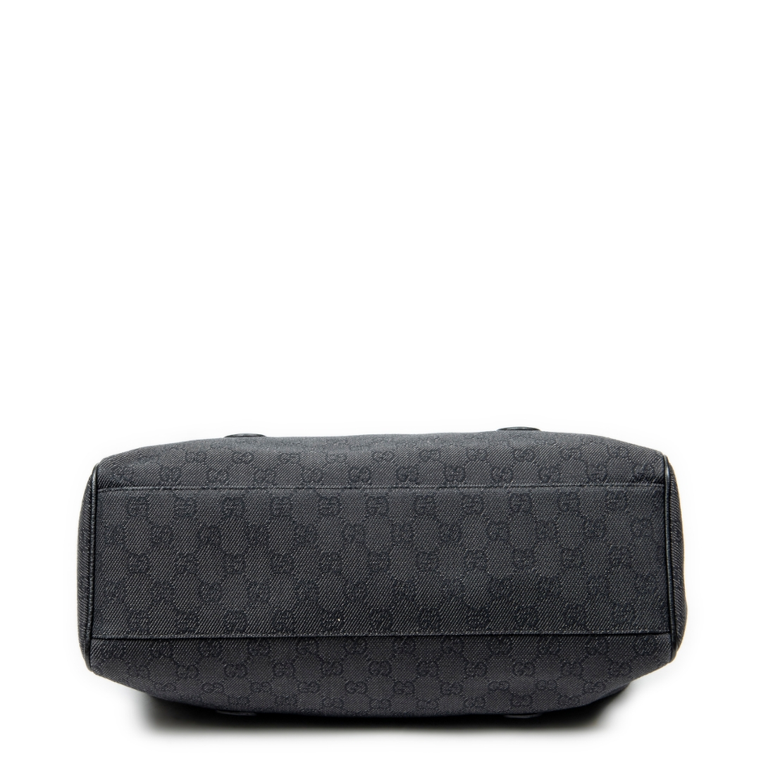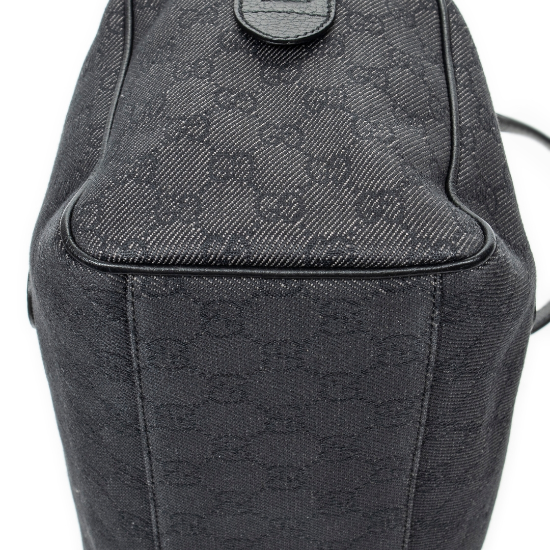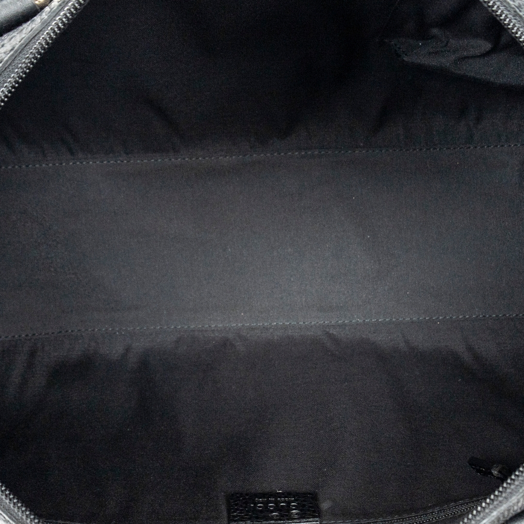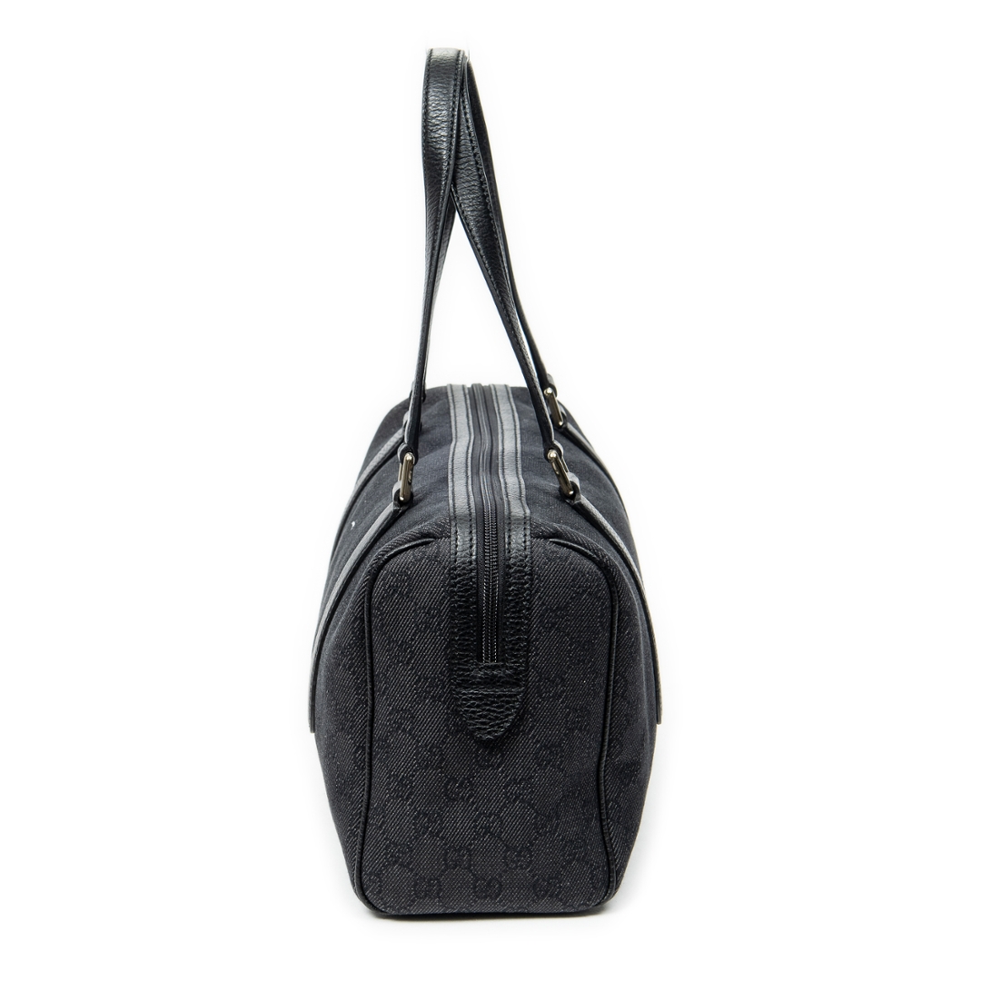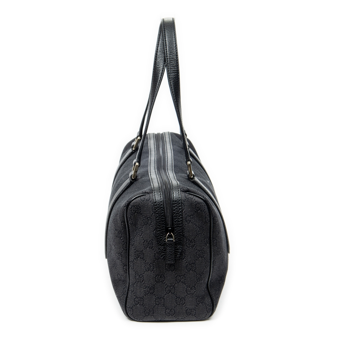 A vintage Gucci black canvas Medium Boston bag with a certificate of authenticity. Approximately 20cm height, 35cm width.