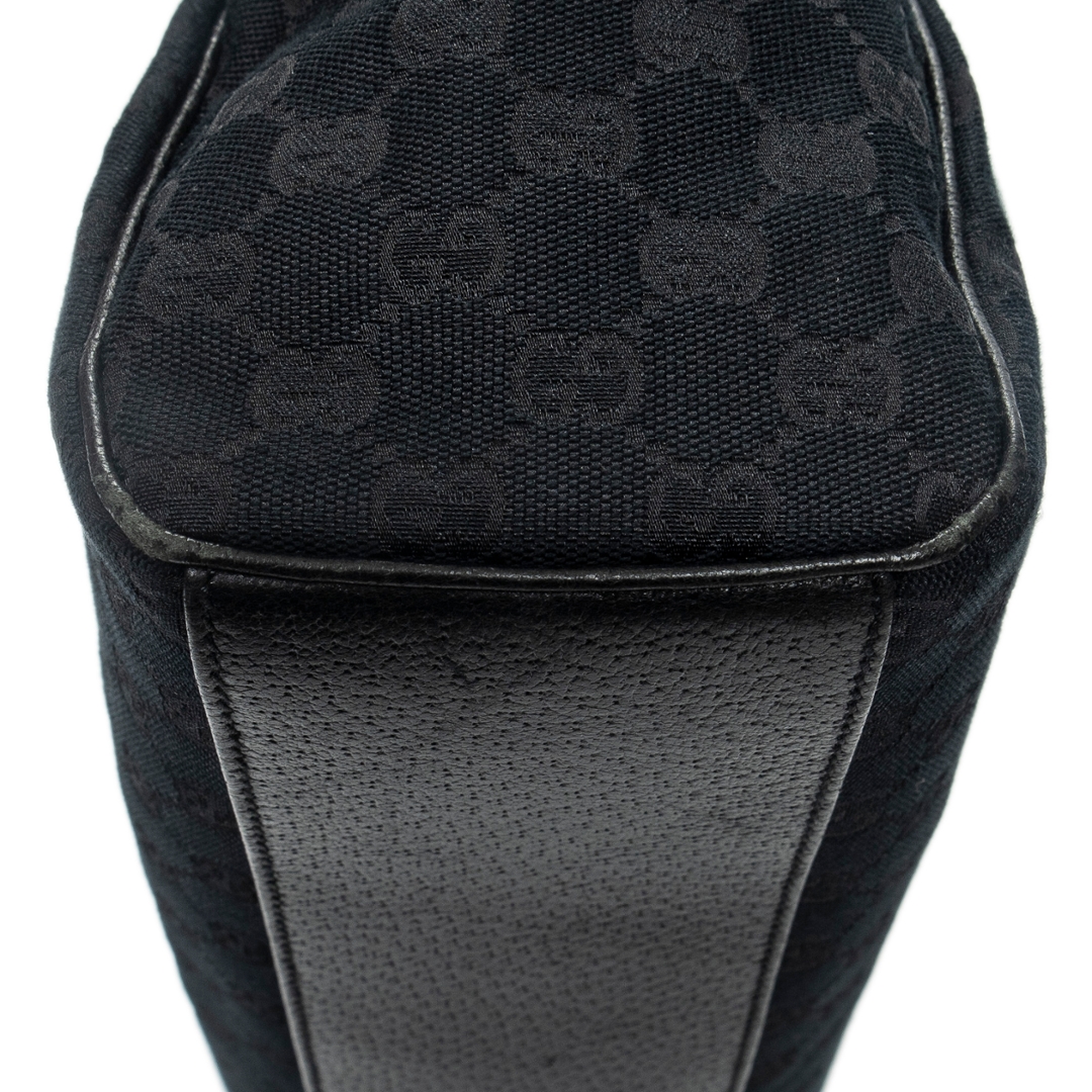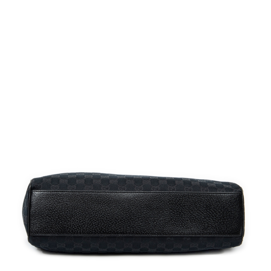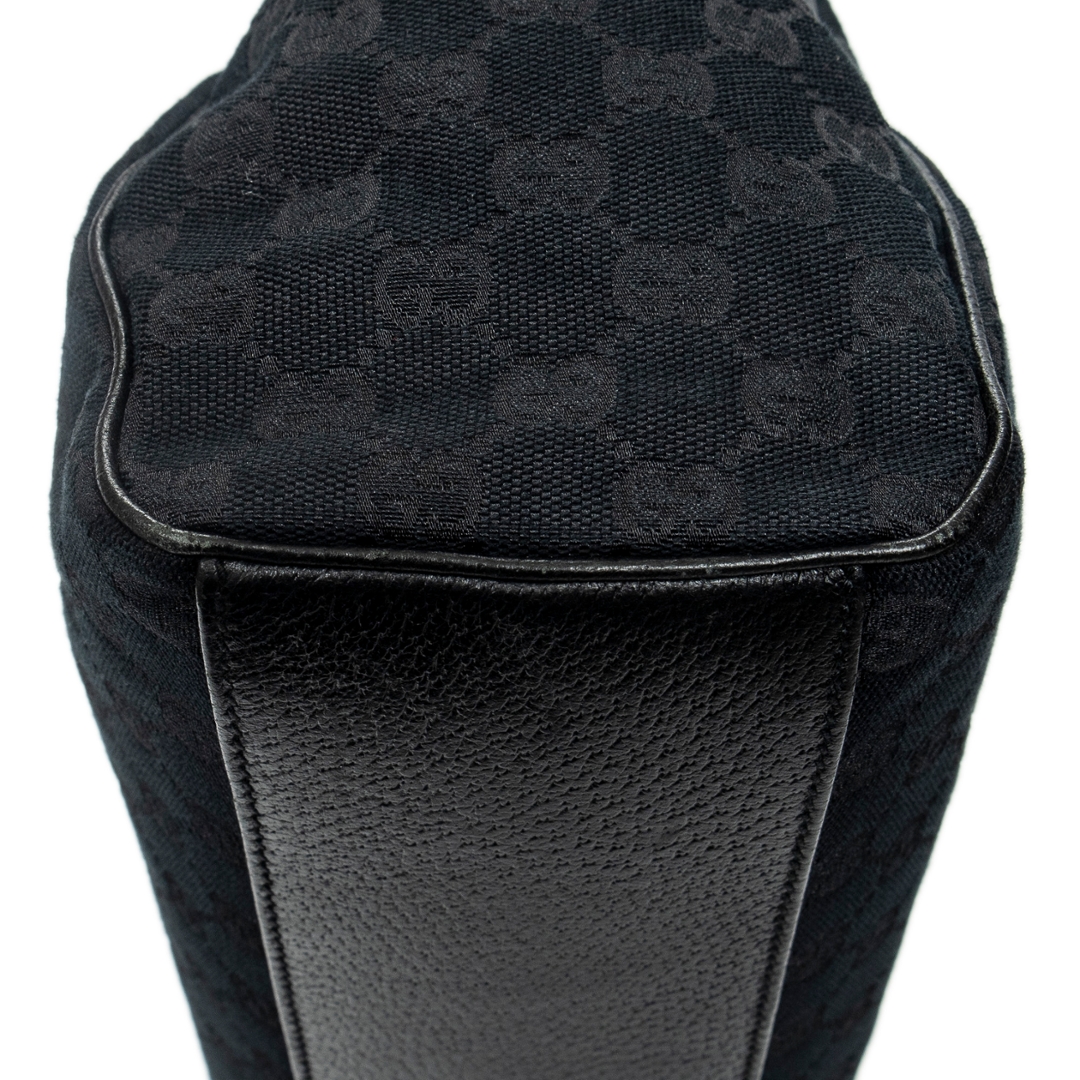 A vintage Gucci black canvas Medium Charmy Shoulder Bag with a certificate of authenticity, Approximately 22cm height, 38cm width.