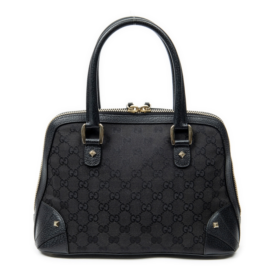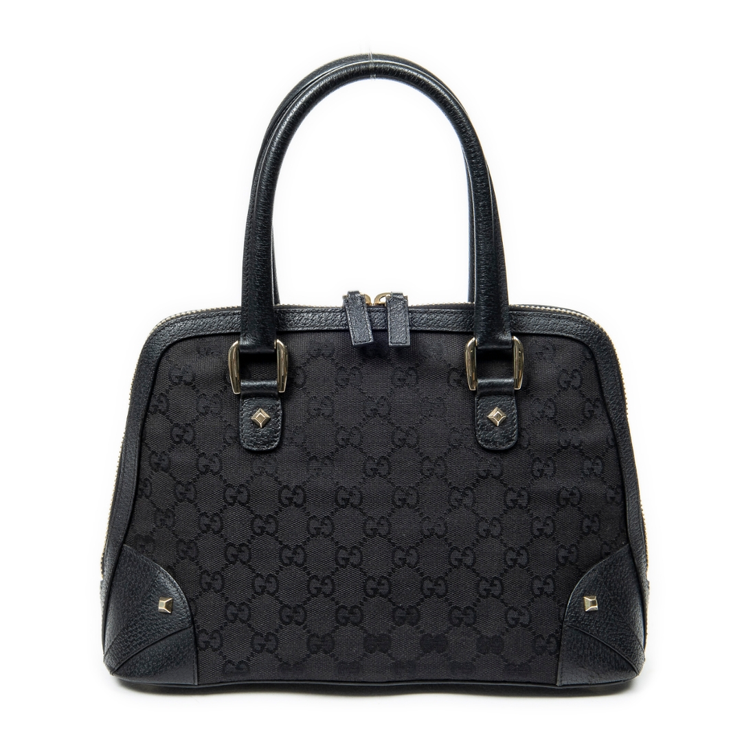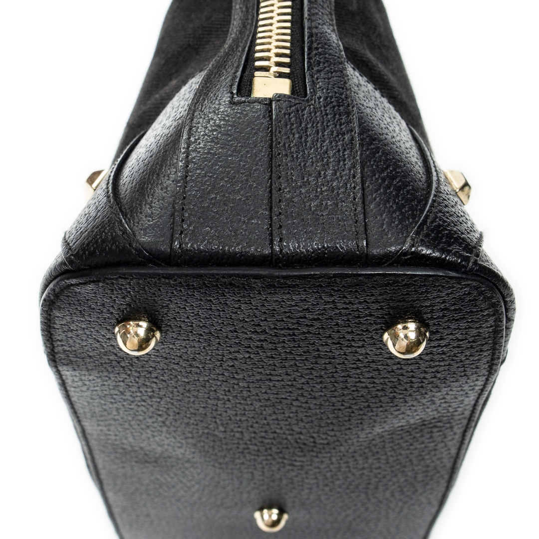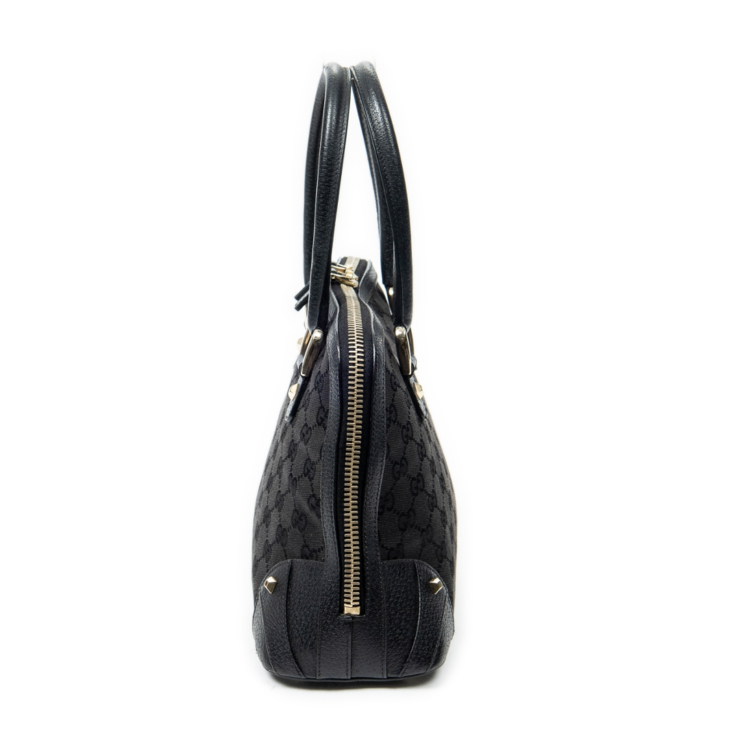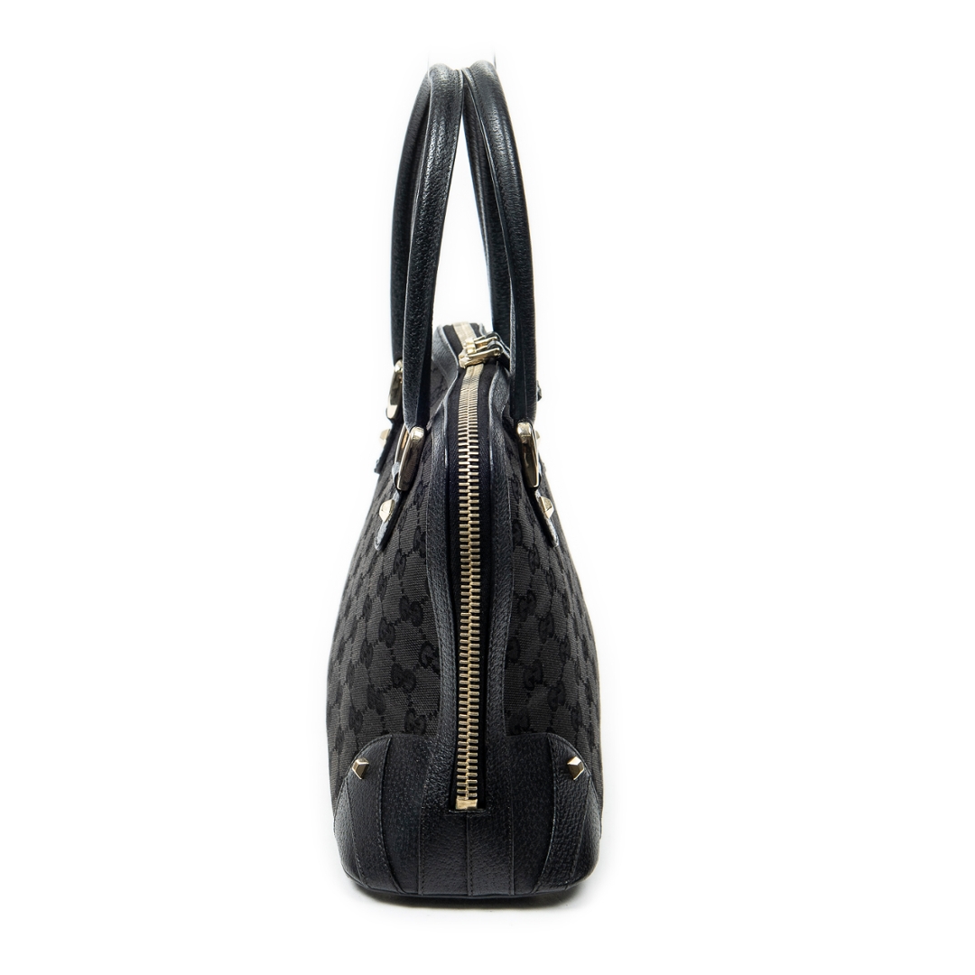 A vintage Gucci black canvas Medium Horsebit Nail Dome Bag with a certificate of authenticity. Approximately 21cm height, 30cm width.