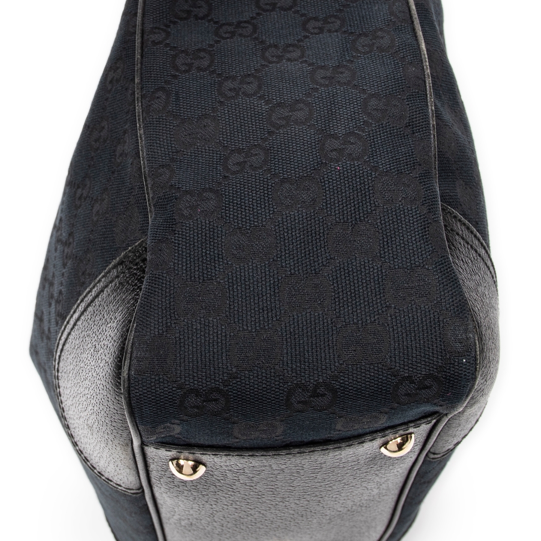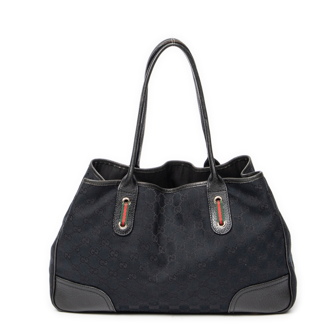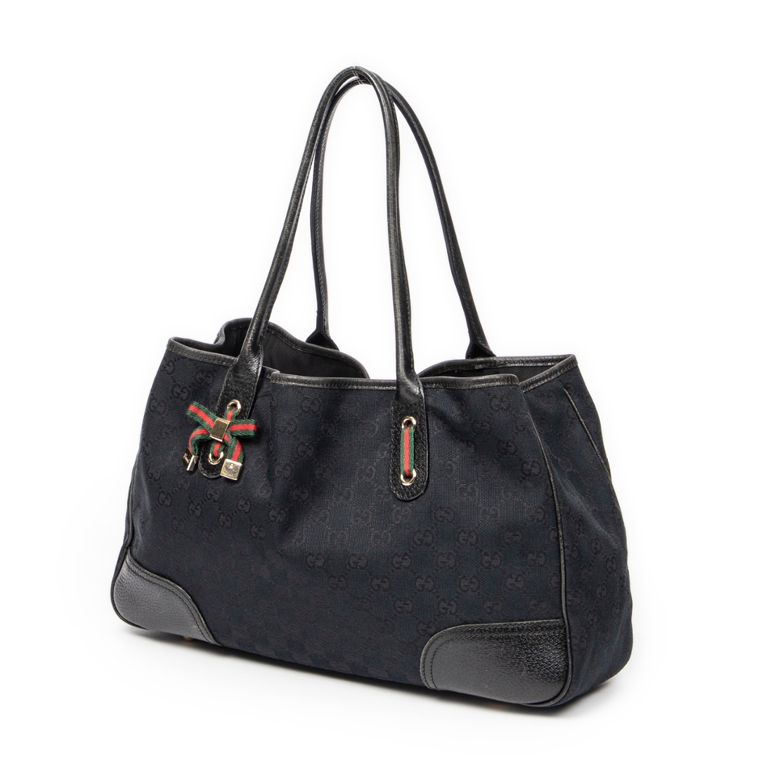 A vintage Gucci black canvas Medium Princy Tote bag with a certificate of authenticity, Approximately 22cm height, 37cm width.
