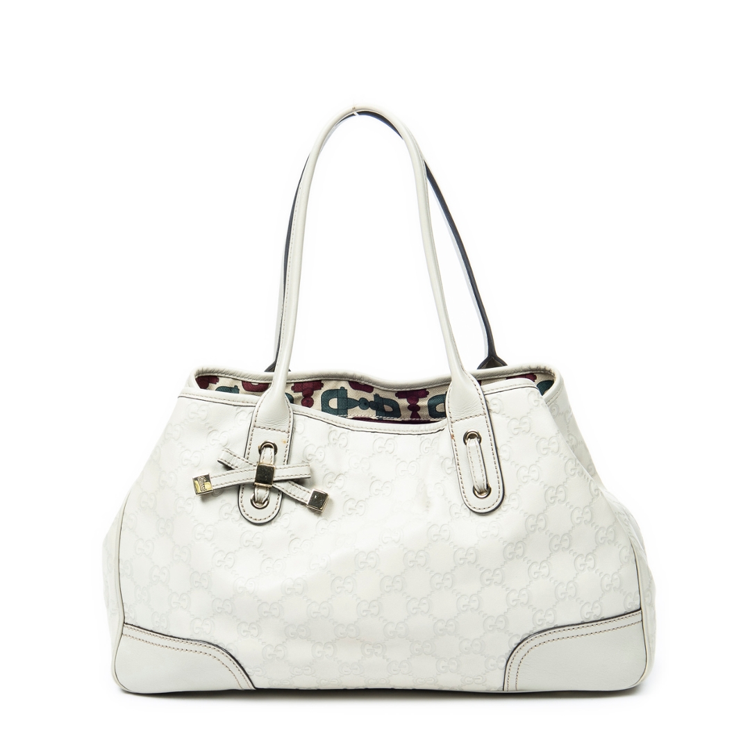 A vintage Gucci ivory calf leather Medium Princy Tote bag with a certificate of authenticity, Approximately 22cm height, 37cm width.