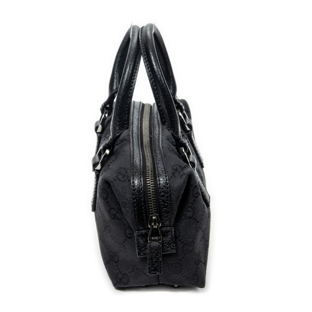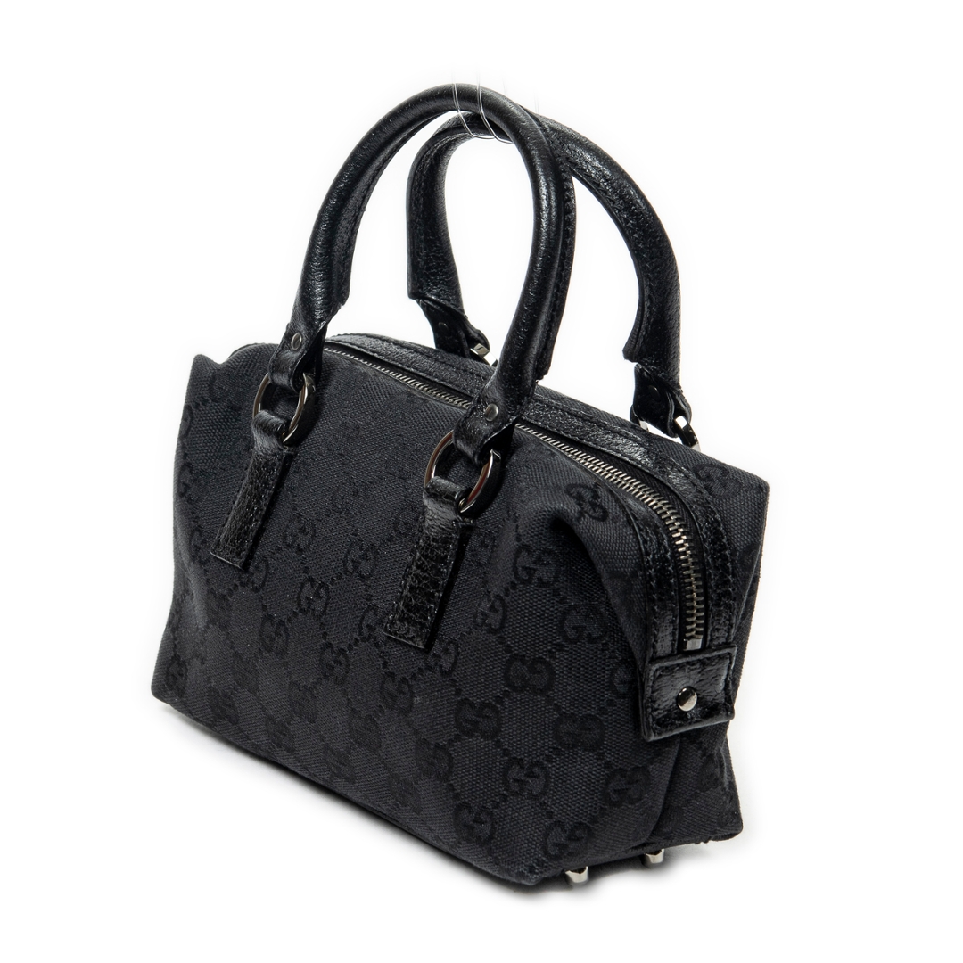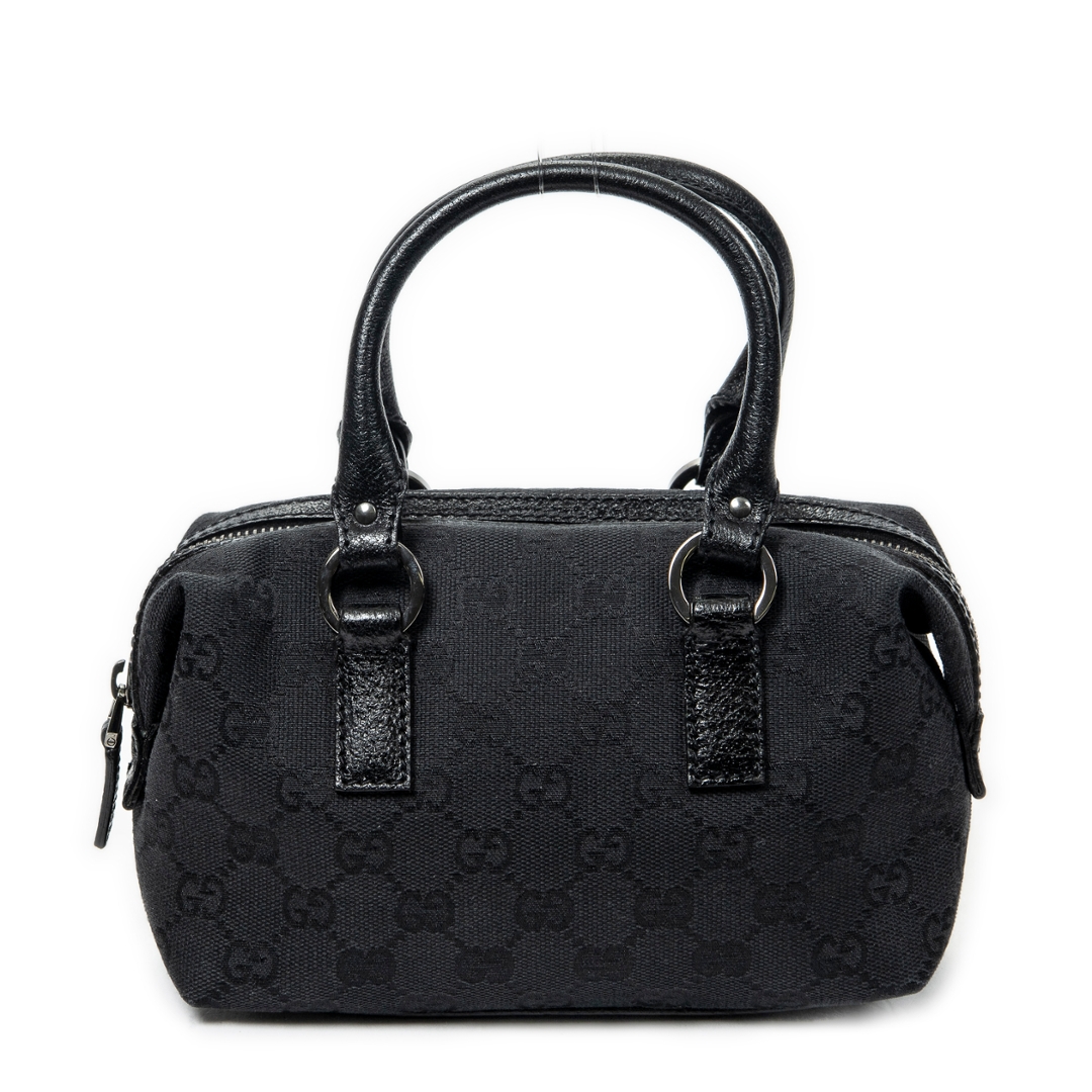 A vintage Gucci black canvas Mini Boston bag with a certificate of authenticity, Approximately 11cm height, 19cm width.