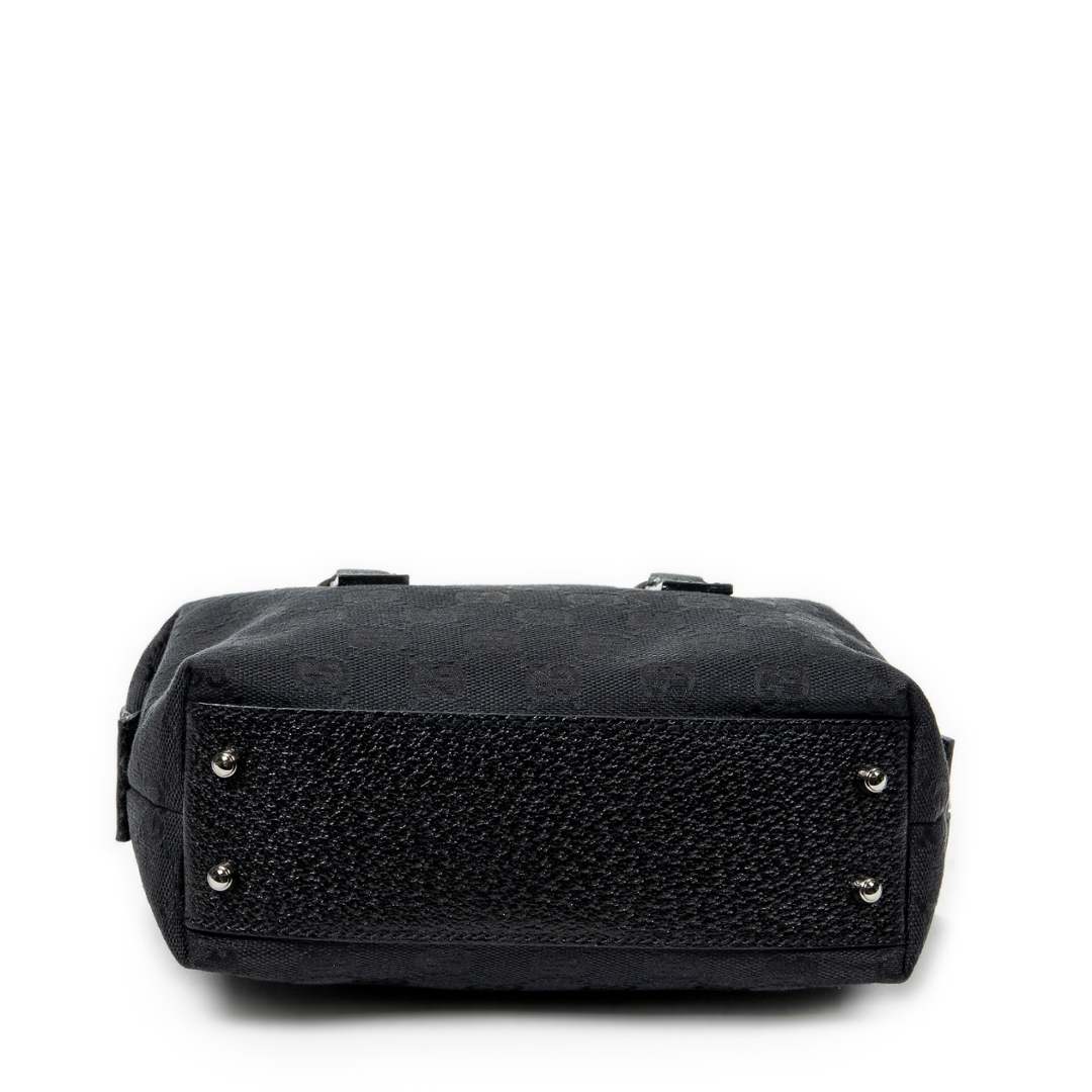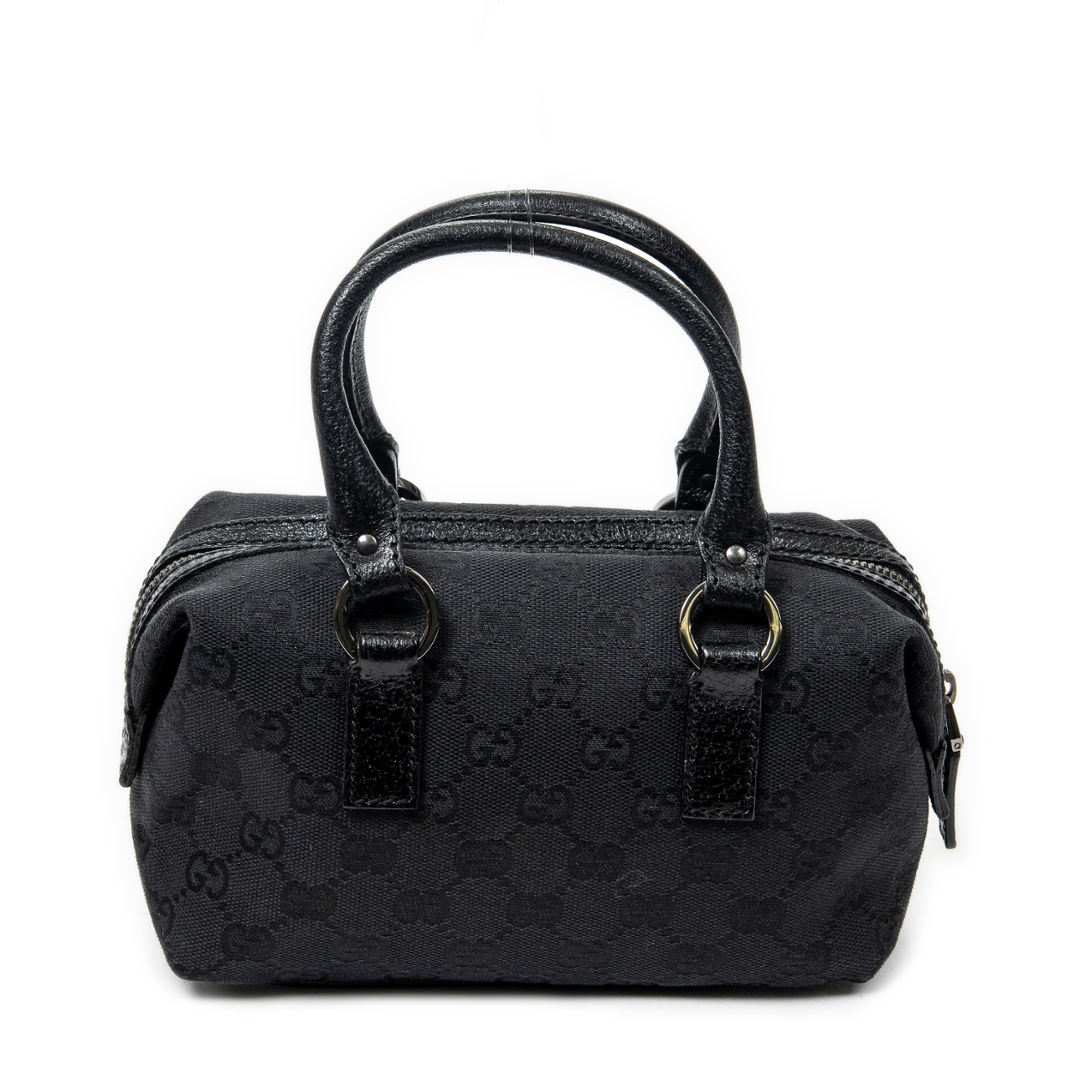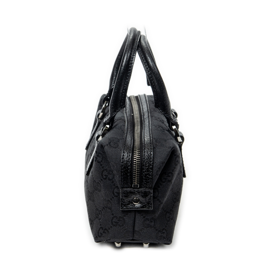 A vintage Gucci black canvas Mini Boston bag with a certificate of authenticity, Approximately 11cm height, 19cm width.