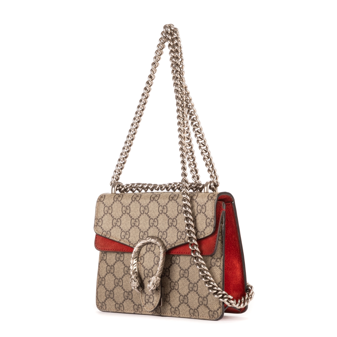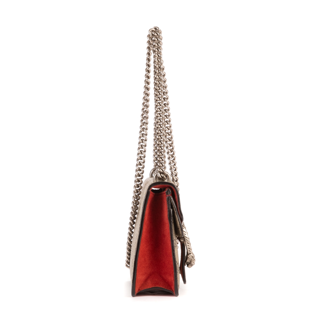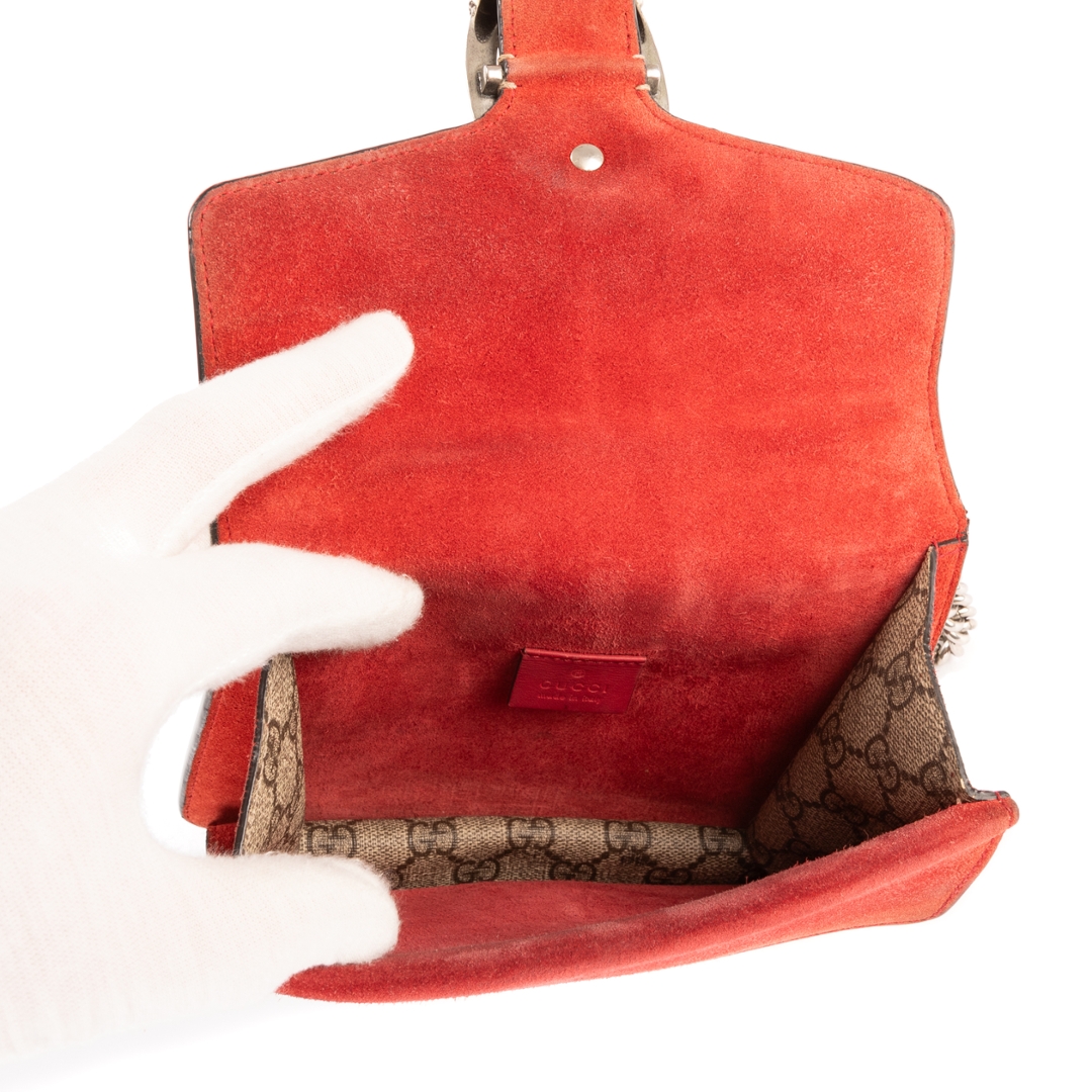 A vintage Gucci beige/red coated canvas Mini Dionysus bag with a certificate of authenticity, Approximately 17cm height, 20cm width.