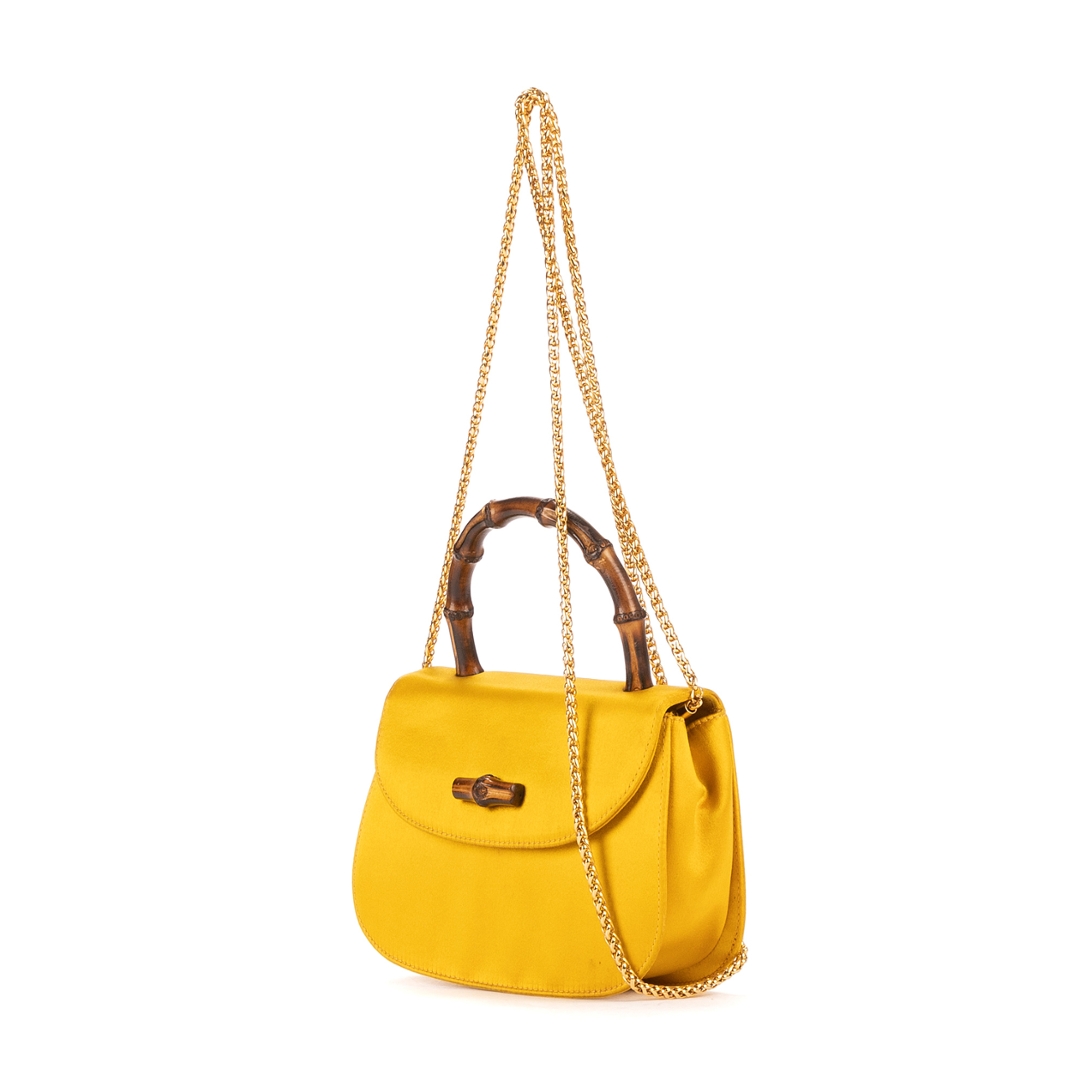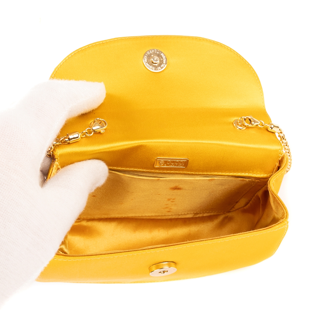 A vintage Gucci yellow canvas Night Evening bag with a certificate of authenticity, Approximately 12cm height, 17cm width.