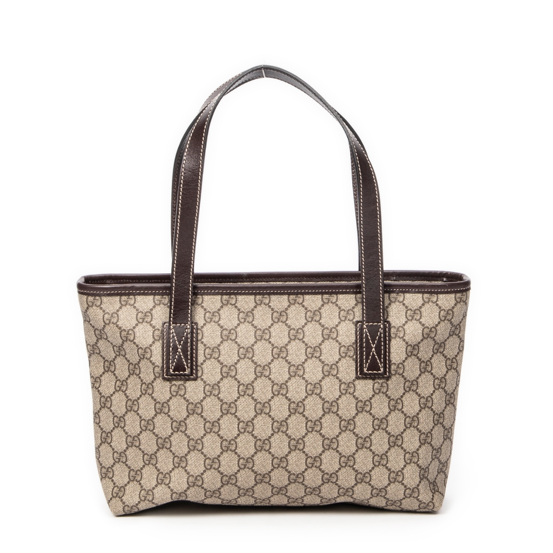 A vintage Gucci beige/dark brown coated canvas Small Joy Tote bag with a certificate of authenticity, Approximately 21cm height, 29cm width.