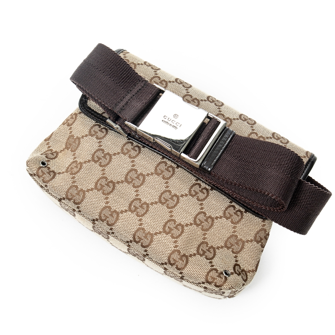 A vintage Gucci brown/beige canvas Small Waist Pouch bag with a certificate of authenticity, Approximately 14cm height, 17cm width.
