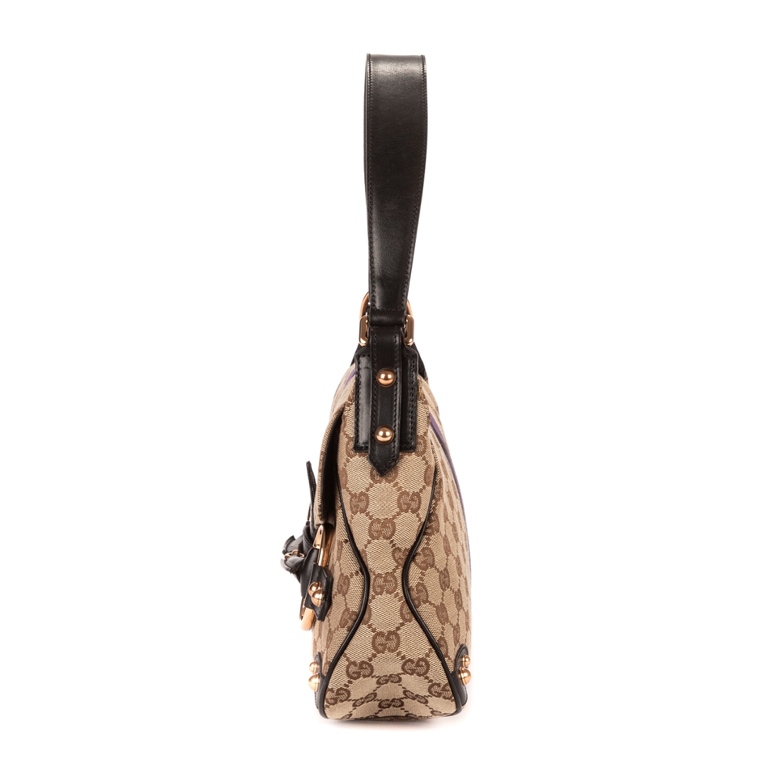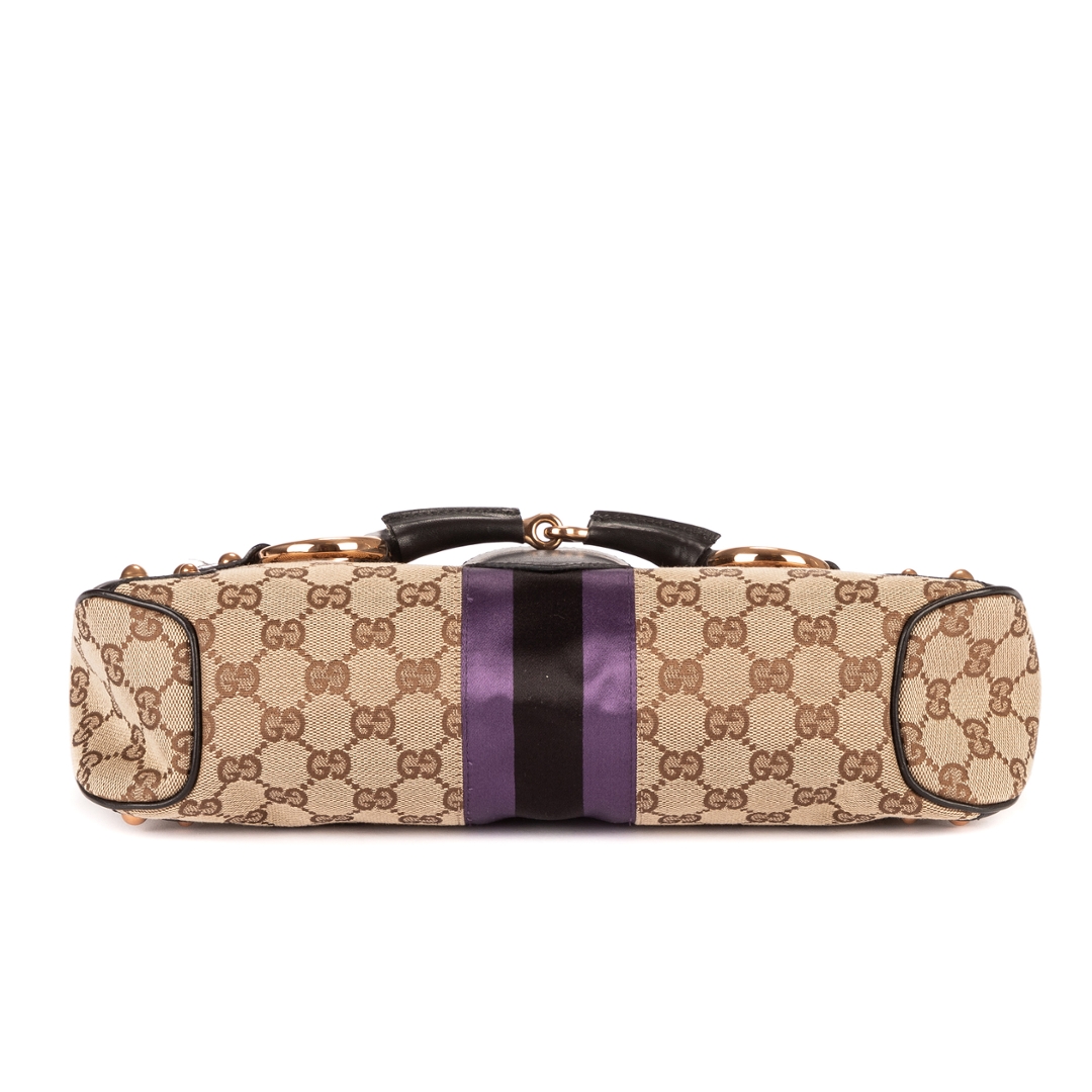 A vintage Gucci beige canvas Vintage Horsebit bag with a certificate of authenticity, Approximately 21cm height, 32cm width.