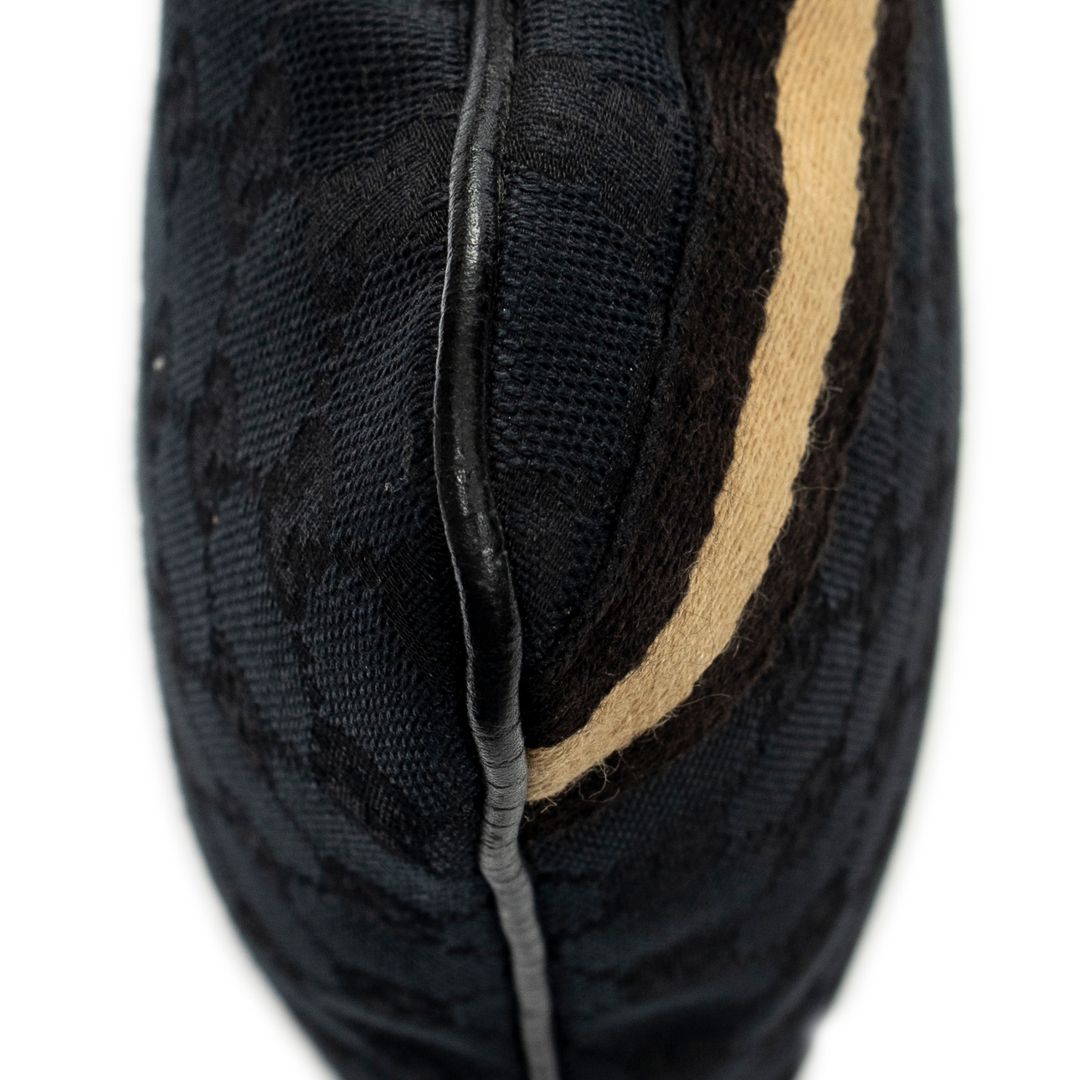 A vintage Gucci black canvas Web Jolicoeur Crossbody bag with a certificate of authenticity, Approximately 24cm height, 26cm width.