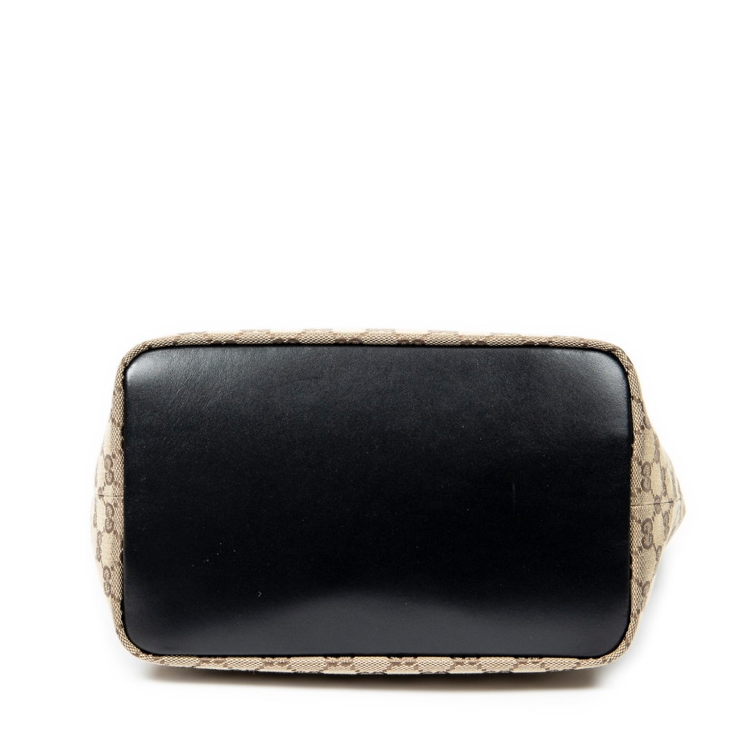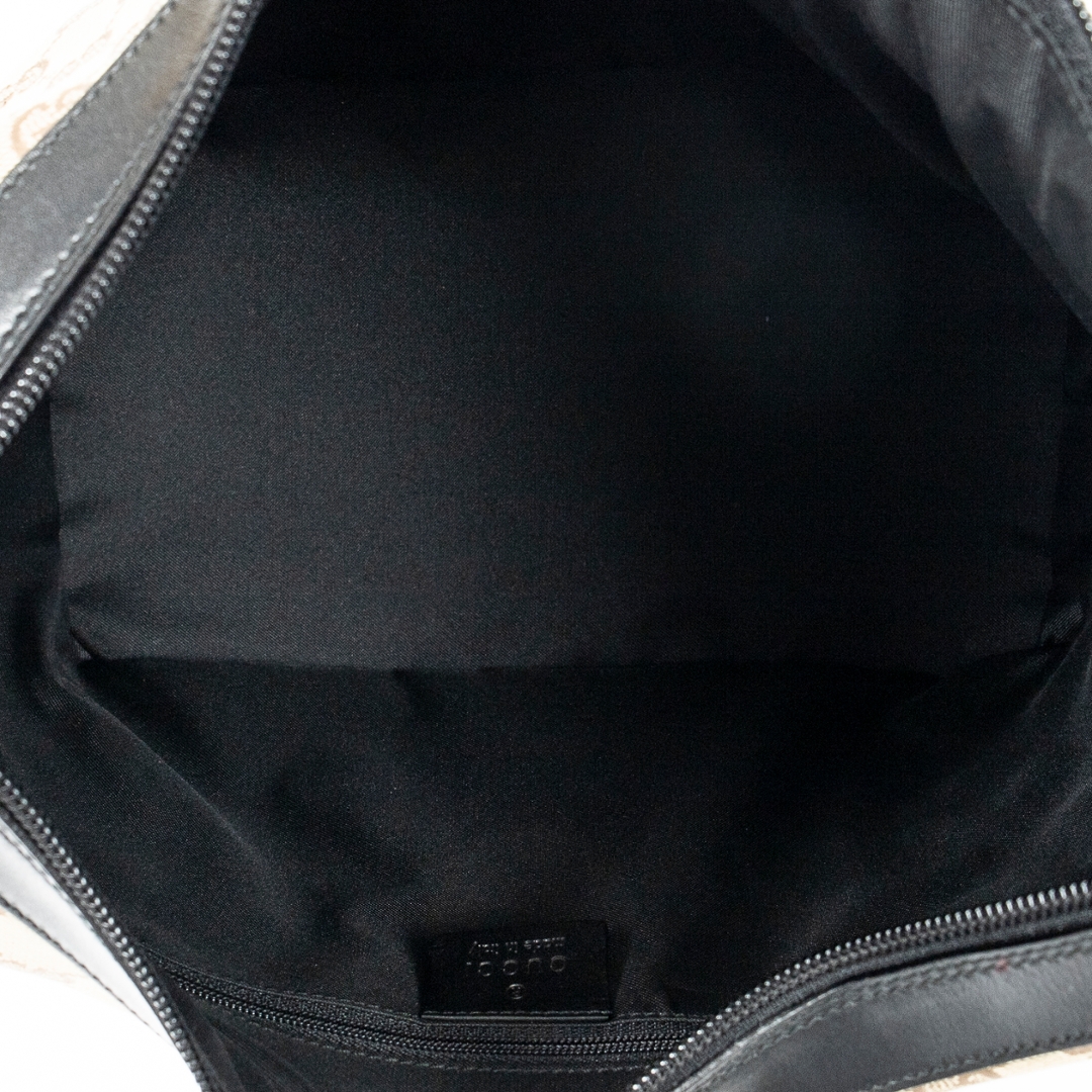 A vintage Gucci beige/black canvas Zip Bamboo Hobo bag with a certificate of authenticity, Approximately 25cm height, 24cm width.