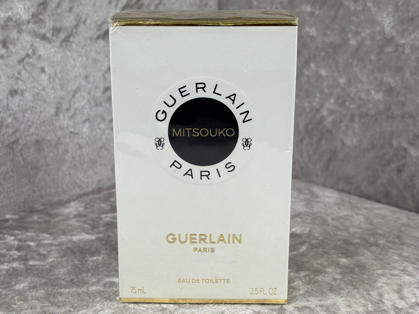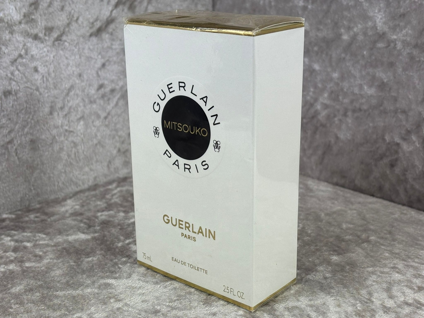 A 75ml bottle of Guerlain Mitsouko Eau De Toilette, a timeless and sophisticated fragrance that stands as one of the house’s most iconic creations. It opens with a refined blend of citrus and soft peach, delivering a fresh yet subtly fruity introduction that immediately conveys depth and classic elegance.