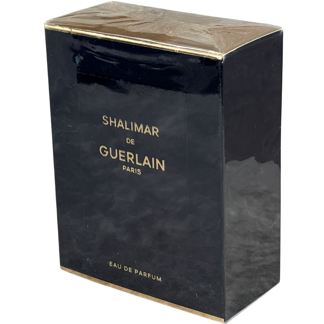 A 50ml bottle of Guerlain Shalimar Eau De Parfum, one of the most iconic fragrances in perfumery, renowned for its rich oriental character and timeless appeal. It opens with a bright burst of bergamot, delivering a fresh and slightly citrus-led introduction that quickly gives way to a deeper, more opulent profile.