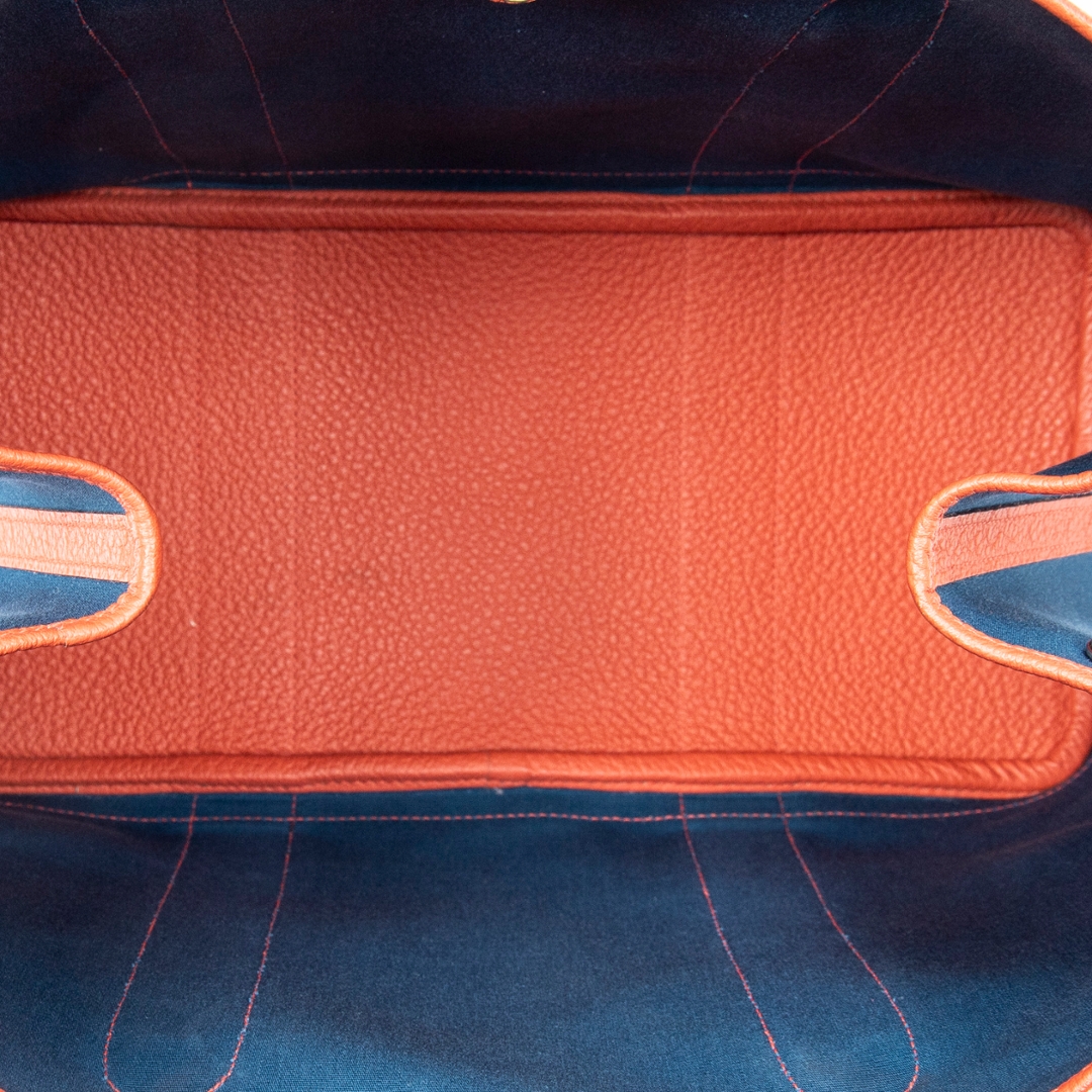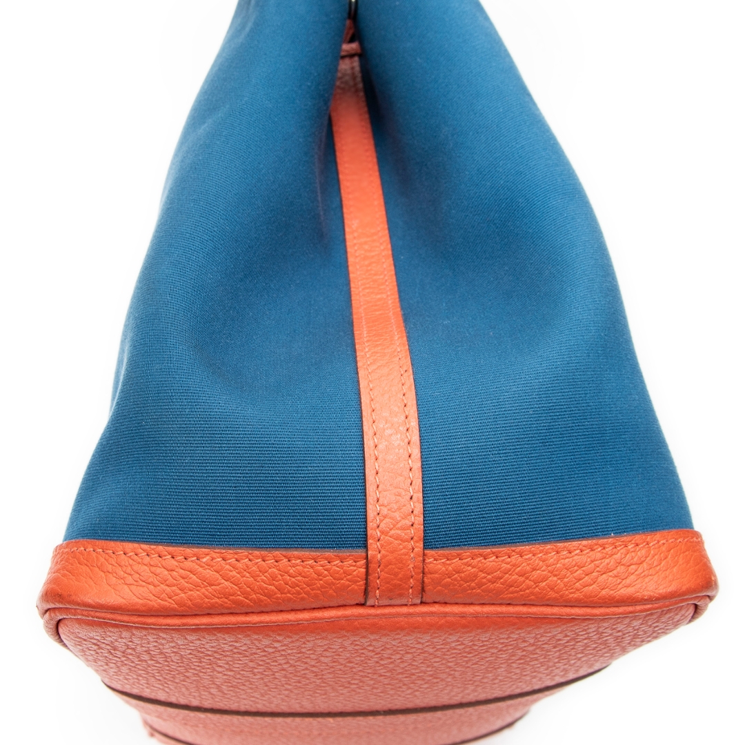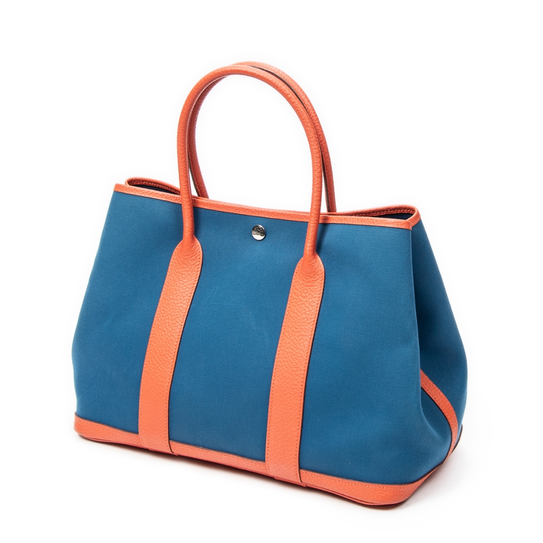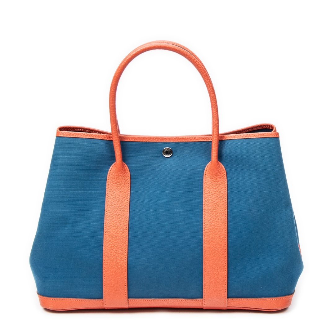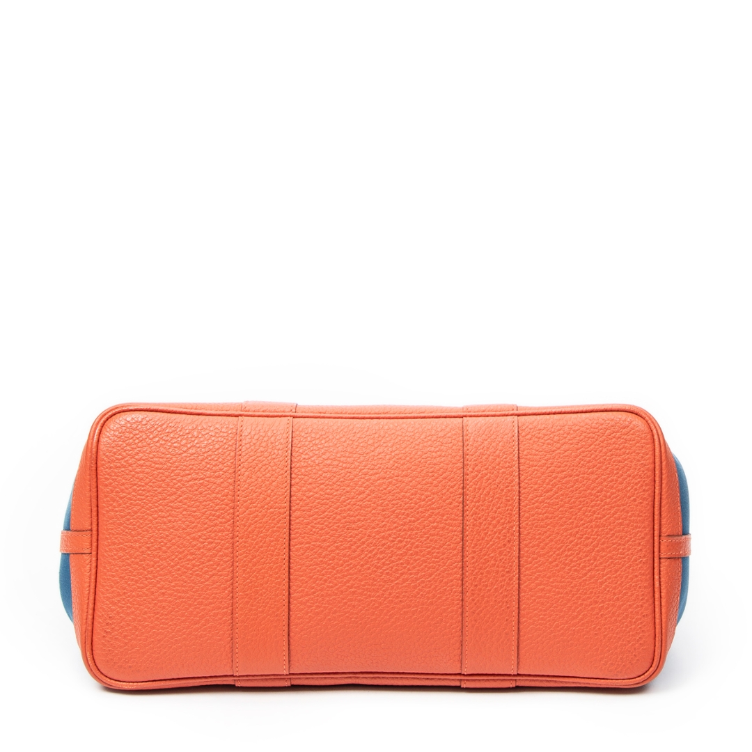 A vintage Hermes Bleu Outremer/Capucine Canvas Garden Party bag with a certificate of authenticity, Approx 25cm height, 36cm width.