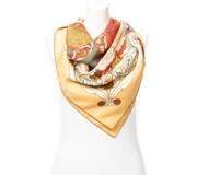 Measuring approximately 90cm by 90cm, this scarf offers versatility in styling. It can be worn draped elegantly around the neck, tied over the shoulders, or attached to a handbag as a chic accent. The fine silk construction enhances the vibrancy of the colours, providing a lightweight and smooth finish that ensures both comfort and luxury.