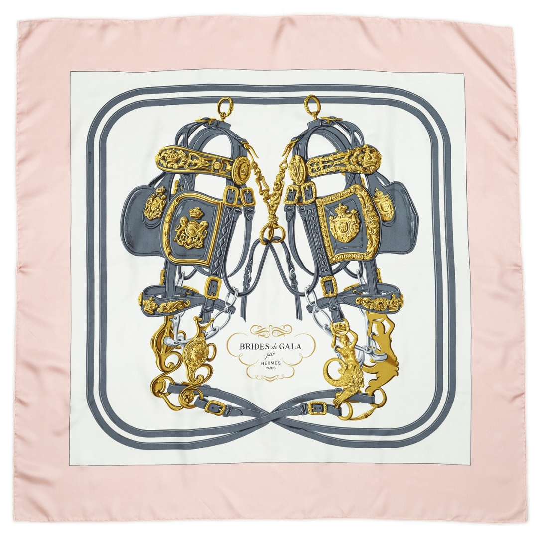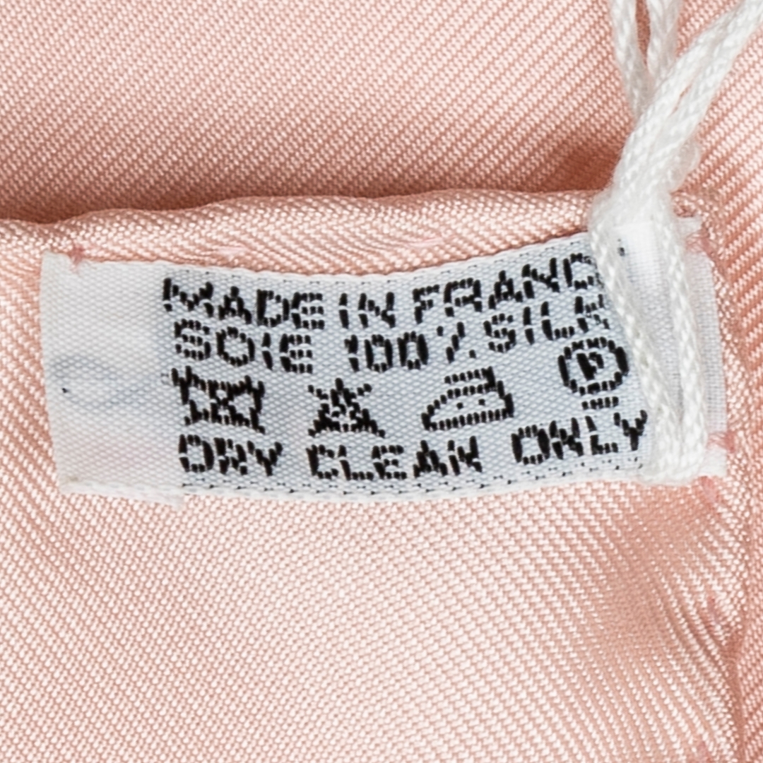 A vintage Hermès pink and ivory silk scarf — a delicate expression of timeless sophistication and luxurious craftsmanship. Crafted from Hermès’ signature pure silk, this exquisite accessory showcases the brand’s renowned artistry and elegant colour harmony, blending soft pastel tones with refined detailing.